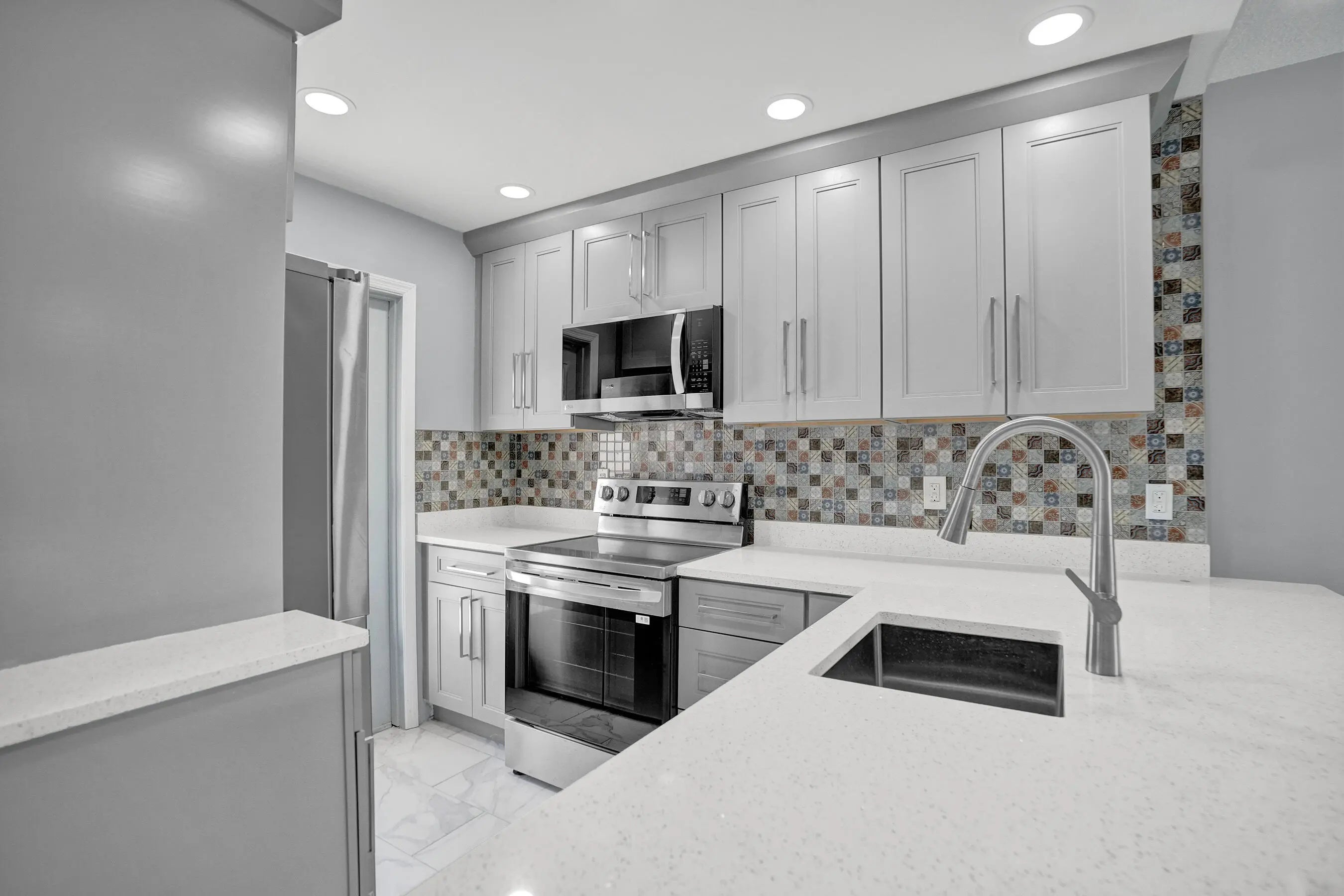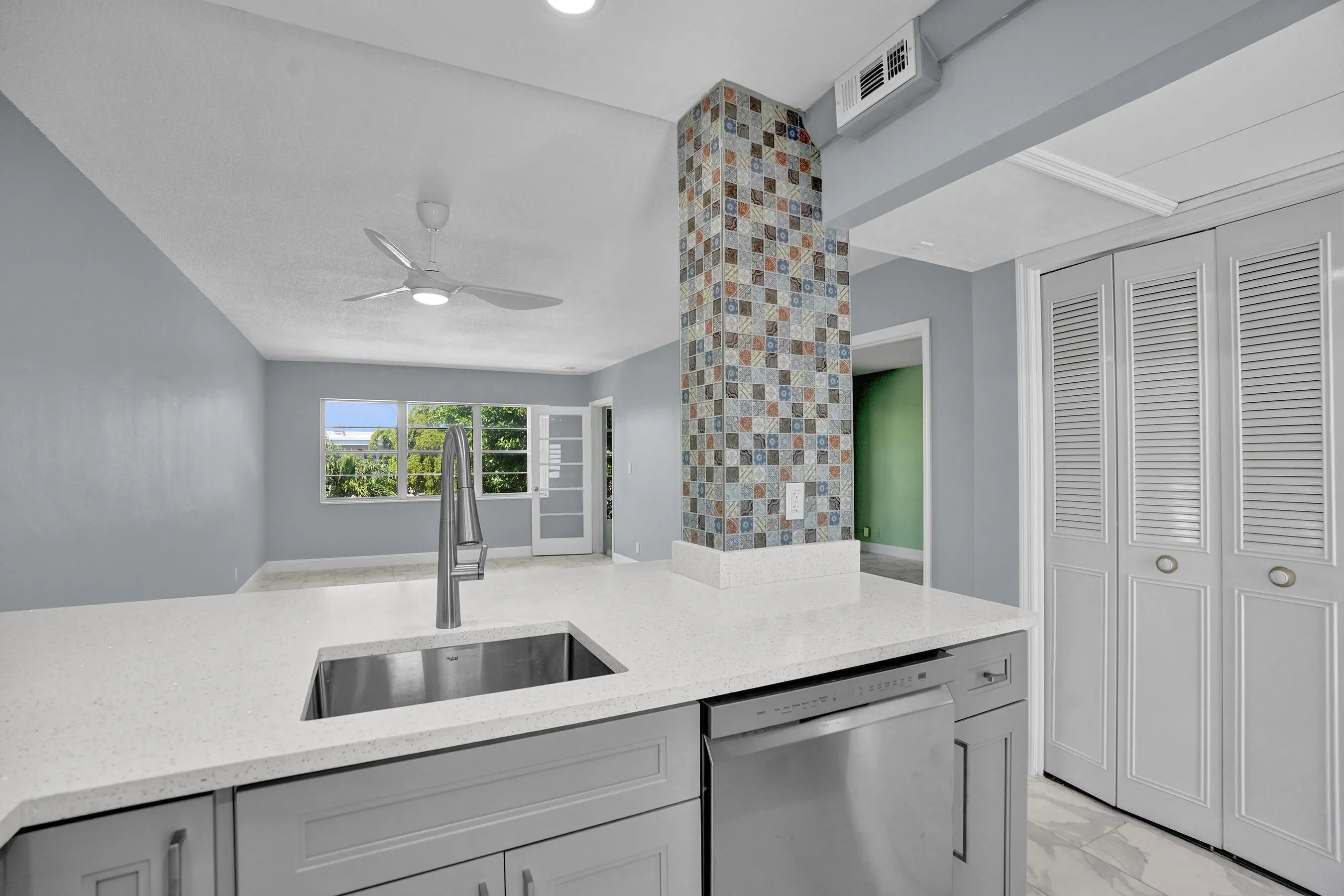 This beach condo has been Fully Renovated with permits, ready for you to move in! Deeded beach access across the street + Boat dockage available up to 30 ft $110/M. 1 bed, 1.5 bathroom. Open space with tile floor throughout. New kitchen cabinets, quartz counters and new GE appliances. New electrical panel. New plumbing. New water heater. AC 5 years old. Partial impact doors. Enjoy the ultimate beach style lifestyle with great amenities: heated pool, tropical grounds, BBQs, putting green, shuffle board + additional storage unit, parking and elevator access. Beautifully landscaped, tropical grounds. Great location walk 1 mile to Publix plaza, or 1.5 mile to either downtown LBTS or Pompano Beach Pier. Esa pet friendly. LOW HOA includes fully funding reserves. Bldg is in great shape!