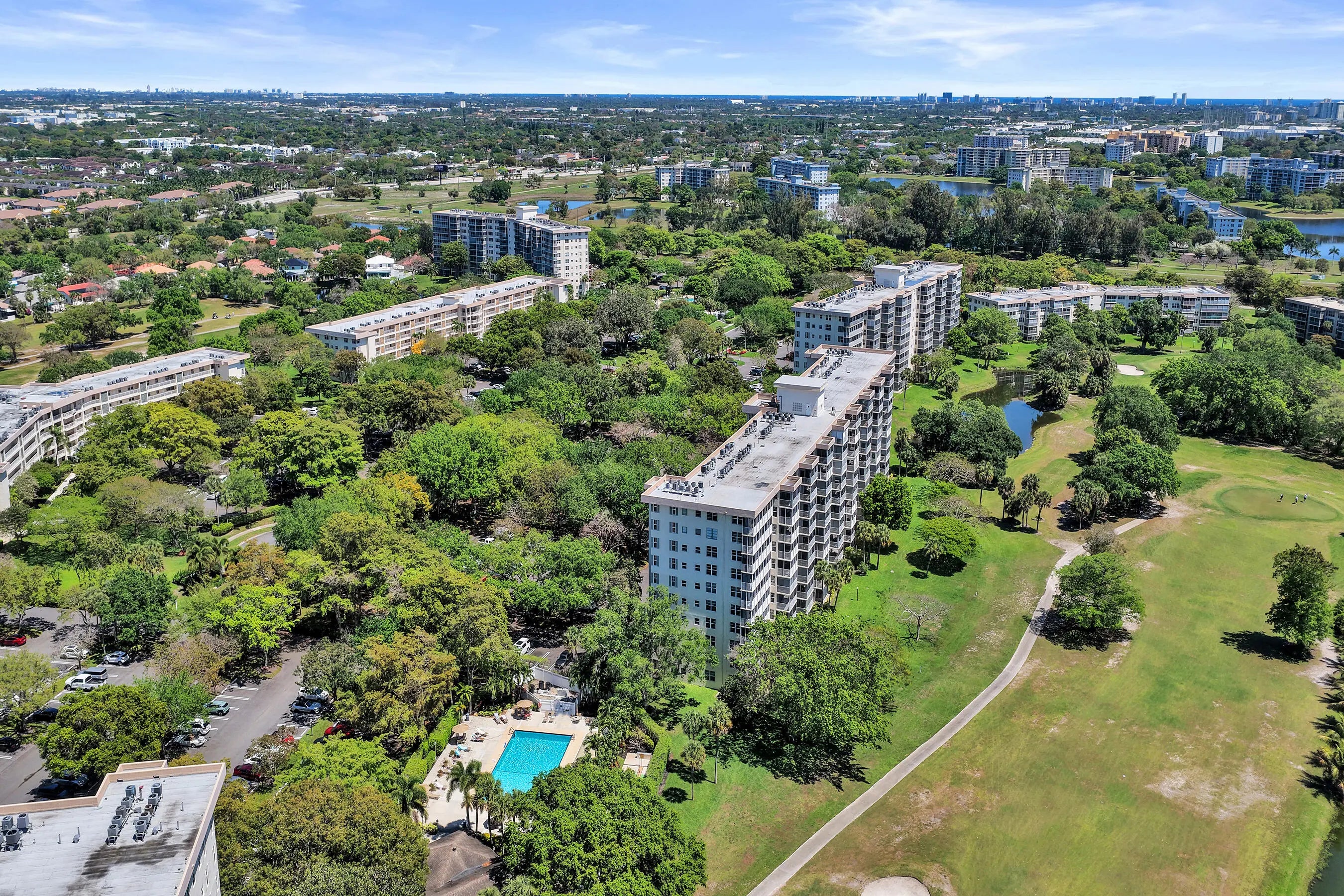 A stunning PENTHOUSE corner unit awaits! Exceptionally located within the resort-style community of Palm-Aire Country Club, this desirable 3BD|2BA condo presents the UPDATES, AMENITIES, & immaculate 10th FLOOR VIEWS you've been searching for. Key features include an open kitchen complemented by granite countertops & SS appliances, in-unit laundry, new A/C, impact windows & slider, wraparound balcony overlooking golf course & lake, spacious master bedroom w/ walk-in closet, ideal parking space close to elevator, designated storage, & more. Amenities include pool, BBQ, fitness, clubhouse w/ kitchen facilities, & more. Enjoy the SAVINGS of having your rent include INTERNET, CABLE, WATER, & TRASH! Close to the Pomp Casino, shops, & restaurants. NO pets allowed / 700+ credit required