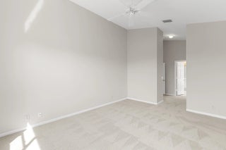 Beautiful home with an even better view! Enjoy a clean and updated interior with high ceilings, water views, fully replaced tile roof 4.5 years old for long enjoyment. The large master suite offers multiple closets and a huge bathroom. Step outside to a covered, screened-in paver patio with a nice lake breeze designed for relaxing. Accordion shutters on all windows offer built-in protection. Palladium is a desirable gated community that welcomes all ages, residents enjoy included landscaping, cable and internet, along with great amenities like a resort style heated/chilled pool and spa, Har-Tru tennis and pickleball courts, billiards, a clubhouse reservable for events, fitness center, and social calendar. Centrally located, there's great value and a great neighborhood here. Beautiful home with an even better view!