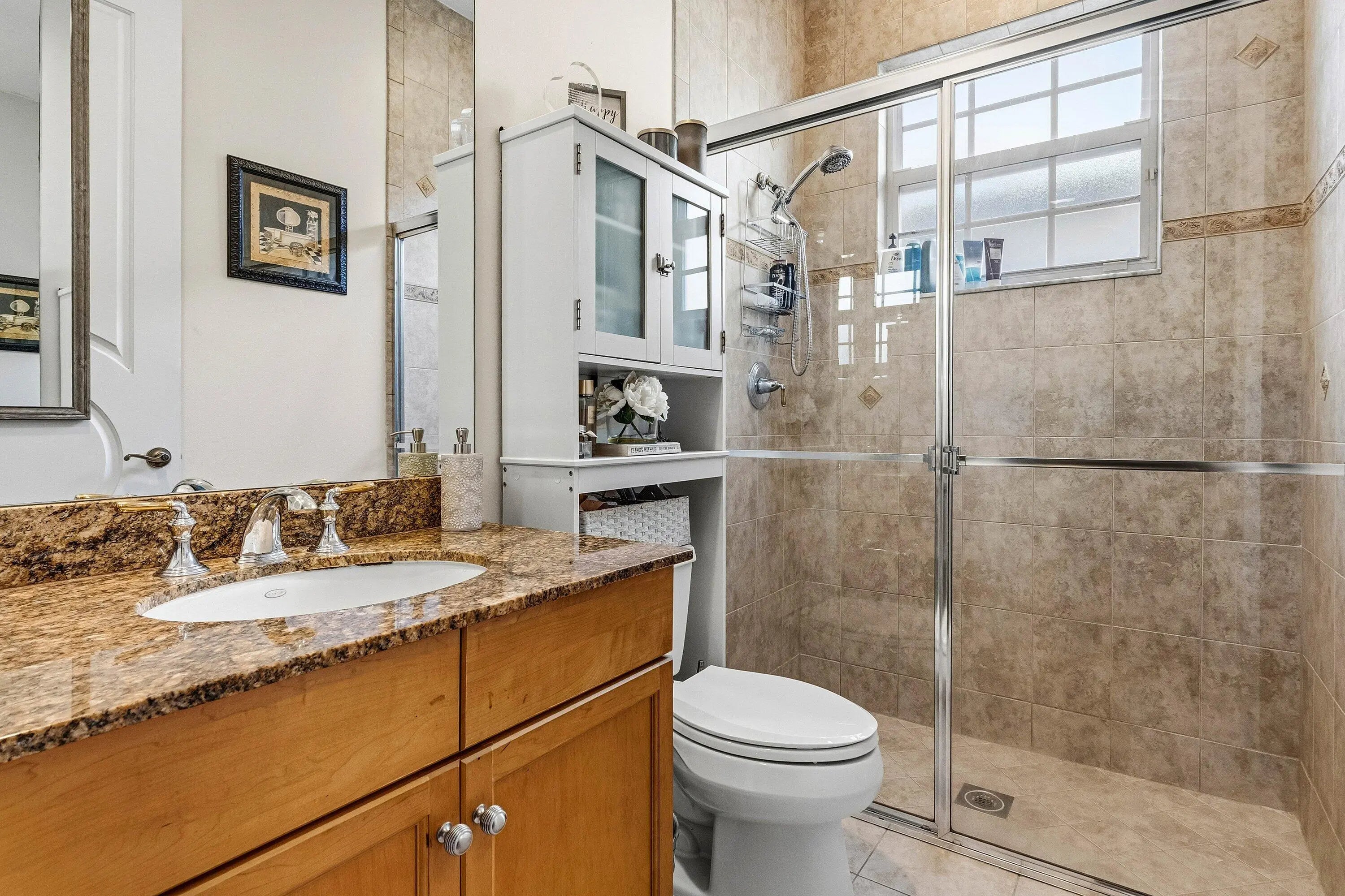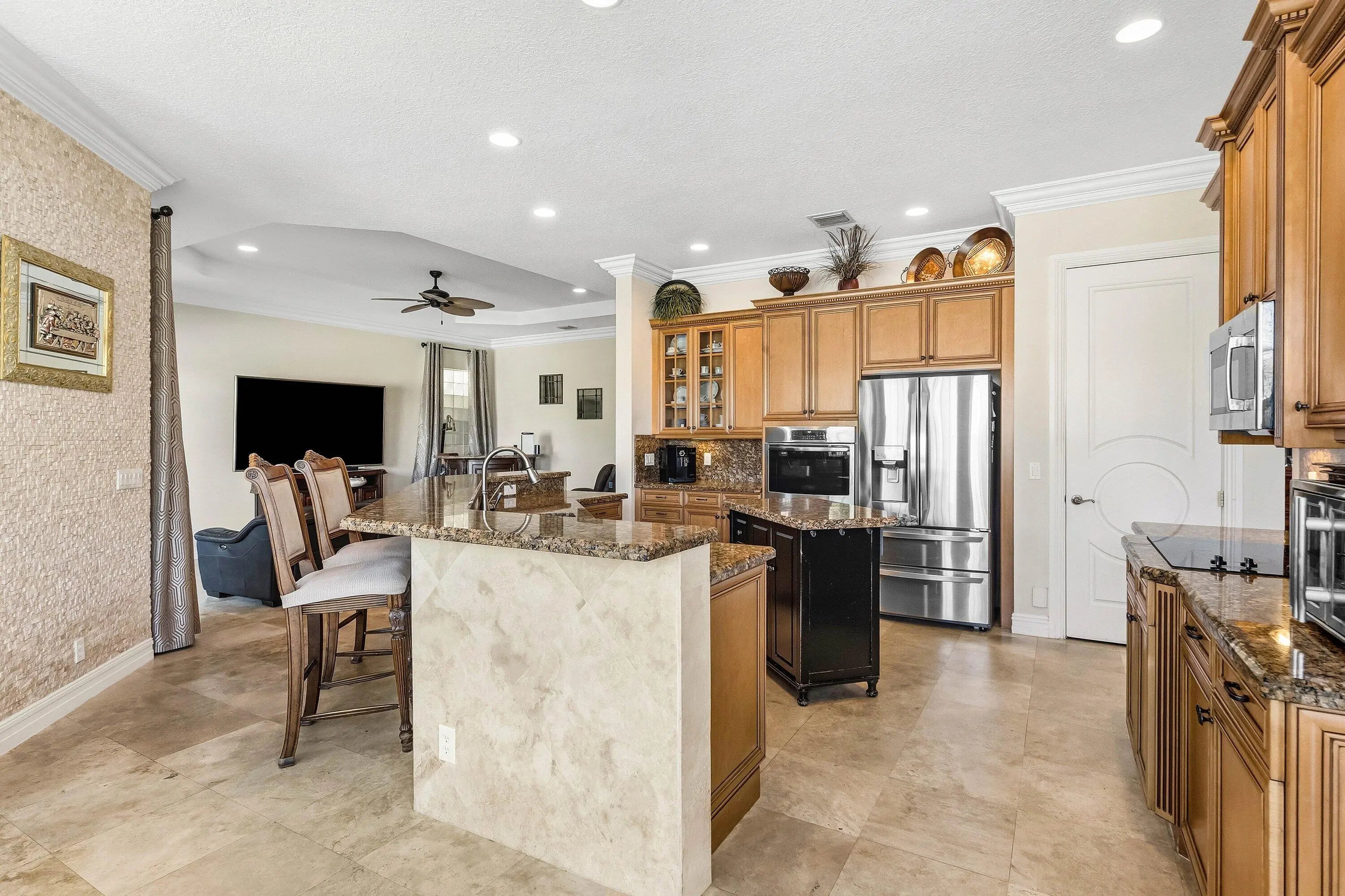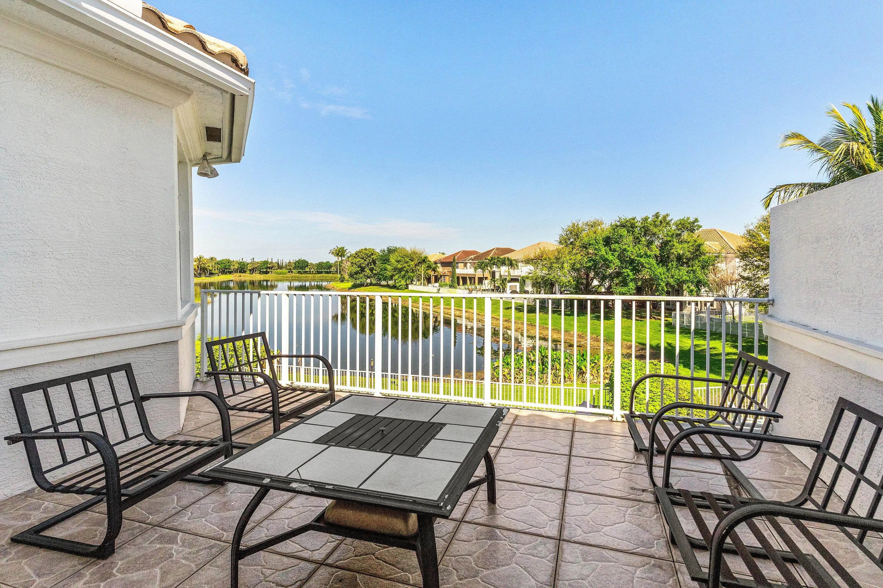 Former builder's model on a prime lakefront lot in sought-after Cobblestone Creek. This spacious 5-bedroom residence offers nearly 4,000 sq ft of living space, with a private pool, expansive living areas, and beautiful water views. Interior highlights include a gourmet kitchen with newer stainless appliances, marble flooring throughout the first floor, hardwood floors throughout the second floor, hurricane-impact glass throughout, and a private balcony off the primary bedroom. Additional features include a 2-car garage and a 3-car driveway with ample parking. Located in a gated community with resort-style amenities including a clubhouse, fitness center, pool, spa, billiards lounge, children's aqua park, and beautifully maintained grounds, all in a desirable Boynton Beach location. Cobblestone Creek is beautifully set across 100 lushly landscaped acres in Boynton Beach, offering a scenic and welcoming atmosphere from the moment you arrive. A grand entrance with cascading waterfalls, colorful flowers, tropical greenery, and mature trees creates a striking first impression and sets the tone for this exceptional gated community. Adding to its appeal, the neighborhood features nearly 20 acres of lakes and natural wetland preserves, giving Cobblestone Creek a tranquil, picturesque setting that feels both private and beautifully connected to nature. With just 250 single-family homes, many of which back to shimmering lakes or lushly landscaped berms, the community offers an intimate and peaceful residential environment. Residents enjoy a resort-style lifestyle with an impressive clubhouse complex that includes a fully equipped fitness center, billiards lounge, and club room. Outside, large covered verandas surround the recently remodeled saltwater pool and heated spa, while rushing water features, a children's aqua park, shade cabanas, and a scenic lake with fountain and preserve views create a true retreat-like atmosphere. Ideally located just off Boynton Beach Boulevard and Lyons Road, Cobblestone Creek offers convenience along with beauty. Residents benefit from a 24-hour manned gatehouse, A-rated schools, and close proximity to shopping, dining, Canyon Town Center, Cobblestone Commons, Bethesda West Hospital, Florida's Turnpike, and US-441. HOA dues are also reasonable and include expanded cable and high-speed internet, making Cobblestone Creek an exceptional place to call home.