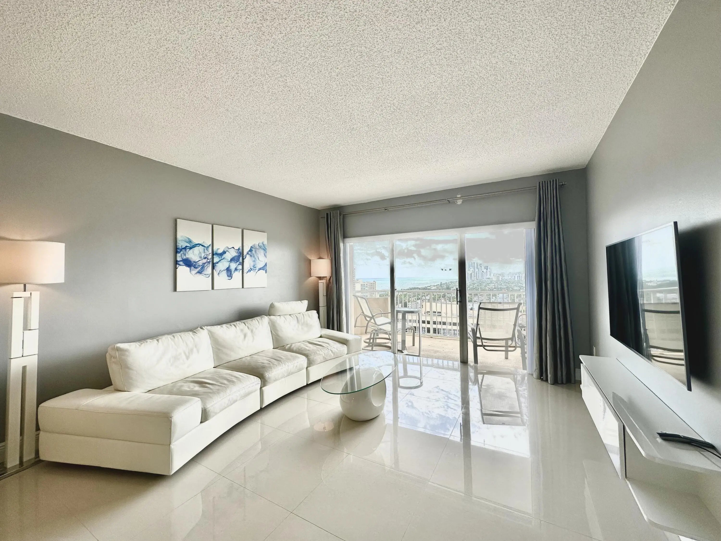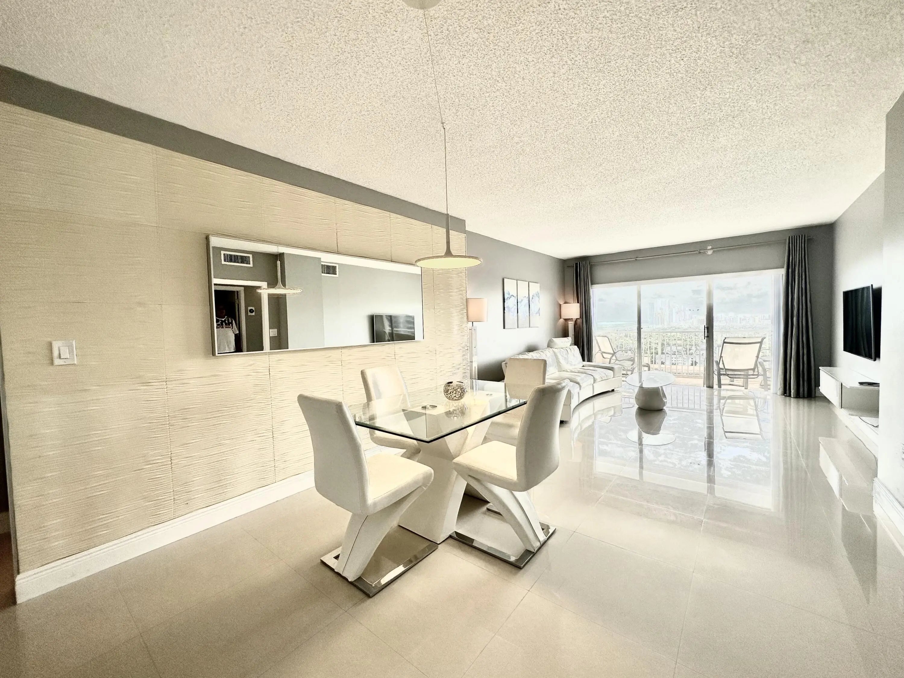Luxury rental in the HEMISPHERES CONDO. Furnished Large one bedroom and 1.5 baths. stainless steel appliances. Panoramic views of ocean, city and intercostal. Rent includes, Water, Sewer, Cable and Internet. Furnished annual rental, available for immediate move-in. Access to the Beach with Beach service. Building's Amenities: 24/7 Security and Doorman service. Valet parking service. Two tennis courts. Bocce court. Basketball court. Pool tables. Ping pong tables. Two large pools. Two toddler pools. Two fitness rooms, sauna, steam room, locker rooms. A card rooms. Marina, Ballroom. Club house. Two Restaurants. Convenience store and hair salon downstairs.