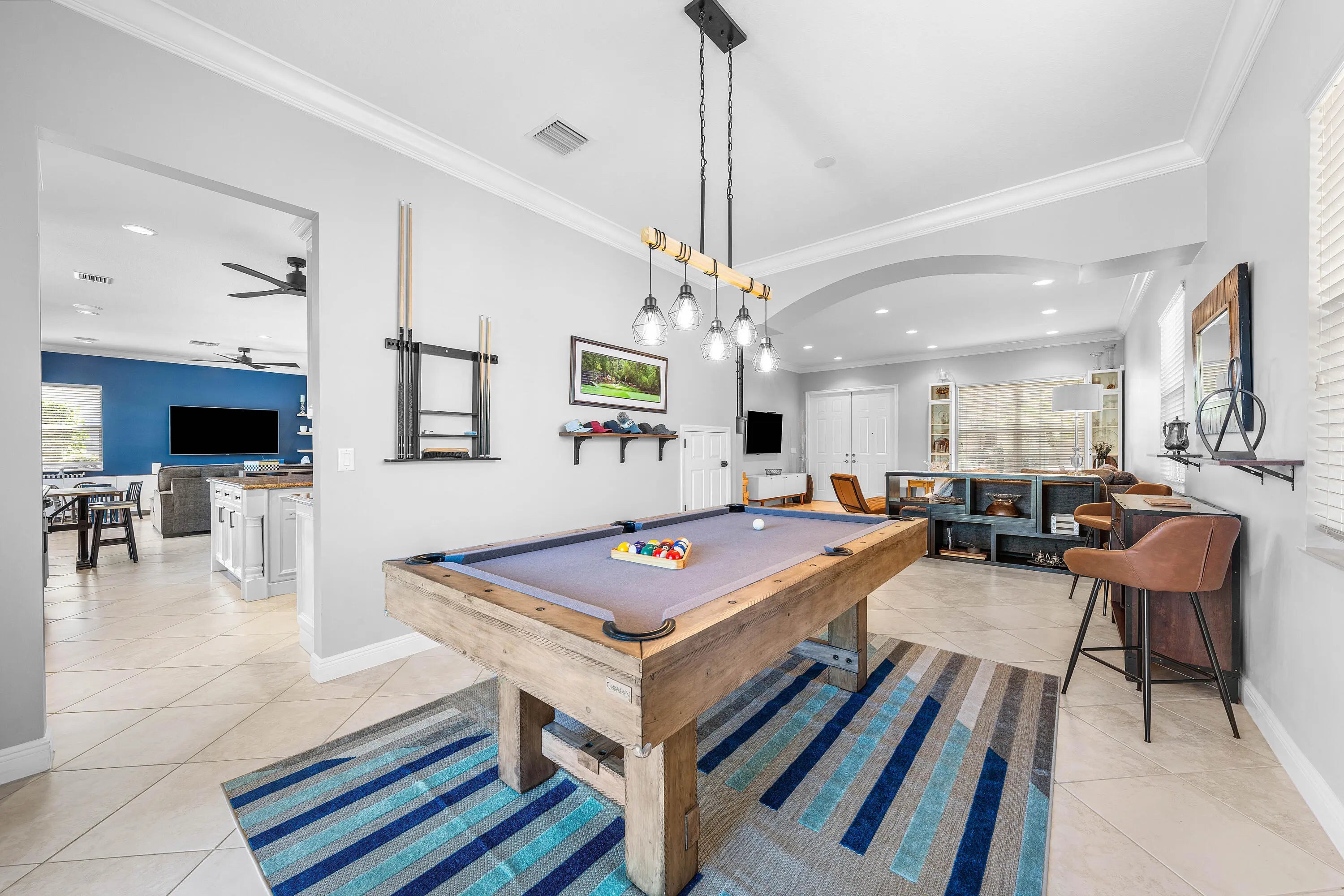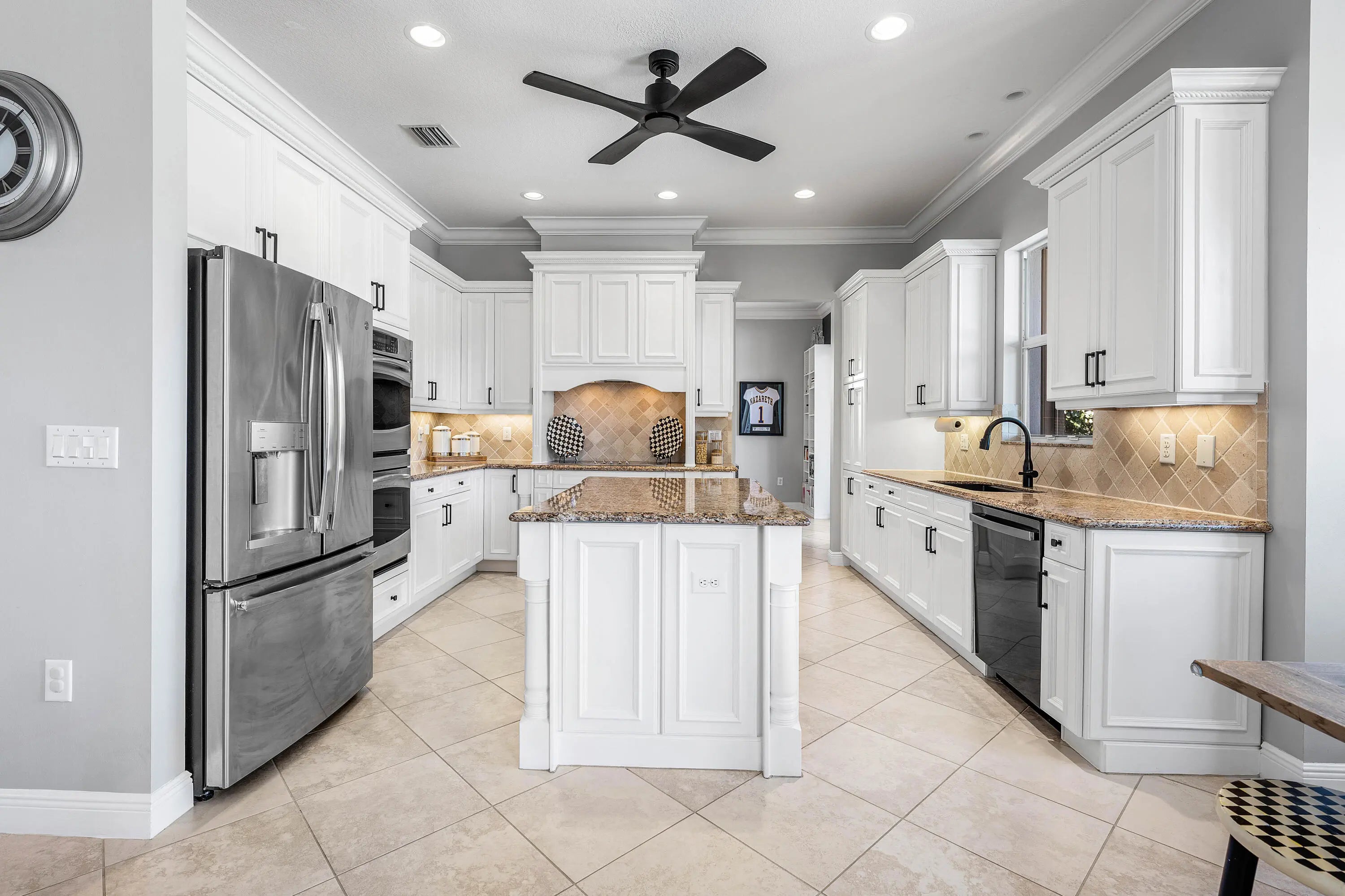 Located on a beautiful lakefront lot with no rear neighbors, this exceptional residence offers the highly desirable Lily floorplan with 5 bedrooms, 4 baths and 3-car garage. The home features 3,550 square feet of living space, thoughtfully designed for both everyday living and elegant entertaining. This meticulously maintained home showcases refined finishes throughout including crown moulding, designer lighting and custom built-in closets. The outdoor living spaces are equally impressive, featuring a heated saltwater pool, turfed yard with putting green, screened balcony overlooking the lake, and lush landscaping with custom lighting. With modern smart home features, a whole-house generator and extensive security system, this residence offers the perfect combination of comfort and style. This home is located in the sought after community of Canyon Springs, a luxury manned gated community in west Boynton Beach. There is an elegant clubhouse featuring a multipurpose club room with catering kitchen. Recreational amenities include indoor and outdoor play areas, resort style community pool, splash pad, fitness center, full-court basketball and two har-tru tennis courts with shade pavilions. Prime location - down the road from "A" rated Sunset Palms Elementary and "A" rated West Boynton Middle Schools. "A" rated Park Vista Community High School is a short bus ride away. The community is minutes from Canyon Town Center which hosts a Publix grocery store, restaurants and shops, a newly built public library and the new Canyon District Park which features a destination playground, multipurpose fields, walking path, exercise course, picnic shelters, restrooms and the Canyon Amphitheater. The community is also in close proximity to Delray Marketplace and the Florida Turnpike. Special Interior Features Of This Home • Highly desirable Lily floorplan with 5 bedrooms and 4 bathrooms • Crown moulding throughout the home • Flat wall finish throughout • Tile flooring laid on the diagonal in main living areas • Designer light fixtures and ceiling fans • Additional recessed lighting throughout • Custom built-in closets throughout the home • Large under-stair storage closet Smart & Security Features • Whole-house Generac generator • Hurricane impact windows on the front second floor • Accordion shutters on remaining windows and doors • 8 exterior security cameras providing 360-degree coverage • Nest smoke and carbon monoxide detectors - Gourmet Kitchen features • White wood cabinetry with granite countertops • Tile backsplash • Upgraded custom wood hood • Large center island • Spacious walk-in built-in pantry • GE Profile appliances including: Double oven Dishwasher Glass cooktop stove • Bright eat-in breakfast area open to the family room - Large Family Room Features • Bose surround sound speaker system • Recessed lighting • Ceiling fan • Open concept layout ideal for entertaining - Formal Dining Room • Designer chandelier • Recessed lighting • Sliding glass doors leading to the backyard - Luxurious Primary Suite - Primary Bedroom • Engineered wood flooring • Plantation shutters • French doors leading to screened balcony • Two custom built-in walk-in closets • Coffered ceiling with crown moulding • Recessed lighting and ceiling fan • Large seating area • Built-in furniture - Primary Bathroom (Fully Renovated) • KitchenCraft wood cabinetry with quartz countertops • Freestanding soaking tub • Designer mirrors and lighting • Frameless glass shower enclosure • Rain shower and handheld shower head • Full-height tile in shower • Modern black tile flooring • Plantation shutters • Built-in linen cabinet - Additional Bedrooms & Bathrooms - Guest Suite 1 - Downstairs • Double door entry • Porcelain wood plank flooring • Crown moulding • Built-in closet • Ceiling fan and recessed LED lighting - Guest Suites 2 & 3 - Jack & Jill • Engineered wood flooring • Custom built-in walk-in closets • Ceiling fans with lighting • Large L-shaped Jack & Jill bathroom featuring: Wood cabinetry with granite countertop, Mirror to ceiling, Custom built-in wall cabinet with deep pull-outs, Bathtub and shower with full-height tile and listello design - Guest Suite 4 • Plush carpeting • Walk-in closet • Ceiling fan with light - First Floor Bath/Powder Room • Shower with full-height tile and listello design • Wood cabinetry with granite countertop • Custom paint finish resembling wallpaper - Laundry Room • Spacious laundry room with folding counter • Samsung washer and dryer • Laundry sink - Outdoor Living & Exterior Features • Prime lakefront lot with no rear neighbors • Heated saltwater swimming pool • Screened second-story balcony with lake and pool views • Turfed backyard with putting green and grassy play area • Covered patio with ceiling fan • Mosquito misting system • Lush landscaping with exterior lighting - Garage • Three-car garage • Garage Tech flooring system • Della mini-split air conditioning • Organizational slat wall storage system