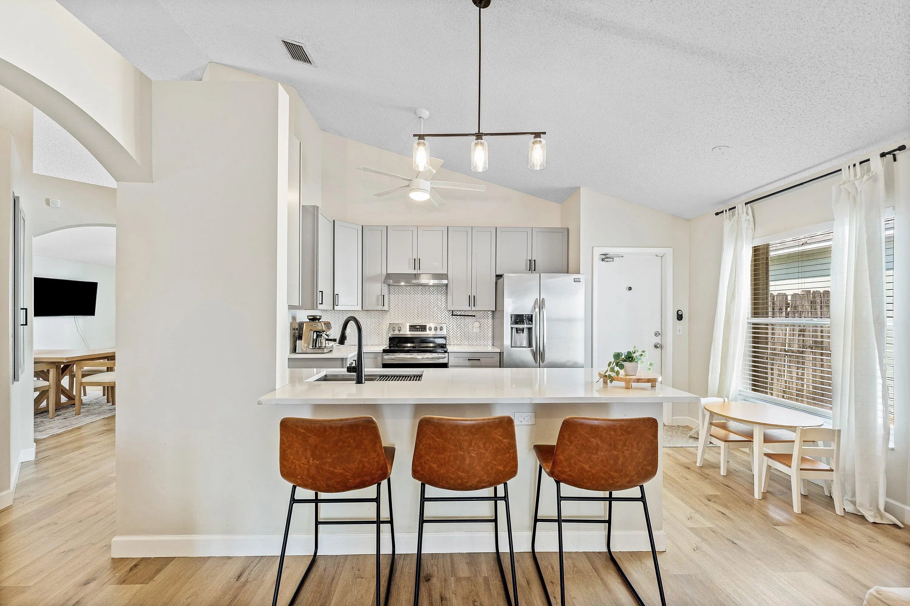 Tasteful one-story home with incredible lake views! Located in the heart of Boynton Beach. This home offers a split-floorplan with three spacious bedrooms. Design elements include plank-style flooring, an open chef's kitchen, and renovated bathrooms. The backyard is a serene oasis - featuring a screened and covered lanai, abundant green space, and sweeping lakefront views. The central location offers convenience and an ease of living. Minutes to fine dining, world class shopping, PBI, educational/cultural venues, and pristine beaches!