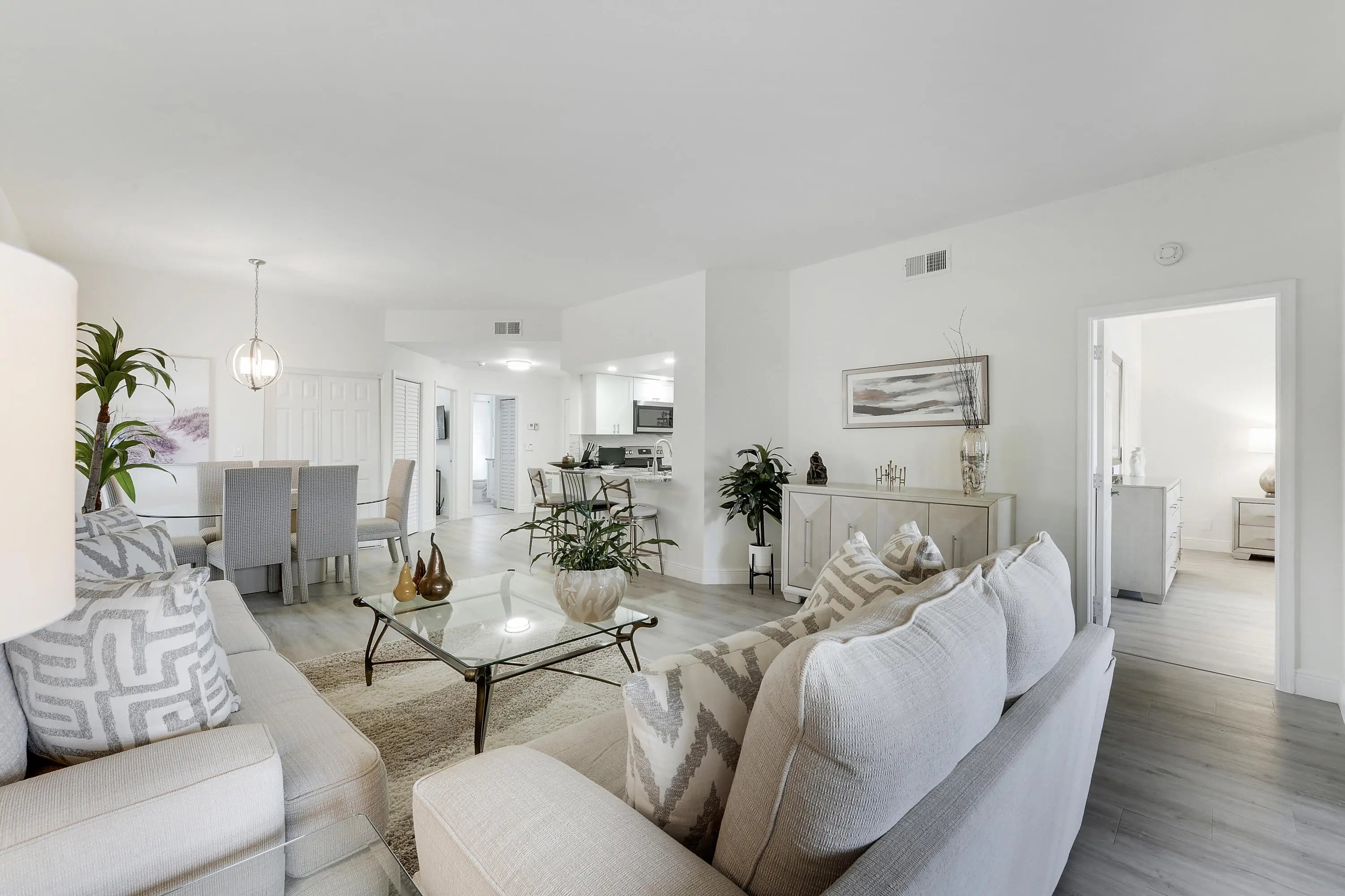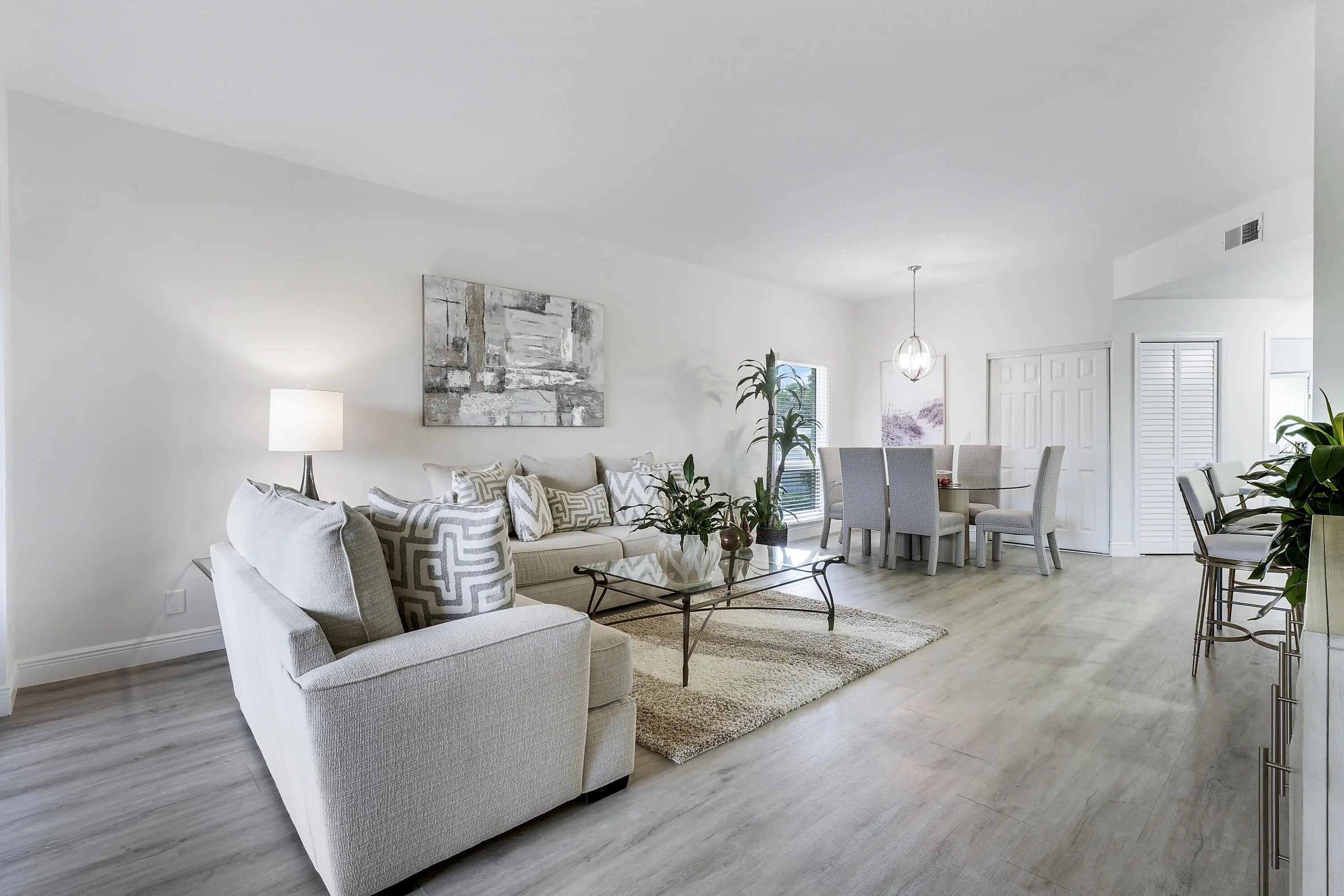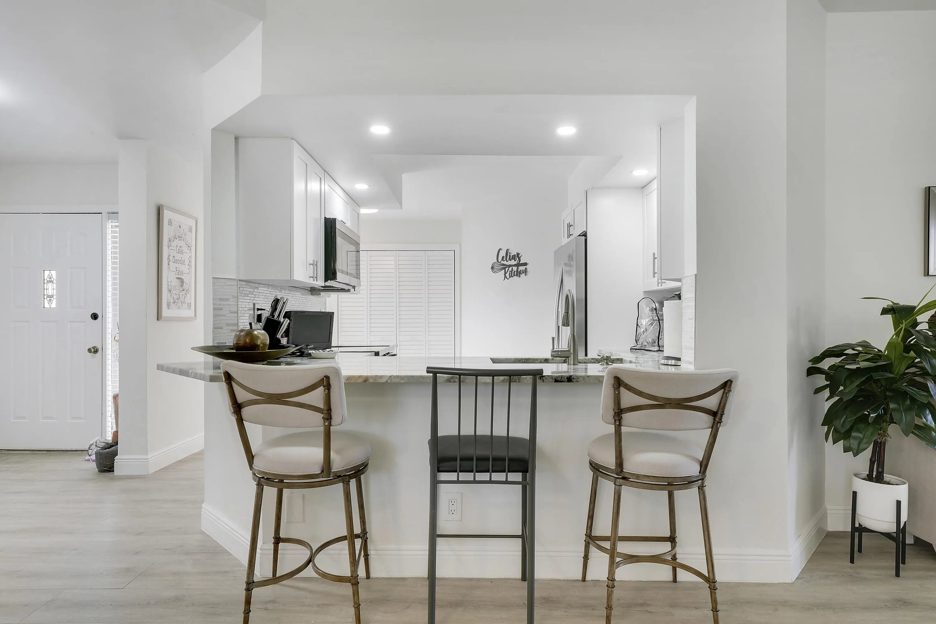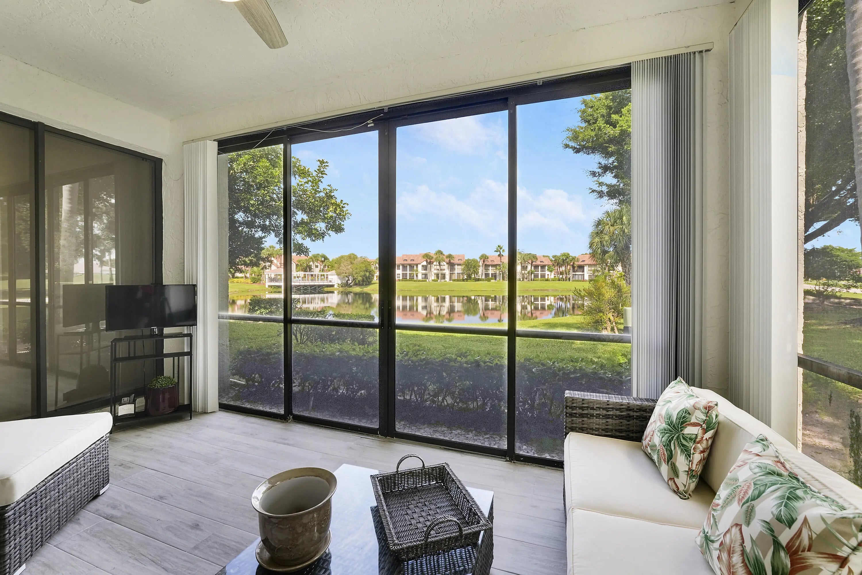 Beautifully Move-in Ready Updated 2BR/2BA Condo in El Viento at Boca Pointe. This stunning, move-in ready 2-bedroom, 2-bathroom condo features a bright and open floor plan filled with natural light. Located on the first floor in the highly desirable Mediterranean-style. This home offers both comfort and convenience. Completely renovated this condo showcases a modern kitchen with stainless steel appliances, white cabinetry, and granite countertops. Enjoy stylish laminate flooring throughout. Additional features include covered parking and a private storage unit. The property is ideally situated within walking distance to the community pool and country club. Conveniently located near I-95 and the Turnpike, schools restaurants, shopping, and beautiful South Florida beaches.