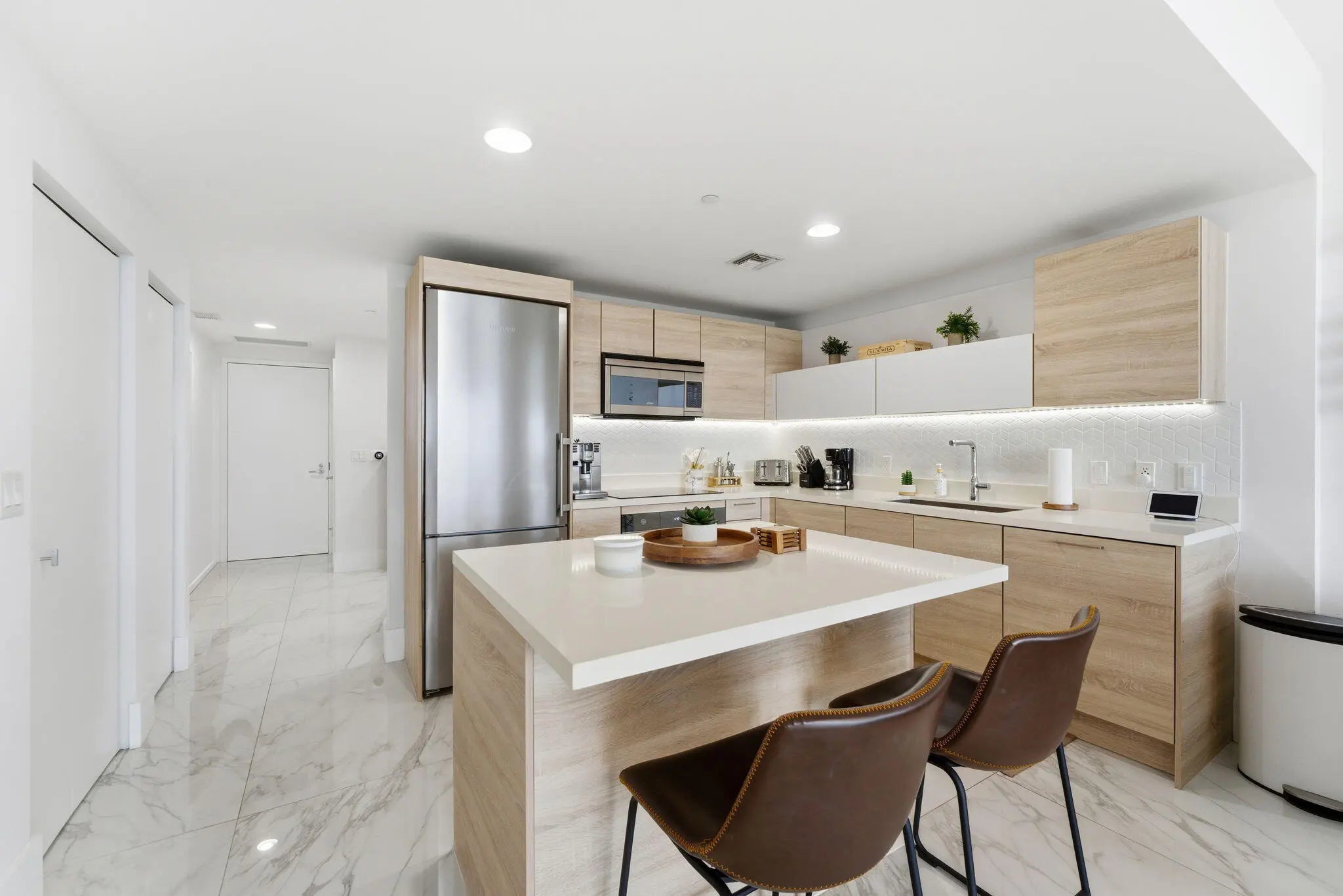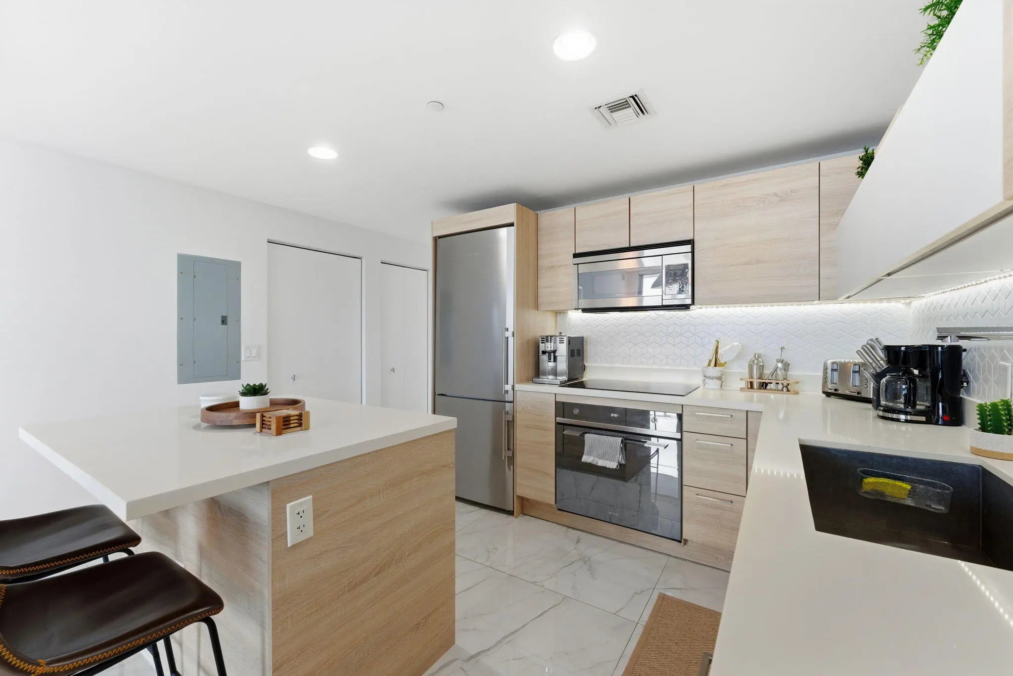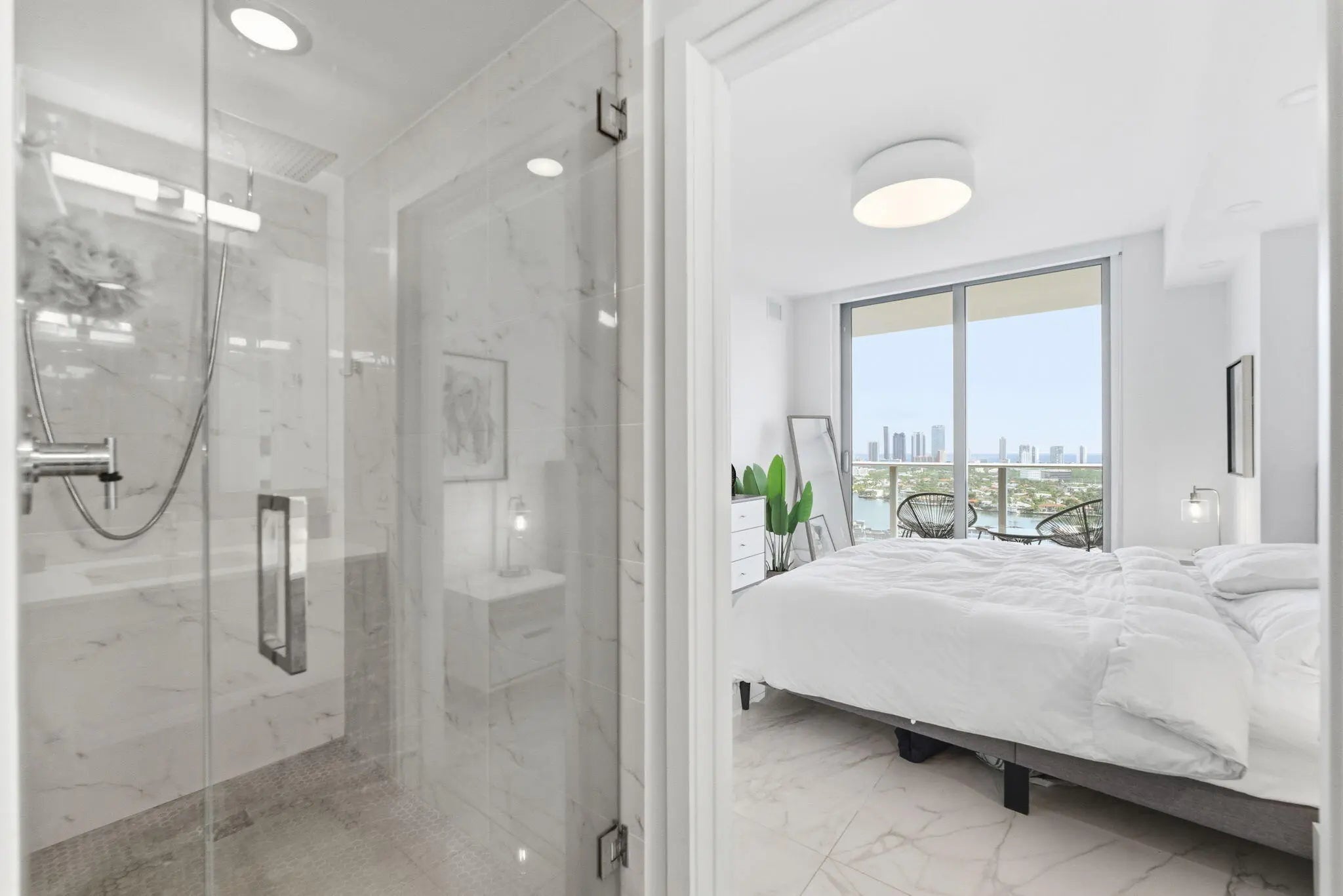 Wow! Sophisticated 2 bedroom, 2 bathroom plus den residence at The Harbor in North Miami, minutes from Aventura, Sunny Isles, top restaurants, Aventura Mall, and Bal Harbour Shops. Enjoy private elevator access, marble floors, high end European appliances, custom cabinets, built out closets, and in unit laundry. Floor to ceiling windows open to an expansive private balcony with stunning views of Oleta State Park, the ocean, bay, and Intracoastal. Amenities include 24/7 security, valet, fitness center, spa, sauna, steam room, indoor jacuzzi, heated pool with cabana bar, beach area, lounges, yoga studio, tennis, basketball, pickleball, soccer field, kids' play room, and pet park. Built in 2018, SIRS complete, no assessments. Come enjoy The Harbor as your primary residence or pied-à-terre.