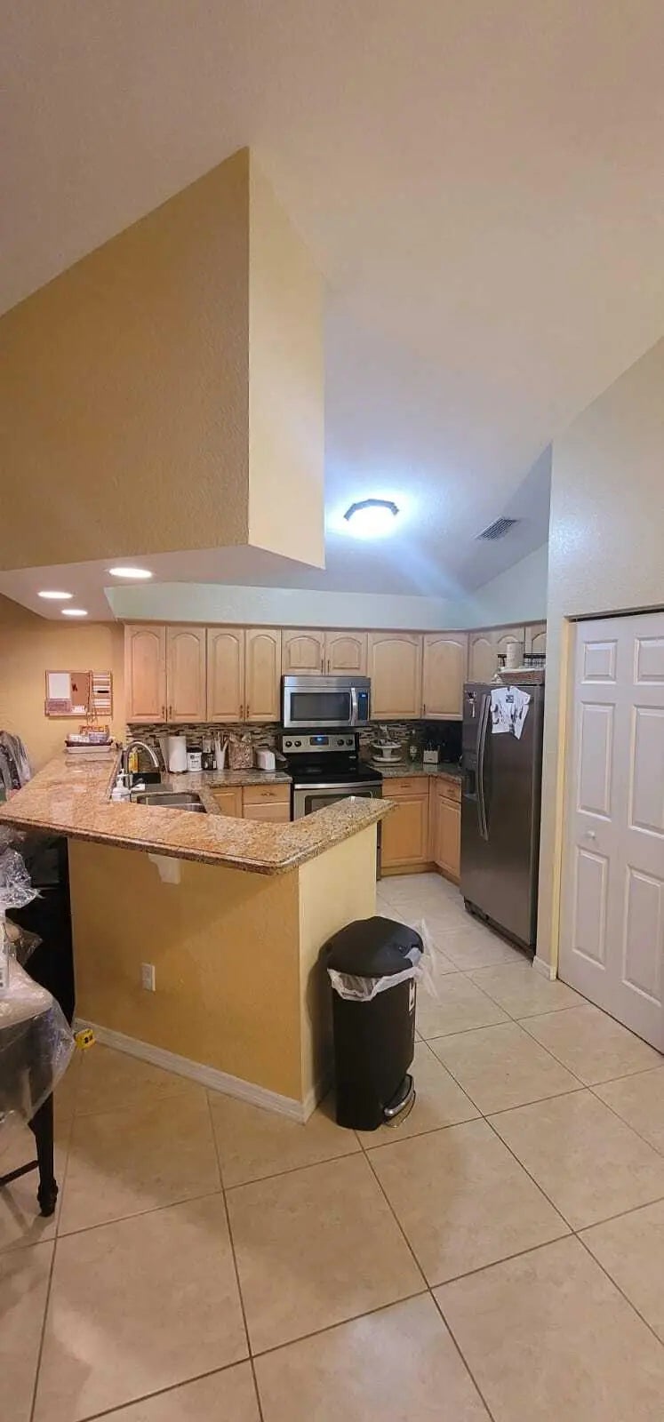 This spacious home features three bedrooms and two bathrooms and is situated in a well-kept, quiet neighborhood. The location is ideally situated just five minutes from the beach and two minutes from the interstate, offering easy access to local schools, medical facilities, and shopping plazas. To ensure your comfort and security, the home is equipped with stainless steel appliances, a full-size washer and dryer, two air conditioning units, and hurricane shutters with a reinforced storm door. Additionally, the property includes a closed, screened patio with a dedicated entry and exit door.