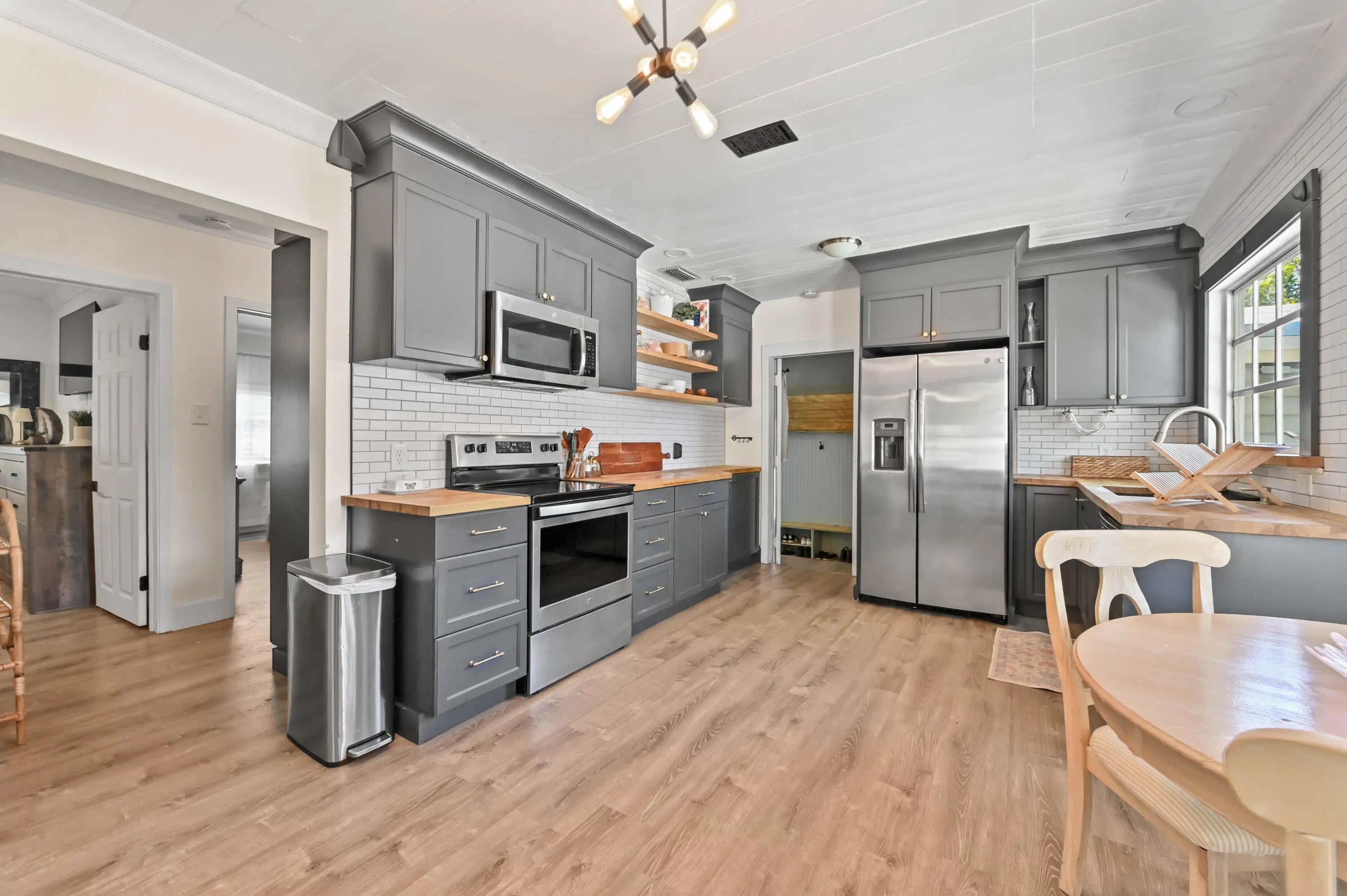 Welcome to Lake Worth Heights, where this unique property sits on a huge corner double lot offering exceptional space, versatility, and value. The main house features 2 bedrooms and 1 bathroom, while the separate 1/1 guest house/in-law suite provides an ideal setup for extended family, guests, or rental income. The guest house/in-law suite is fully equipped with a full kitchen, bathroom, living room, and bedroom, providing complete privacy and comfort. Both living spaces feature updated kitchen cabinets with butcher block countertops, updated bathrooms, all-tile flooring throughout, fresh interior and exterior paint, new light fixtures and hardware, and a cozy fireplace in the main home. Enjoy the expansive outdoor space with 2 storage sheds, a large open patio, and a fenced backyard, perfect for entertaining, relaxing, or future enhancements. This property offers endless possibilities, don't miss out on this rare opportunity in Lake Worth Heights!