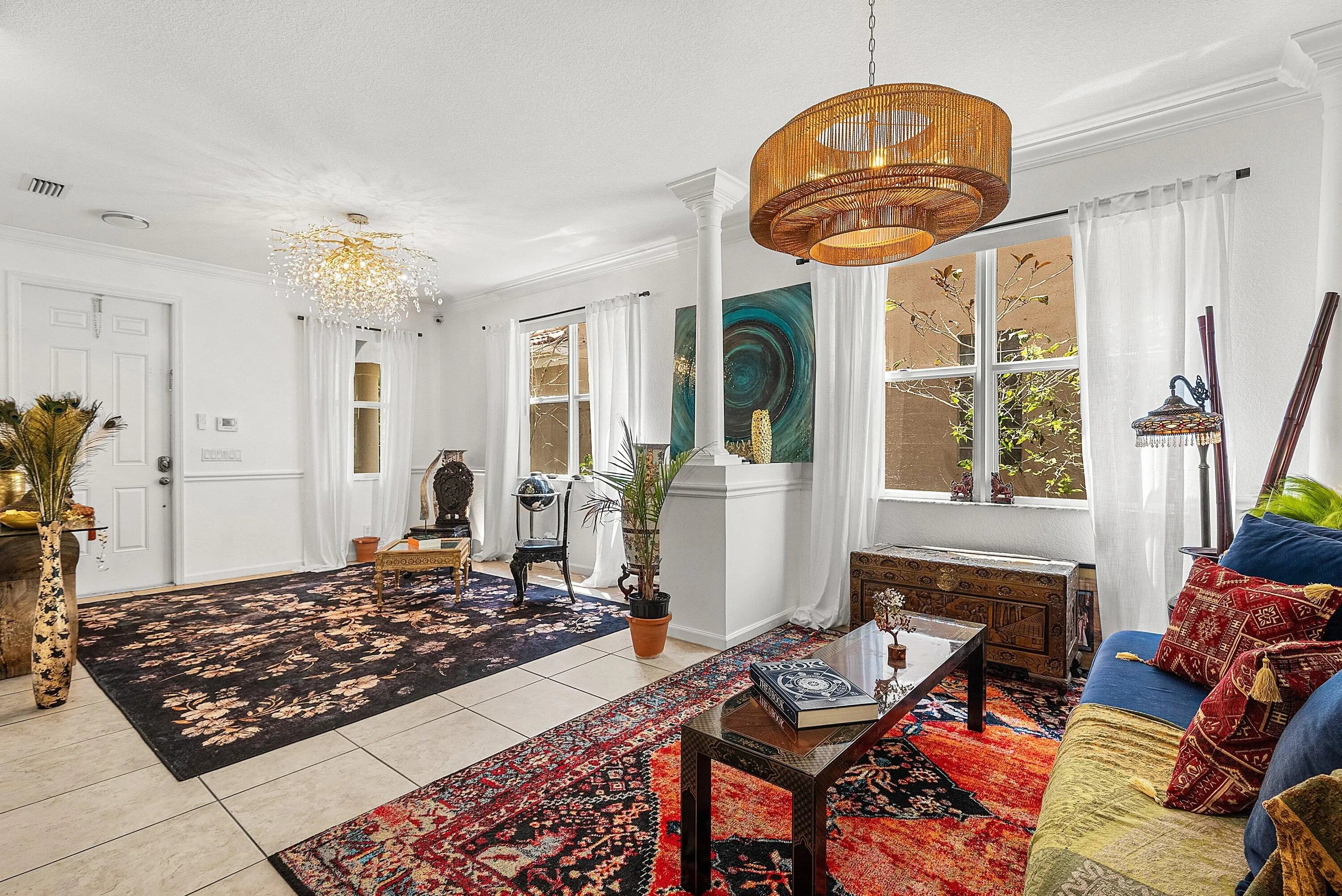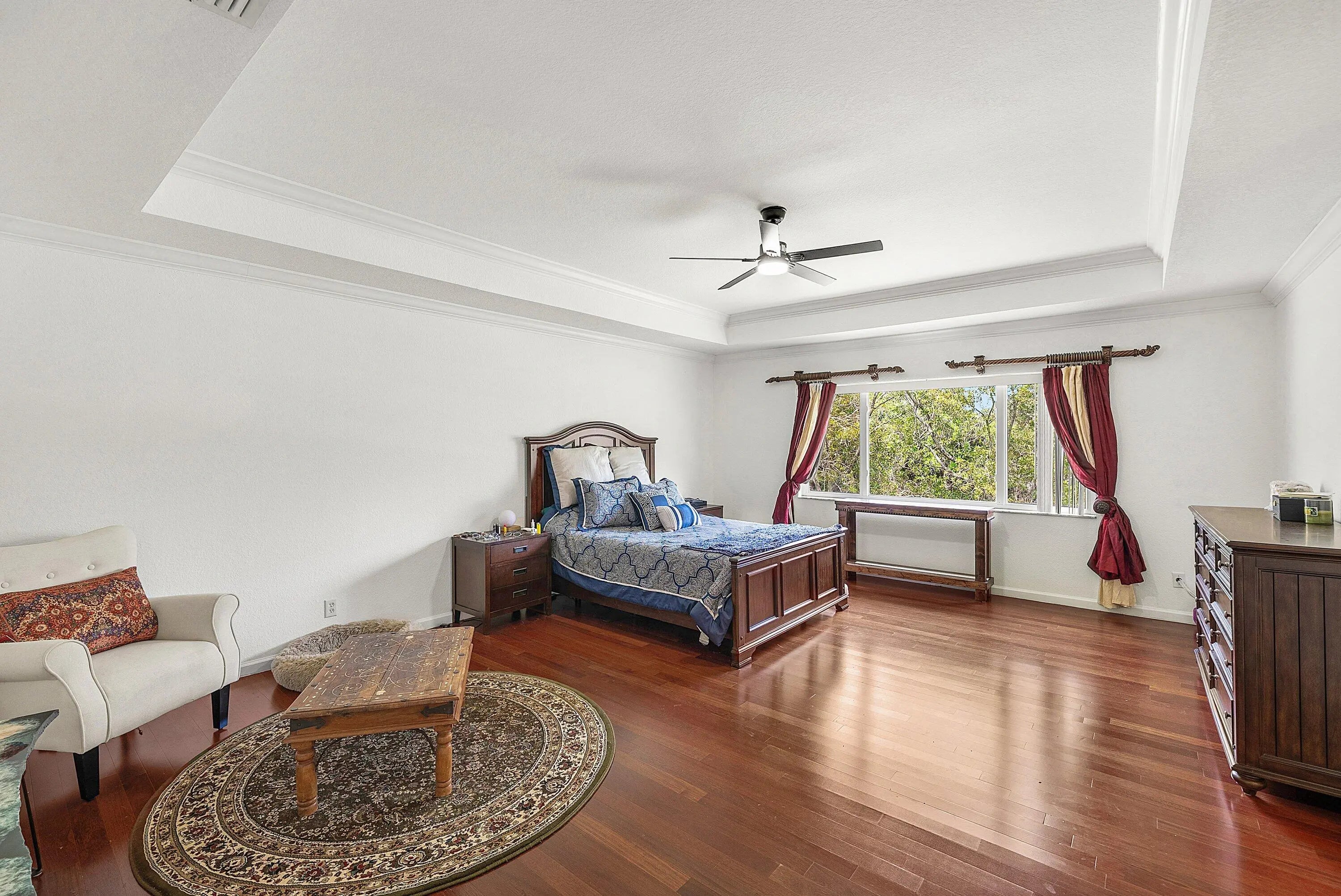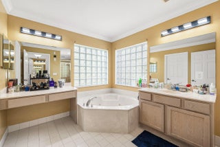 This spacious 5-bedroom, 3.5-bathroom home with a 2-car garage combines comfort, style, and functionality. Featuring elegant crown molding throughout, the home offers a blend of tile, wood, and laminate flooring, chair rail detailing, and smart switches in most rooms. The oversized kitchen is designed for both everyday living and entertaining, complete with stainless steel appliances, a brand-new 2025 refrigerator, granite countertops, light wood cabinetry with molding, glass cooktop, double oven, wine cooler, pantry closet, and a bright breakfast area.A wrought iron staircase leads to a cozy loft and well-appointed bedrooms. The primary suite features a tray ceiling, spacious his-and-hers walk-in closets, and a split bathroom layout with dual vanities, a Jacuzzi tub, and a walk-in shower One guest bedroom also includes a walk-in closet. A full-size laundry room adds convenience. Enjoy outdoor living on the covered, paved patio with no rear neighbors, offering added privacy. The home also features a brand-new 2025 roof with a transferable warranty for peace of mind. Located in the gated community of Thousand Oaks, residents enjoy amenities including a heated pool, clubhouse, fitness center, tennis and basketball courts, playground, and 24-hour manned gate. Conveniently close to shopping, dining, medical centers, I-95, local beaches, and just a short drive to downtown West Palm Beach, Rosemary Square, and Palm Beach Gardens.