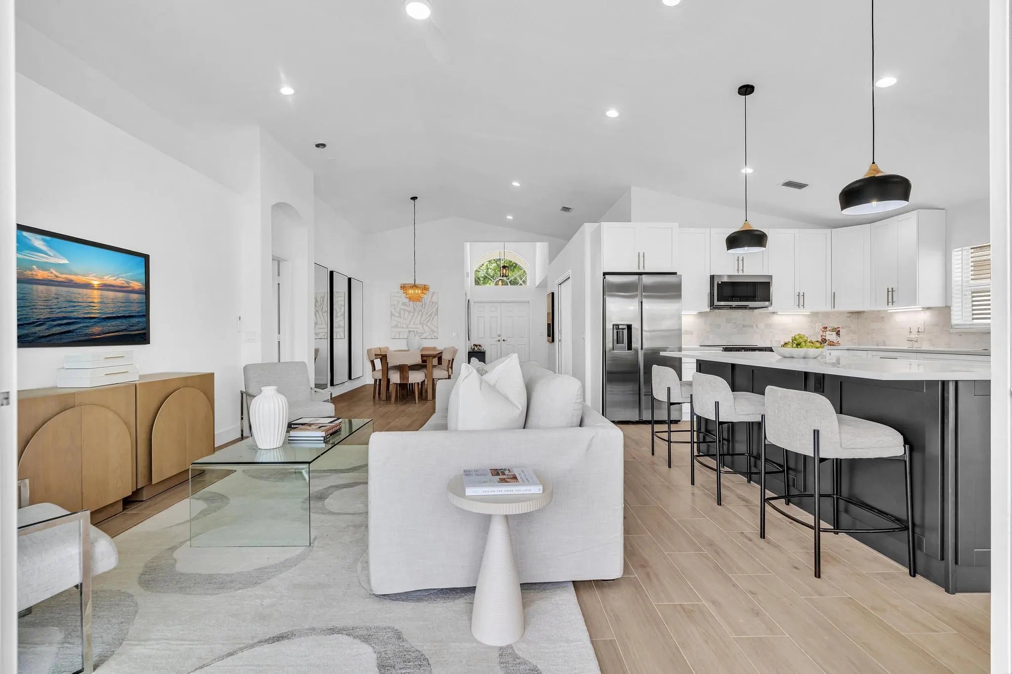 Cathedral Ceiling(s), High Ceilings, Kitchen Island, Vaulted Ceiling(s)