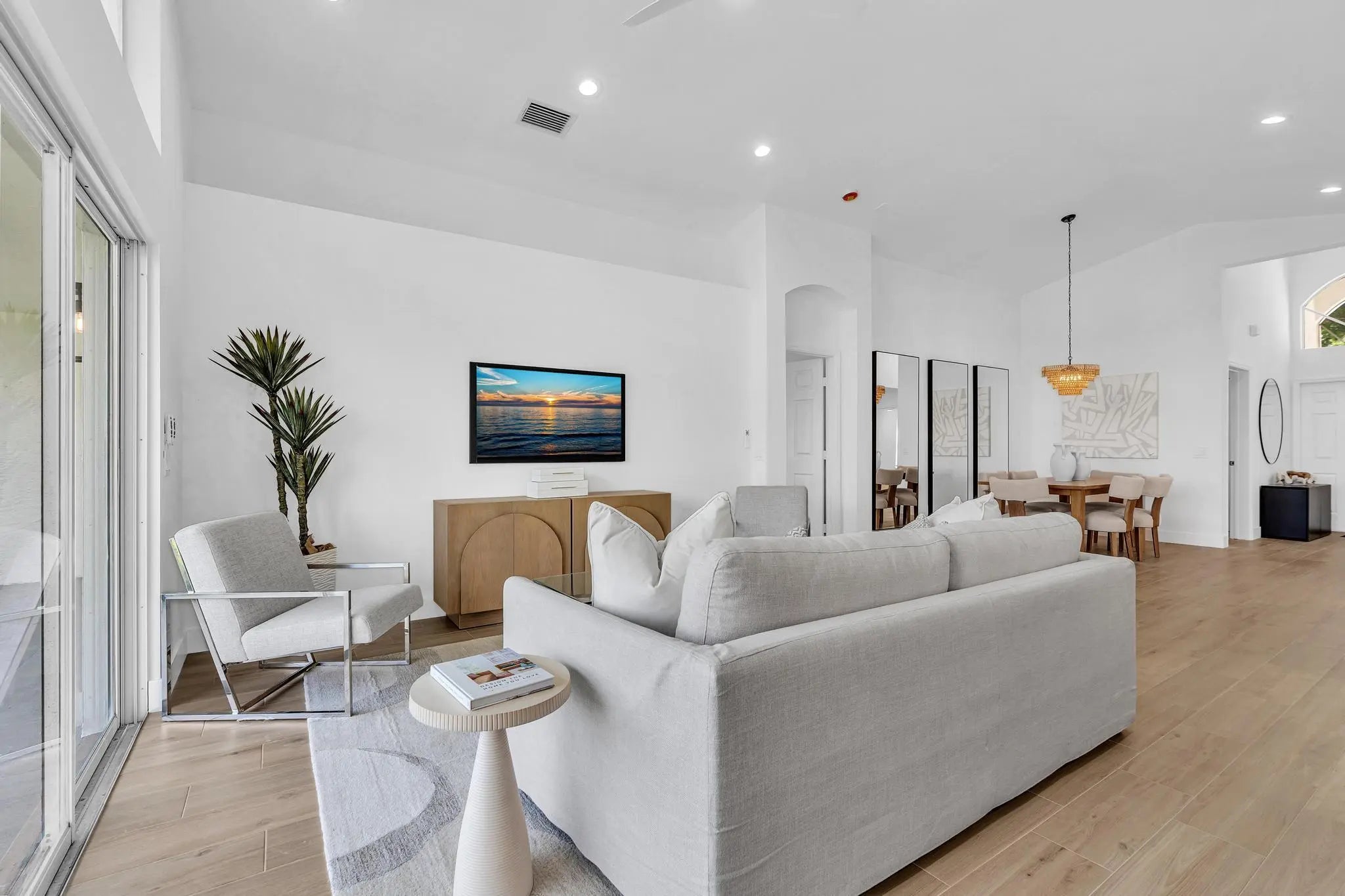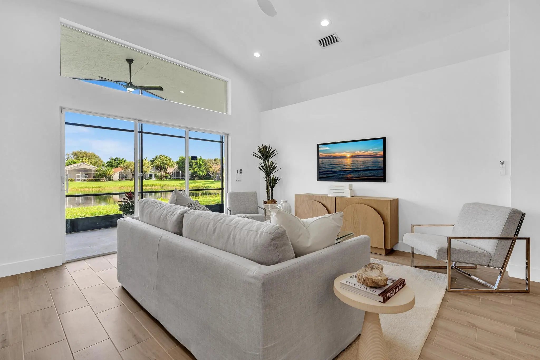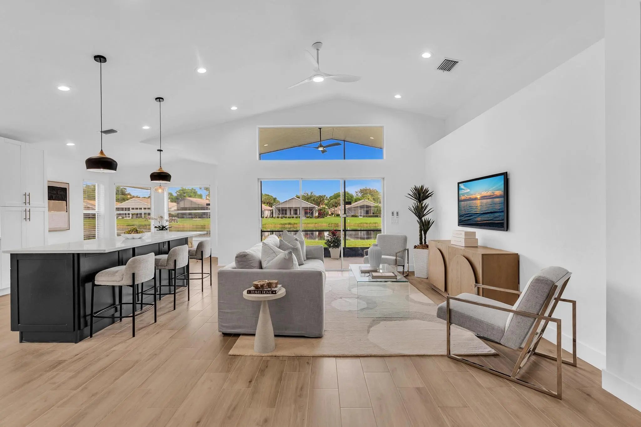 COMPLETELY RENOVATED and move-in ready, this spectacular 3BR/2BA home offers beautifully refined living space with water views and no detail overlooked. Enjoy total peace of mind w/ FULL IMPACT WINDOWS & DOORS, NEW ROOF, New HWH indoor-outdoor livinand AC 2018 combining modern efficiency, storm protection and exceptional curb appeal. The chef's kitchen is truly the heart of the home, showcasing brand new stainless steel appliances, wine refrigerator, and premium finishes throughout. It's both functional and striking perfect for everyday living and effortless entertaining. Designer-curated bathrooms elevate the home with spa-like elegance, featuring a freestanding soaking tub and walk-in showers that create a serene retreat. The Screened in Florida room offers water views and seamless indoor-outdoor living. Ideal for relaxing mornings, sunset evenings, or hosting guests year-round. Located in the prestigious, gated, and pet-friendly community of Valencia Lakes, residents enjoy a newly renovated clubhouse with café, resort-style pools, spa, tennis, pickleball, and an active lifestyle calendar. Just minutes to beaches, dining, and shopping. This is true lakefront luxury, completely turnkey and ready to enjoy.
