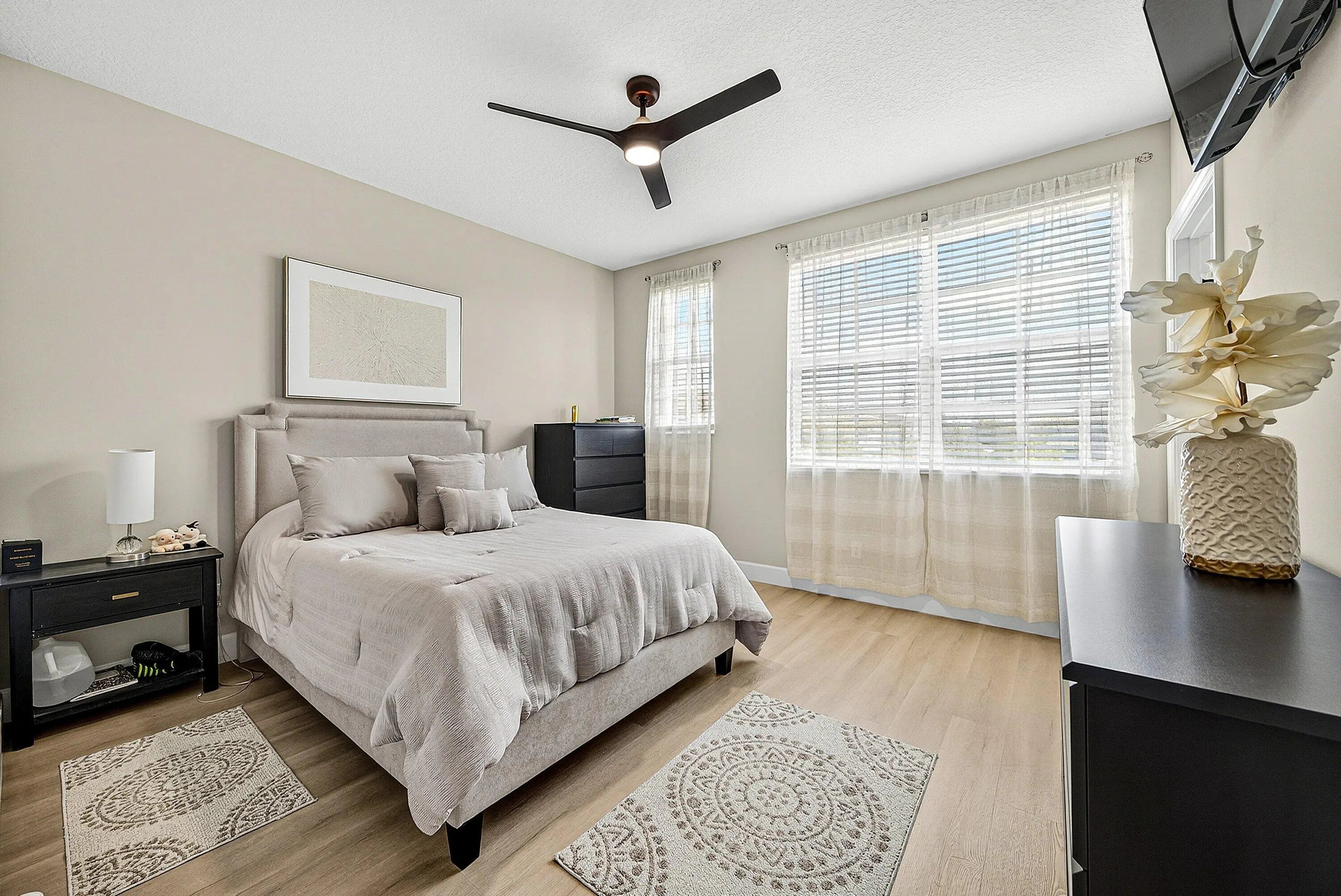 This beautifully updated 5-bedroom, 4-bath home offers the perfect balance of comfort, style, and functionality. Filled with natural light, the open layout flows easily from room to room, with new flooring throughout and a clean, neutral feel. The kitchen has been thoughtfully updated with new stainless steel appliances, a large island for gathering, and a walk-in pantry with great storage. All of the bathrooms have been finished with porcelain tile. The home also features two brand-new AC units with UV systems for better air quality and efficiency. The bedrooms are spacious and private, and the covered patio and backyard make it easy to enjoy indoor-outdoor living. There's also custom garage storage for added convenience. Located in AndalucĂa, within a top-rated school district, and close to shopping, dining, and major highways, this is a move-in ready home in a great location.