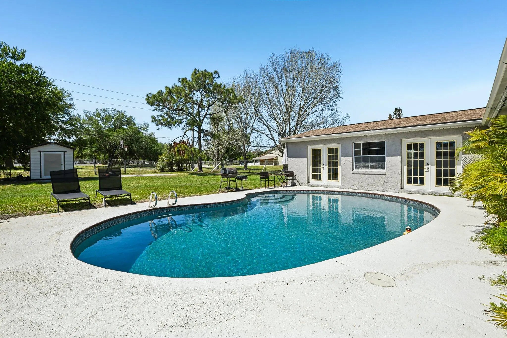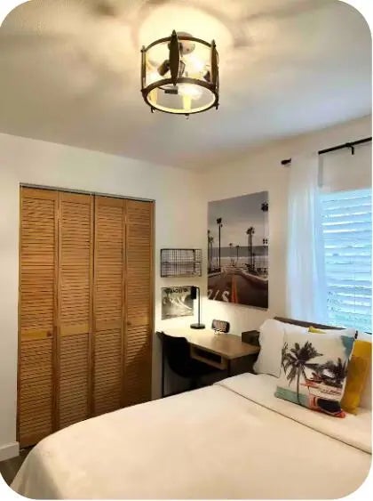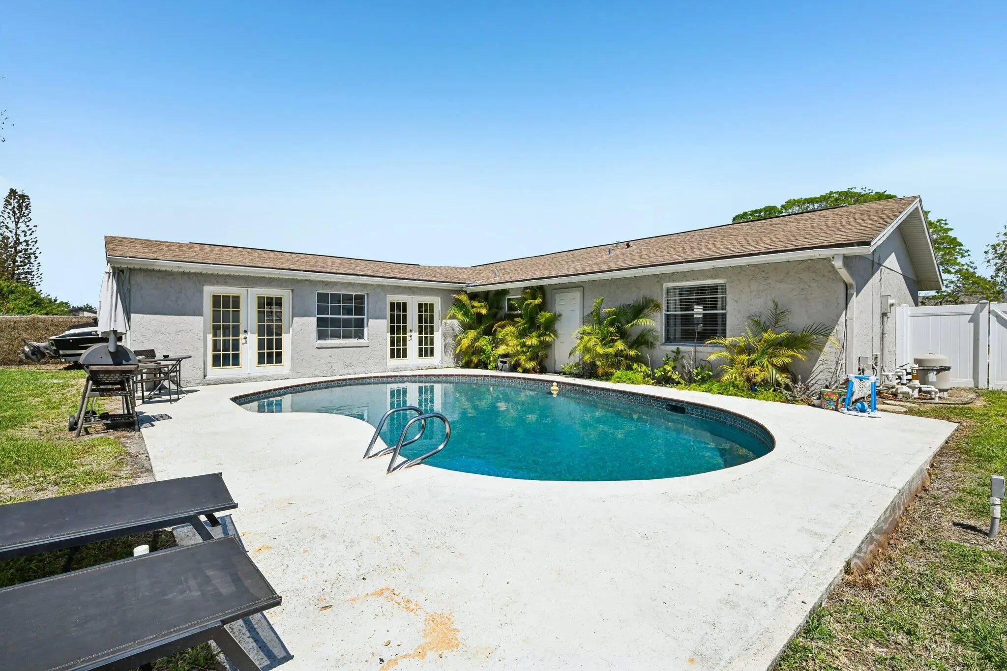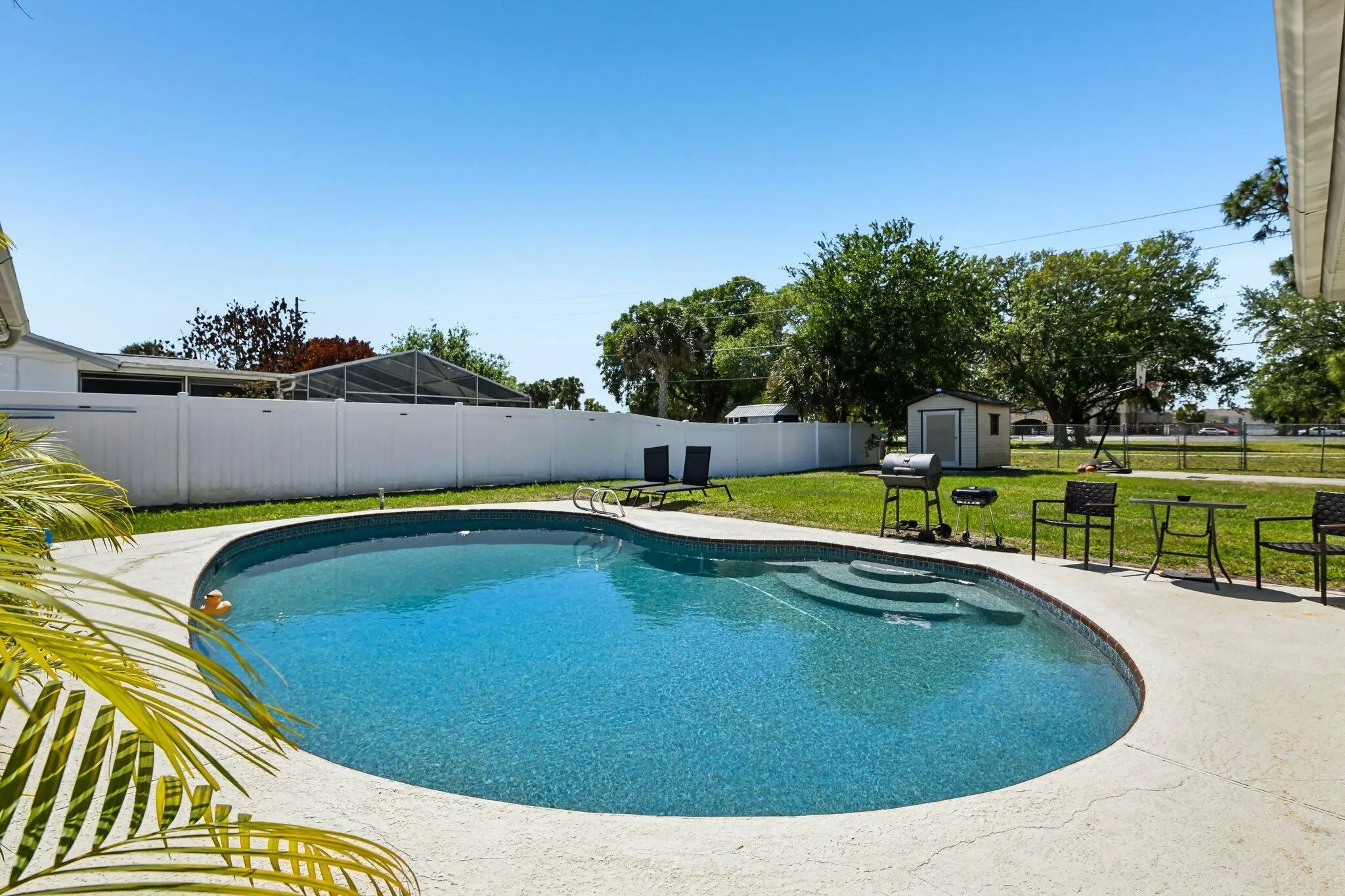 This move-in-ready, fully furnished 3-bedroom, 2-bath pool home (with easy conversion potential for a 4th bedroom) is a proven income producer — or your perfect personal paradise. Beautifully renovated coastal retreat that has already earned Customer Top Favorite status on Airbnb — complete with 200+ glowing 5-star reviews and existing bookings ready to transfer to the new owner. Turnkey Top-Favorite Airbnb on Merritt Island's Space Coast! Freshly remodeled in 2022 with a brand-new kitchen, modern appliances, all-new AC ducts, interior finishes, and thoughtful upgrades throughout, it comes plug-and-play — every sofa, TV, kitchen item, linen, game, and décor piece stays with the sale. No startup costs, no guesswork. Inside, vacation mode activates instantly: Open-concept living and dining areas perfect for gatherings Fully stocked kitchen with coffee station and modern appliances Primary suite with king bed, private bath, and direct access to the pool area Second bedroom with full bed, desk, and generous closet Third bedroom with twin trundle daybed, TV, and closet Huge bonus/family room with its own dedicated mini-split AC unit — ideal for game nights, movie marathons, or relaxing Additional storage room that can easily be converted into a true 4th bedroom Convenient 1-car garage with washer/dryer hookups Your private backyard oasis is the standout feature: a sprawling 0.28-acre lot (12,197 sq ft) — the largest in the entire community! This fully fenced backyard includes a sparkling in-ground swimming pool (professionally serviced every Friday), a little basketball court for friendly games, a small storage shed, and a BBQ grill area ready for sunset dinners under the palms. The pool is functional and enjoyed by guests year-round (note: not heated). Minor maintenance items typical of Florida pools are being addressed as-is — perfect for the next owner to customize. Location that books itself — just minutes from the best of the Space Coast: 11 min to charming Cocoa Village 15 min to Cocoa Beach & Cape Canaveral 15 min to Kennedy Space Center, SpaceX & Blue Origin 7.2 miles to Port Canaveral cruises Space launches? Guests love the thrill (audible from the home — easy info via Next Spaceflight app) Zoned for highly rated Mila Elementary, Thomas Jefferson Middle School, and Merritt Island High School — a huge plus for families. Whether you continue the proven Rogue Bungalow Airbnb success (strong occupancy, rave reviews, turnkey furnishings) or enjoy it as your own coastal escape, this home delivers immediate lifestyle + income potential. Offered as-is at a motivated price so you can move fast. Priced at $399,000 — cash or conventional or creative investor financing buyers welcome. Serious inquiries only. Preferred lender offers investor-friendly no-doc loans (no income verification, no debt verification, no DTI) as low as 20% down with up to $500 appraisal reimbursement. Appointment only! Schedule your showing today!