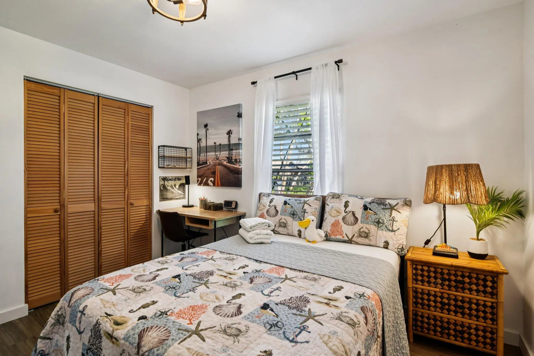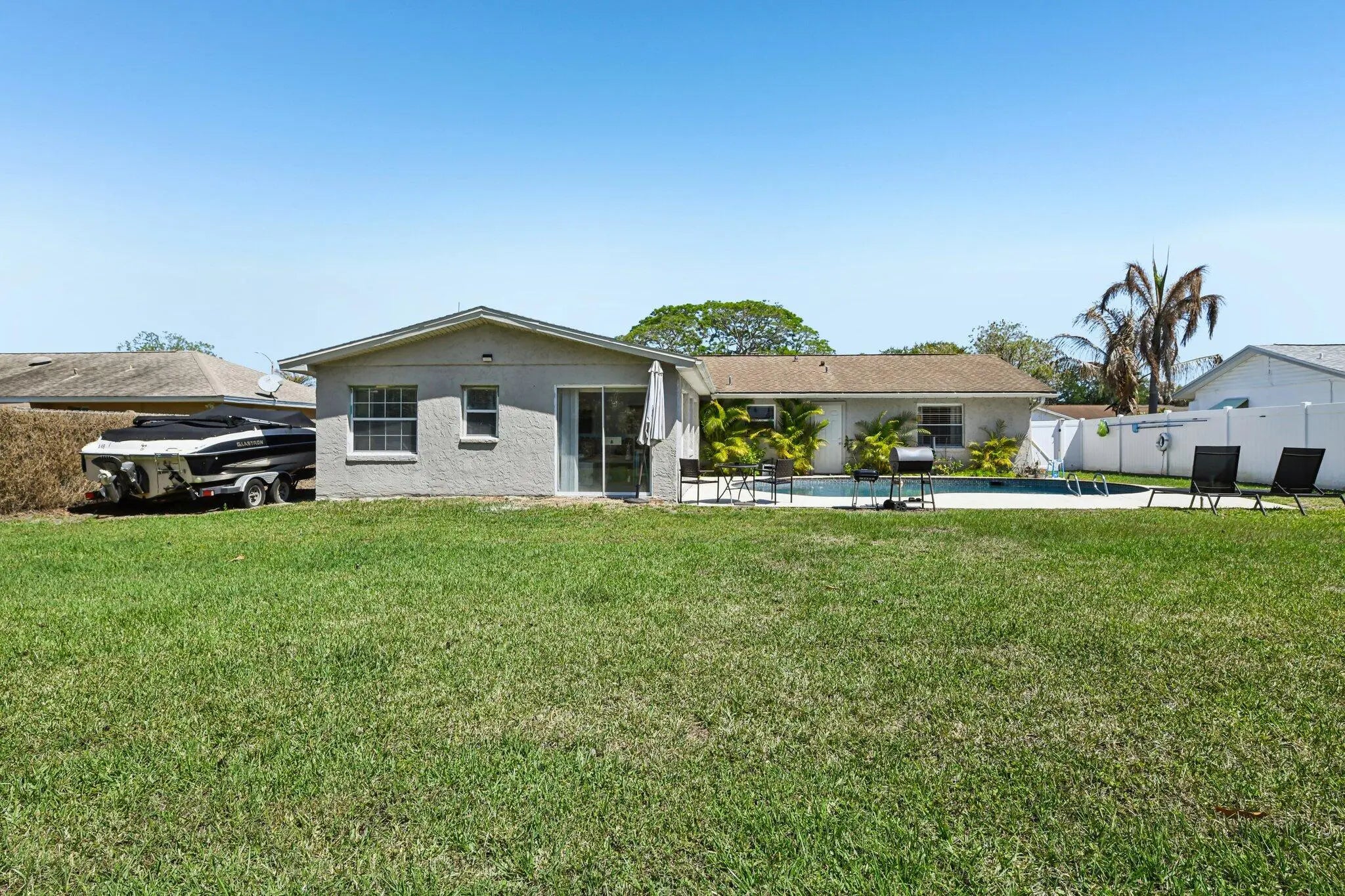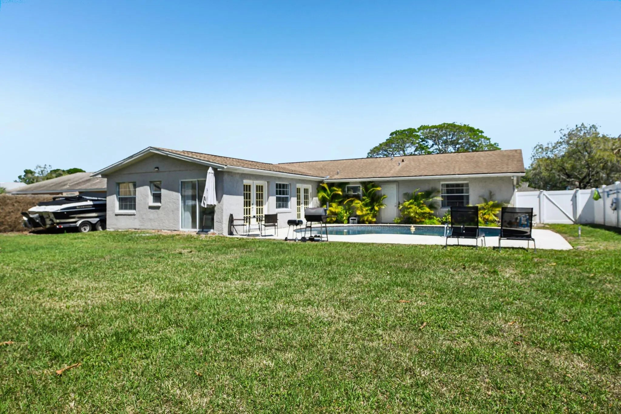 This move-in-ready, fully furnished 3-bedroom, 2-bath pool home (with easy conversion potential for a 4th bedroom) is a proven income producer — or your perfect personal paradise. Beautifully renovated coastal retreat that has already earned Customer Top Favorite status on Airbnb — complete with 200+ glowing 5-star reviews and existing bookings ready to transfer to the new owner. Turnkey Top-Favorite Airbnb on Merritt Island's Space Coast! Freshly remodeled in 2022 with a brand-new kitchen, modern appliances, all-new AC ducts, interior finishes, and thoughtful upgrades throughout, it comes plug-and-play — every sofa, TV, kitchen item, linen, game, and décor piece stays with the sale. No startup costs, no guesswork. Inside, vacation mode activates instantly: Open-concept living and dining areas perfect for gatherings Fully stocked kitchen with coffee station and modern appliances Primary suite with king bed, private bath, and direct access to the pool area Second bedroom with full bed, desk, and generous closet Third bedroom with twin trundle daybed, TV, and closet Huge bonus/family room with its own dedicated mini-split AC unit — ideal for game nights, movie marathons, or relaxing Additional storage room that can easily be converted into a true 4th bedroom Convenient 1-car garage with washer/dryer hookups Your private backyard oasis is the standout feature: a sprawling 0.28-acre lot (12,197 sq ft) — the largest in the entire community! This fully fenced backyard includes a sparkling in-ground swimming pool (professionally serviced every Friday), a little basketball court for friendly games, a small storage shed, and a BBQ grill area ready for sunset dinners under the palms. The pool is functional and enjoyed by guests year-round (note: not heated). Minor maintenance items typical of Florida pools are being addressed as-is — perfect for the next owner to customize. Location that books itself — just minutes from the best of the Space Coast: 11 min to charming Cocoa Village 15 min to Cocoa Beach & Cape Canaveral 15 min to Kennedy Space Center, SpaceX & Blue Origin 7.2 miles to Port Canaveral cruises Space launches? Guests love the thrill (audible from the home — easy info via Next Spaceflight app) Zoned for highly rated Mila Elementary, Thomas Jefferson Middle School, and Merritt Island High School — a huge plus for families. Whether you continue the proven Rogue Bungalow Airbnb success (strong occupancy, rave reviews, turnkey furnishings) or enjoy it as your own coastal escape, this home delivers immediate lifestyle + income potential. Offered as-is at a motivated price so you can move fast. Priced at $399,000 — cash or conventional or creative investor financing buyers welcome. Serious inquiries only. Preferred lender offers investor-friendly no-doc loans (no income verification, no debt verification, no DTI) as low as 20% down with up to $500 appraisal reimbursement. Appointment only! Schedule your showing today!