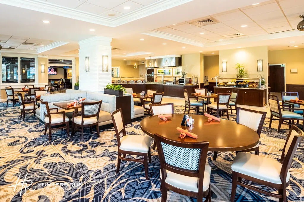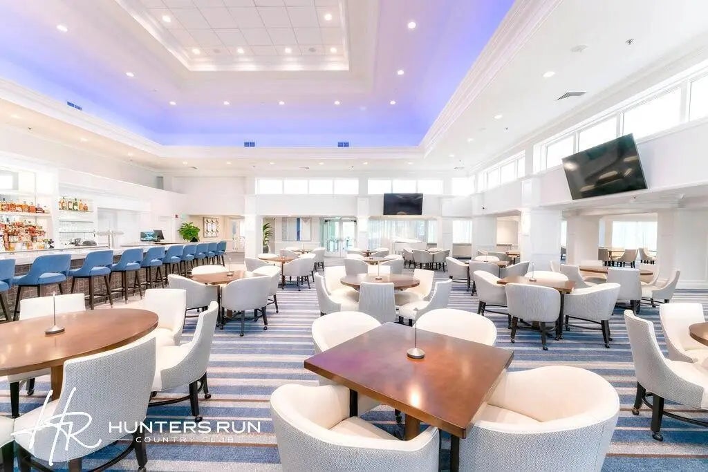 Welcome to this modern 2BR/2BA in Eastgate at Hunters Run Country Club. This updated gem spans 1421 square feet and offers stunning western golf and water views. The great room with a vaulted ceiling and skylights creates a bright and airy ambiance, while the open-concept kitchen boasts custom cabinetry, quartz countertops, and stainless steel appliances. The luxury vinyl plank flooring adds a touch of elegance, and the glass-enclosed Florida room provides a serene space to unwind and take in the picturesque surroundings. ROOF & SKYLIGHTS REPLACED IN 2023. Make this your home at Hunters Run today! The best of country club living is waiting for you at Hunters Run. Residents enjoy access to 54 holes of championship golf, 18 har-tru tennis courts, 12 pickleball courts, newly updated resort style clubhouse and pool, salons and spa, state of the art fitness center, six dining venues and so much more. Mandatory membership