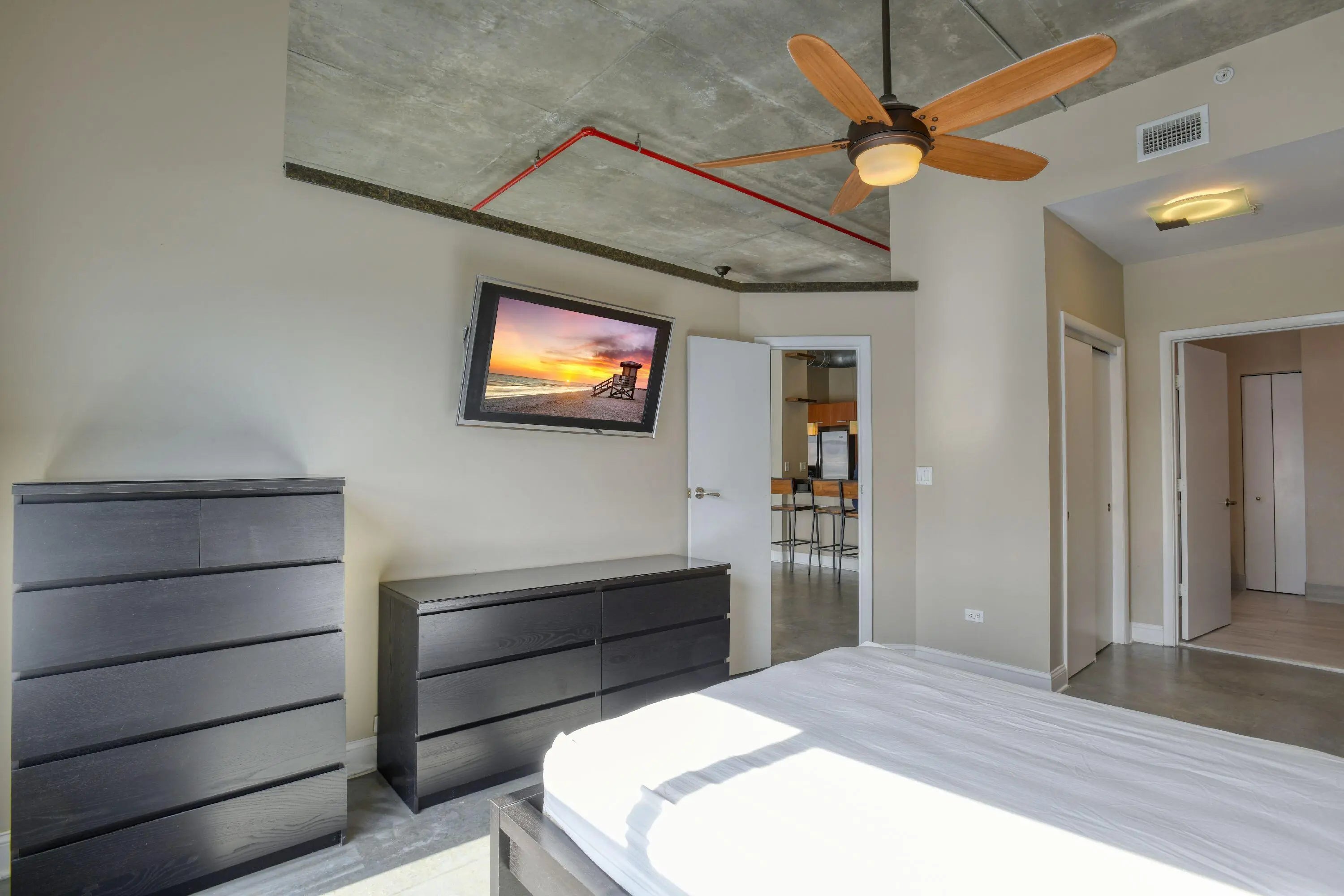 Corner "New York" LOFT style condo in newer building right in heart of downtown Fort Lauderdale. AMAZING DOWNTOWN VIEWS FROM ENTIRE CONDO. High ceilings and exposed duct work throughout, polished concrete floors. FLEXIBLE living area floor plan! STAINLESS STEEL appliances, ONE parking spot, gym, pool, hot tub, BBQ grill at pool, secured building. GREAT VIEW OF DOWNTOWN! MUST SEE !! WIFI, CABLE TV, WATER, SEWER & TRASH ALL INCLUDED IN RENT !!! LOCATION!! Blocks to East Las Olas Blvd~ Great restuarants, shopping, and entertainment! Close to the Brightline station and the beach! 10 mins to the FLL airport! Association approval required. Association doesn't allow pets for tenants.