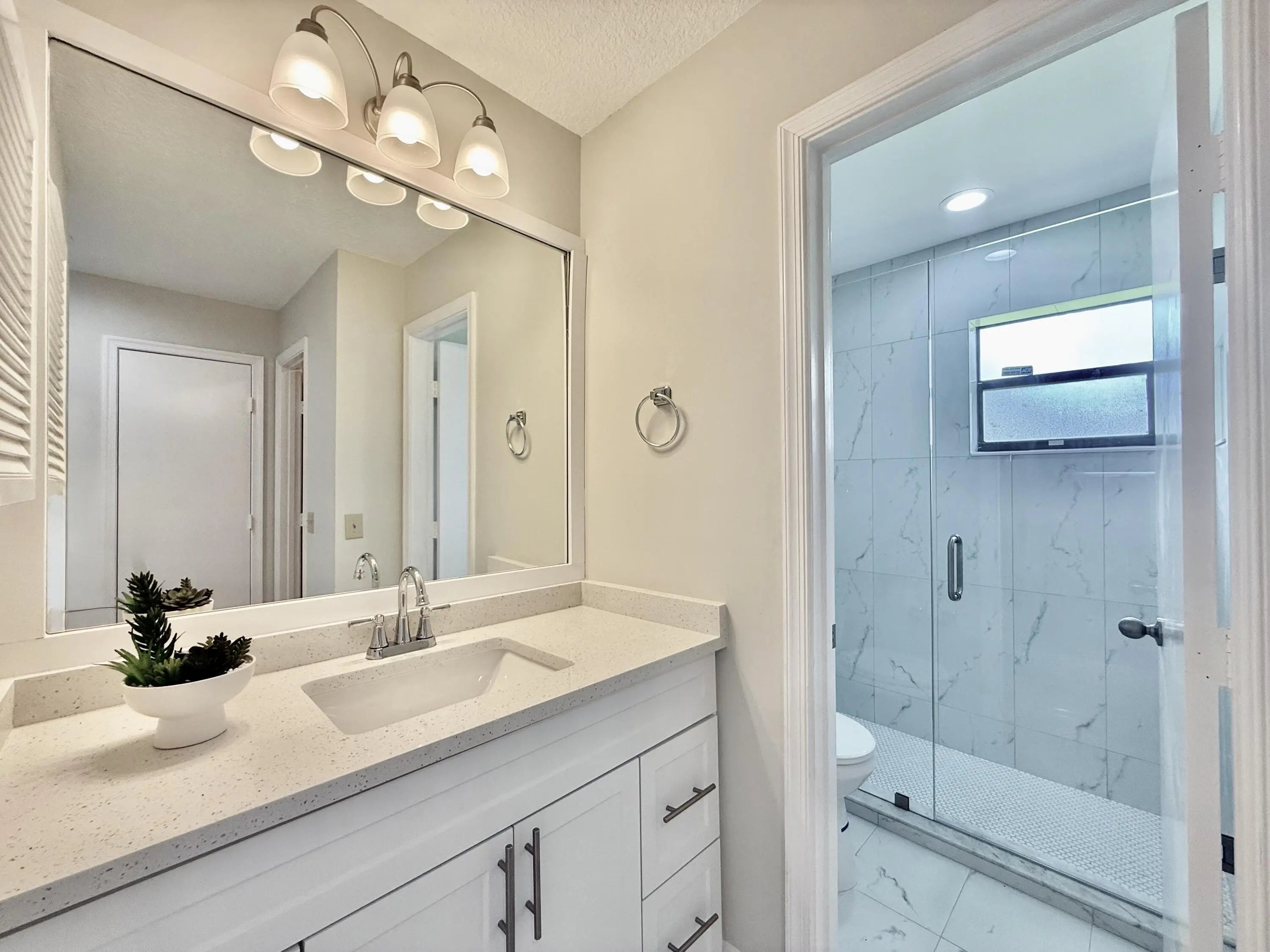 NEW ROOF BEING INSTALLED BY HOA — WELCOME HOME! Completely renovated 2-bedroom, 2-bath villa with a 1-car garage in the highly desirable 55+ community of Bent Tree Villas East! This move-in-ready home features a brand-new kitchen with 42" custom white shaker cabinetry, quartz countertops, matte porcelain tile backsplash, and stainless steel appliances. The bright and open living area offers tile flooring, while both bedrooms showcase beautiful new laminate floors. Enjoy fully renovated bathrooms, smooth ceilings (no popcorn!), and modern finishes throughout. The HOA dues include cable, water, lawn care, building insurance, and roof maintenance — plus a new roof is currently being installed for added peace of mind. Some photos are virtually staged. Property is not furnished.
