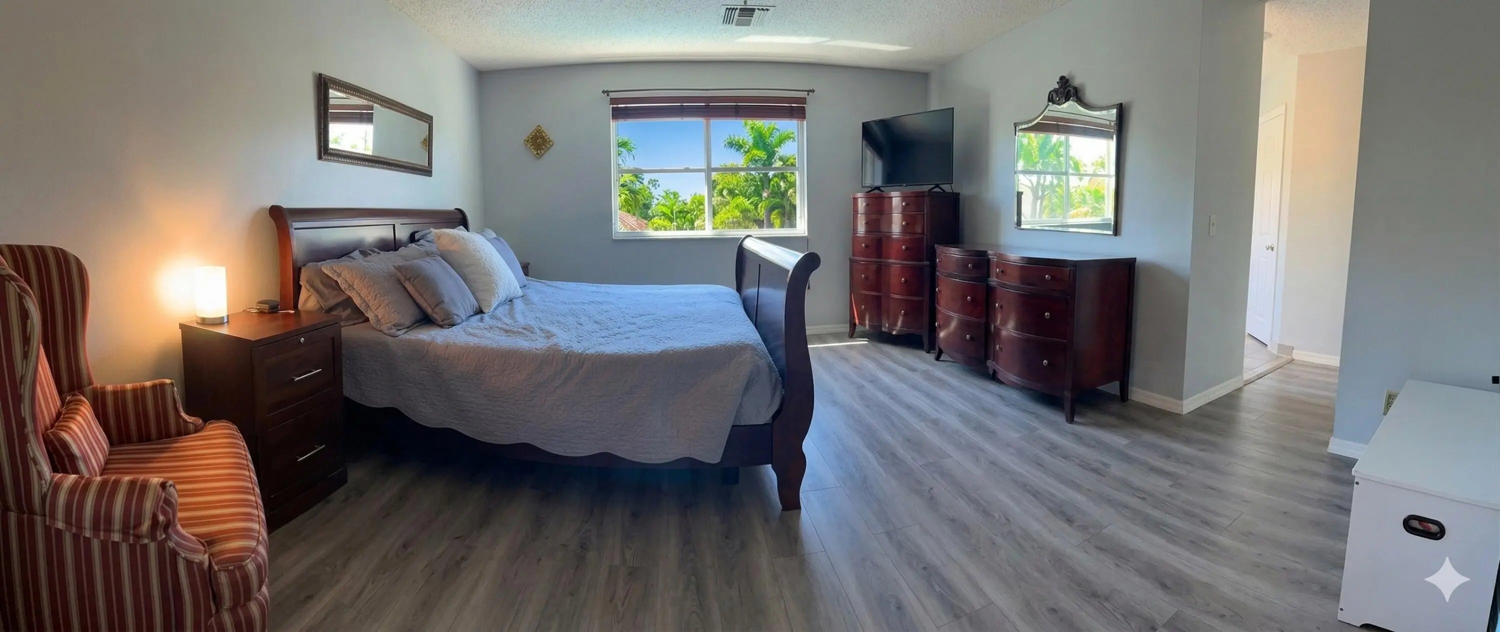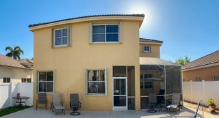 Beautifully maintained 4-bedroom pool home in gated Meadows of Weston! This inviting two-story residence offers an ideal flexible layout with bright living spaces, warm wood flooring, an open kitchen with snack bar, formal and casual dining areas, and a first-floor office/flex space. Upstairs features all bedrooms plus convenient upstairs laundry. The spacious primary suite includes a walk-in closet and updated en-suite bath with dual sinks, separate roman tub, and glass-enclosed shower. Step outside to a screened patio and private fenced pool area perfect for entertaining, relaxing, and enjoying the South Florida lifestyle. Well maintained -Excellent curb appeal, a short walk or bike ride to access the community amenities. Community amenities include heated pool, pickleball, basketball, large playground, fields, in a park setting, and walking trails. Located near top-rated Weston schools. Well maintained and move-in ready home, with features that support peace of mind. Plus, the 2023 tile roof, wind-mitigation certificate, may help keep insurance costs lower. HVAC mfg date is 2015.