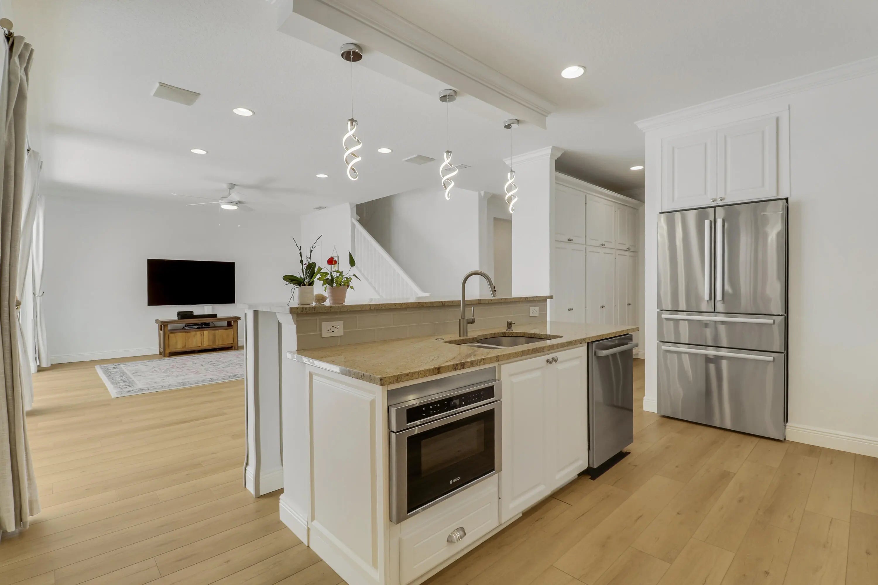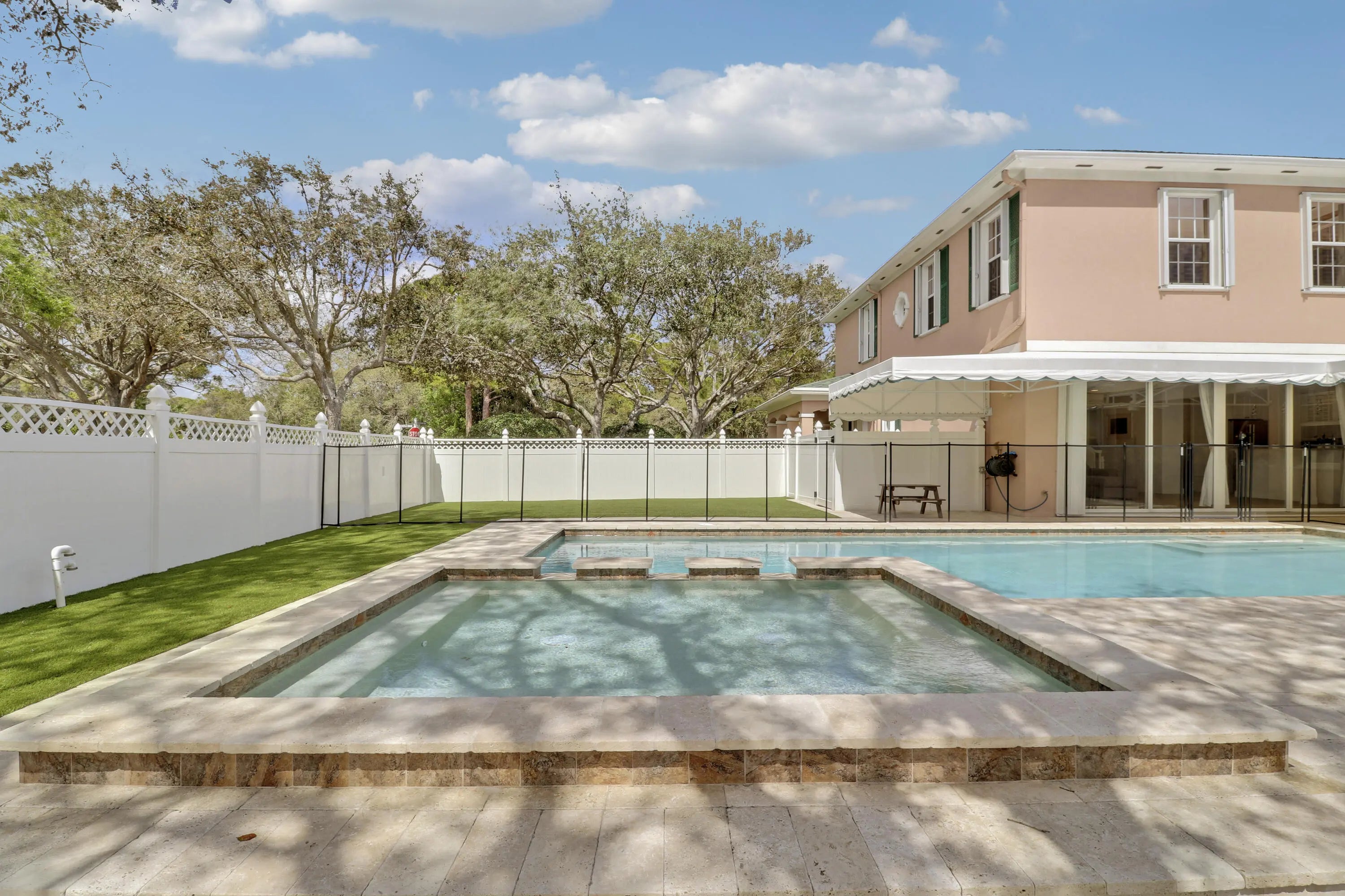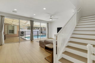 Beautifully updated and move-in-ready, this exceptional Cambridge Abacoa home sits on an oversized corner lot overlooking the Abacoa Greenway and offers a rare blend of location, functionality, and high-value improvements. The backyard is designed for resort-style living, anchored by a 36' x 15' rectangular pool up to 6' deep, a separate spa with waterfall, and extensively updated equipment including a new heat pump, saltwater system, filter, and pump. This home was built with concrete block (CBS) construction on both floors and has a 2023 architectural shingle roof. The Cambridge neighborhood features a clubhouse, pool, playground, and trails and fishing in the Abacoa greenway. Inside, the home has been thoughtfully upgraded throughout, with .... Bosch 800 Series kitchen appliances including an induction range and drawer microwave, luxury vinyl flooring, updated lighting and plumbing fixtures, new ceiling fans, whole-house interior paint, and smart dimmer and fan switches and Apple HomeKit-compatible locks for seamless keyless entry. A custom solid-wood Murphy bed in the first-floor den adds valuable flexibility, allowing the space to function as a guest room, office, or additional bedroom. Notable recent upgrades include: • 2023 architectural shingle roof • 2023-2025 new pool heat pump, saltwater system, filter, and pump • 2023-2025 Bosch 800 Series refrigerator, induction range, dishwasher, and drawer microwave • 2023 whole-house interior paint • 2023 new Samsung FlexWash washer and dryer • 2023 professional pool fence system • 2024 custom solid-wood Murphy bed in first-floor den • 2024 new garage door opener • 2024 Elfa storage system in under-stair closet • 2024-2025 new modern light fixtures throughout • 2024-2025 new ceiling fans inside and outside • 2023-2025 Leviton smart switches and Apple HomeKit-compatible door locks • 2025 updated plumbing fixtures • 2025 returfed backyard and resealed travertine pavers • 2025 new garage floor with polyaspartic coating • 2026 updated landscaping