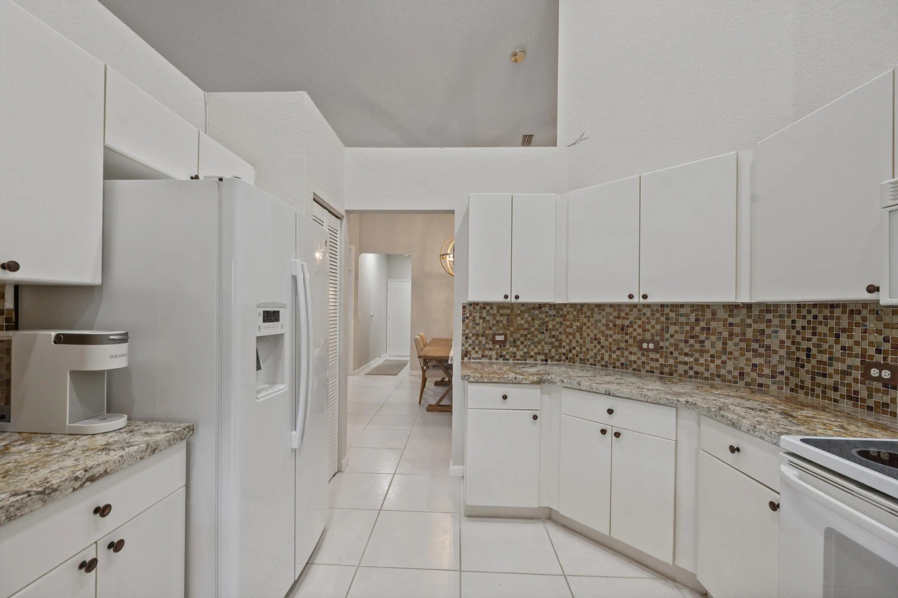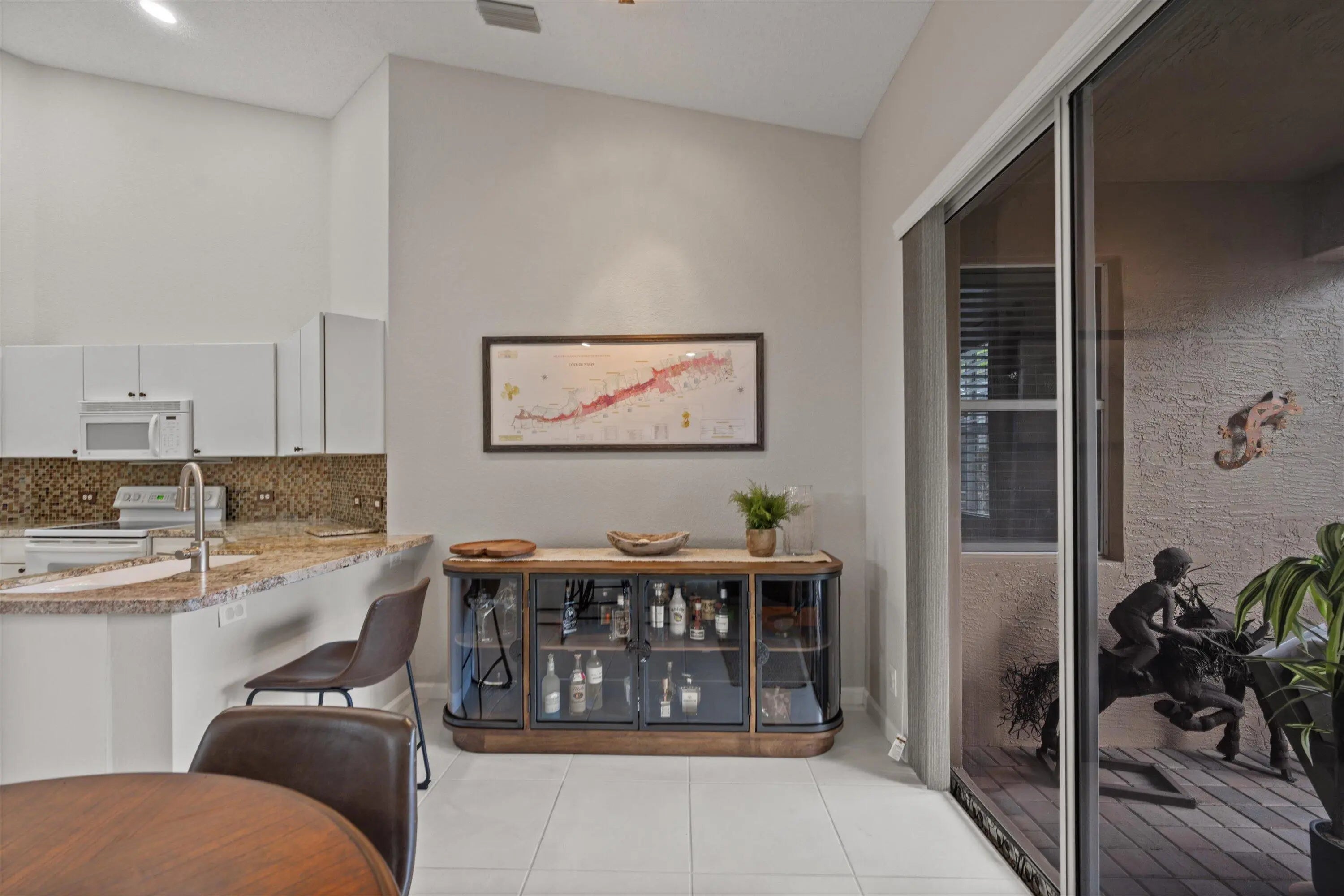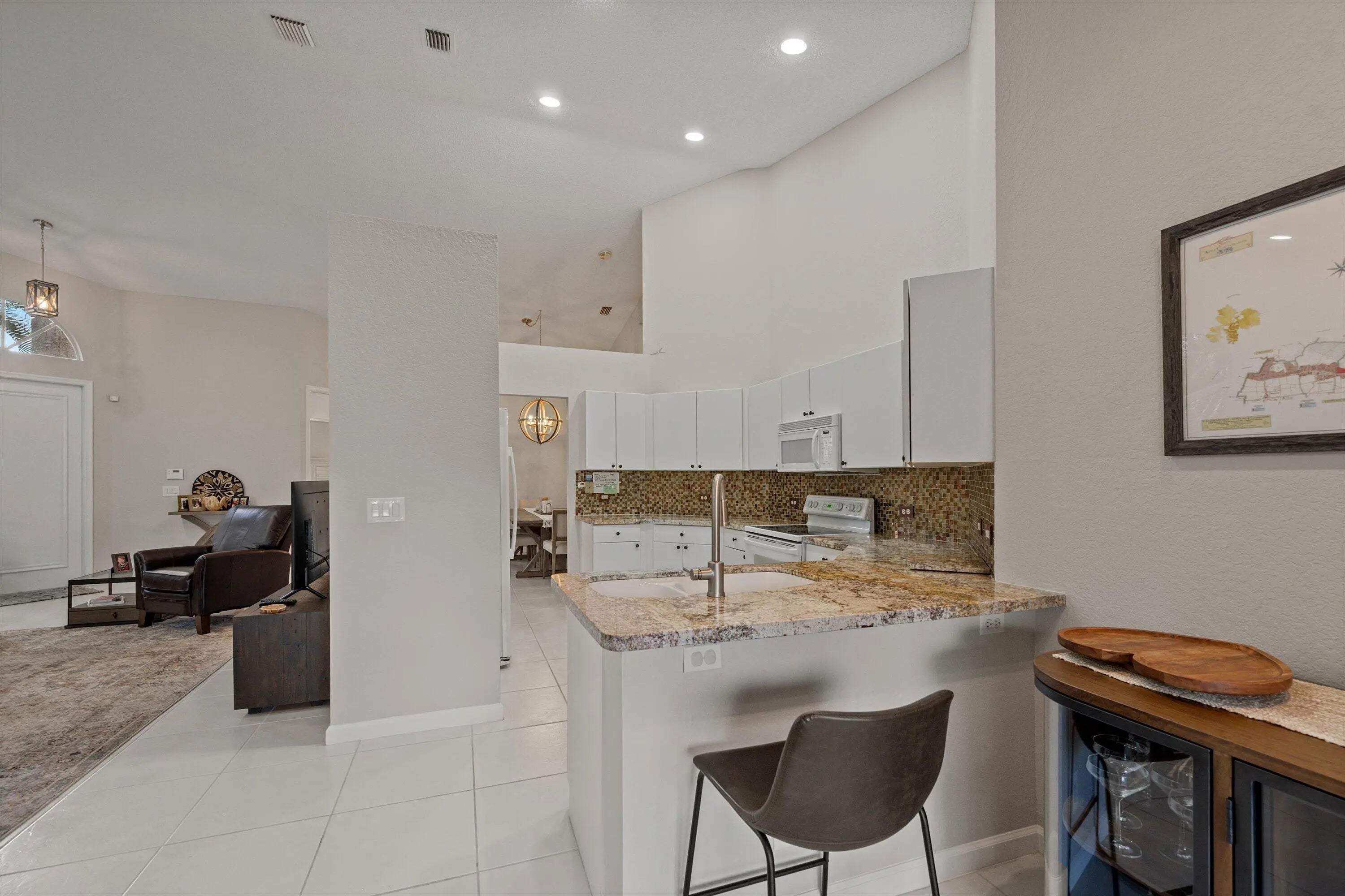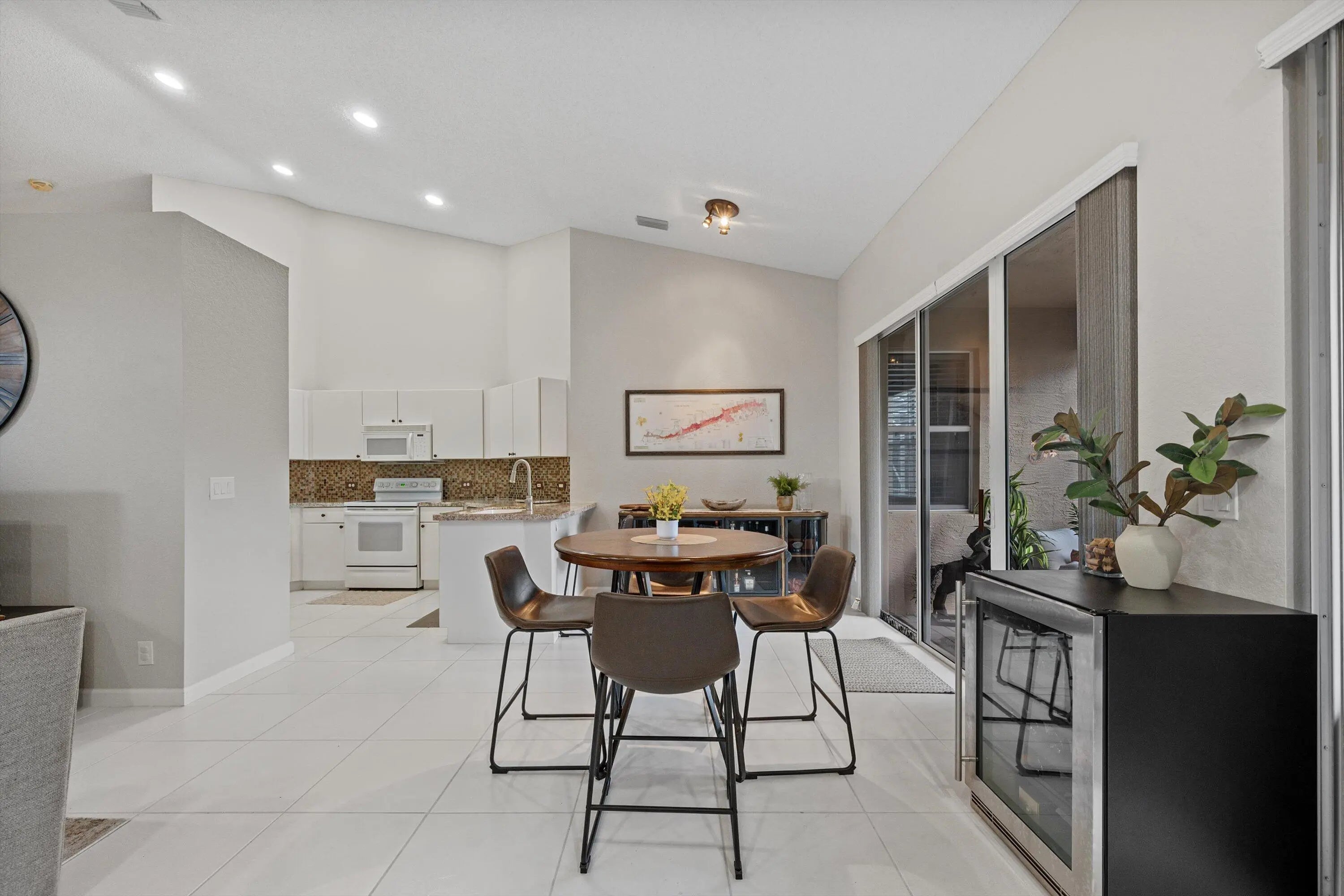 Situated in a beautiful golf & country club setting, this charming 3-bedroom, 2-bath home is located in the desirable Cambridge subdivision-just a short distance from the club and community pool. Step inside to discover an inviting layout highlighted by vaulted ceilings that enhance the home's open and airy feel. The spacious primary suite features a large wlk-in closet and nice size primary bath, offering a comfortble private retreat. The kitchen is generously sized with a nice eat-in area, perfect for casual dining. Enjoy indoor-outdoor living on the screened-in patio overlooking a peaceful, private yard-ideal for relaxing or entertaining. Wycliffe Golf & Country Club offers a vibrant private club lifestyle with access to two newly renovated championship golf courses, eight pickleball courts, 15 Har-Tru tennis courts, a state-of-the-art fitness center, and a full-service spa. Members enjoy multiple dining venues, year-round events, an Olympic-size swimming pool, personal training, and wellness classes, including yoga and water aerobics. With mandatory membership, residents also enjoy premium services like Comcast internet, cable with HBO and Showtime, and ADT security monitoring. Located near Wellington's equestrian centers and just minutes from Boca Raton, Palm Beach, and area airports Wycliffe is South Florida living at its finest.
