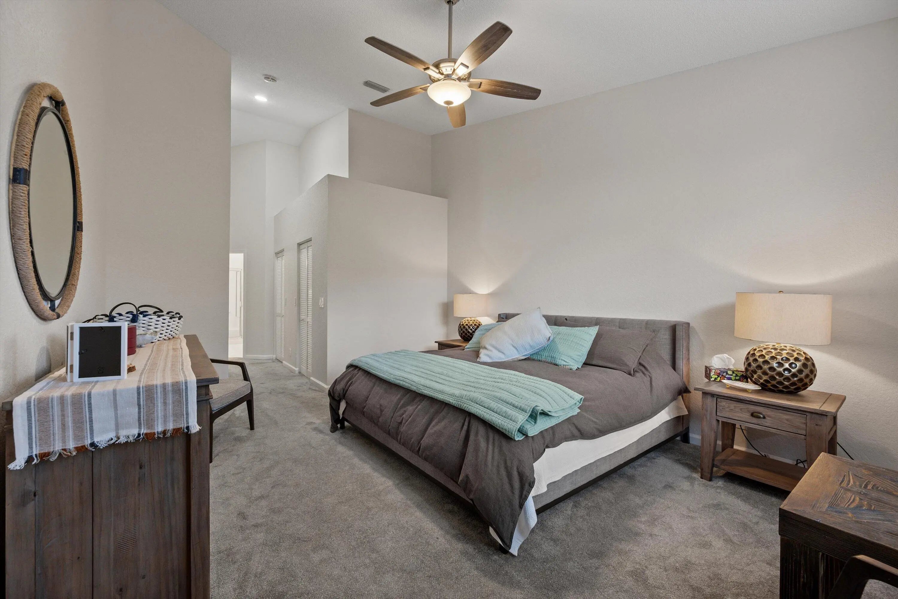 Cathedral Ceiling(s), Pantry, Vaulted Ceiling(s), Walk-In Closet(s), Bedroom Layout - Split, Roman Tub
