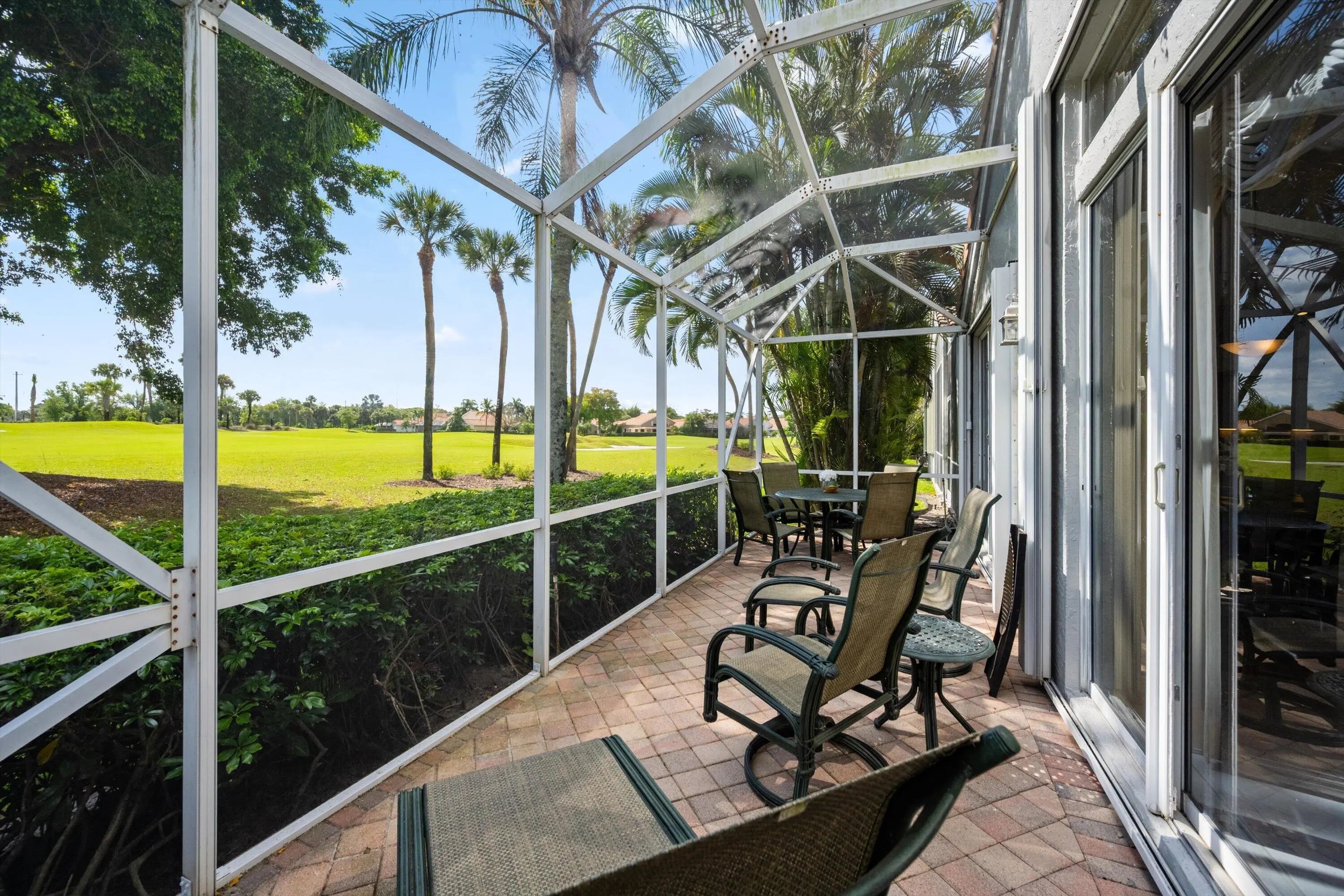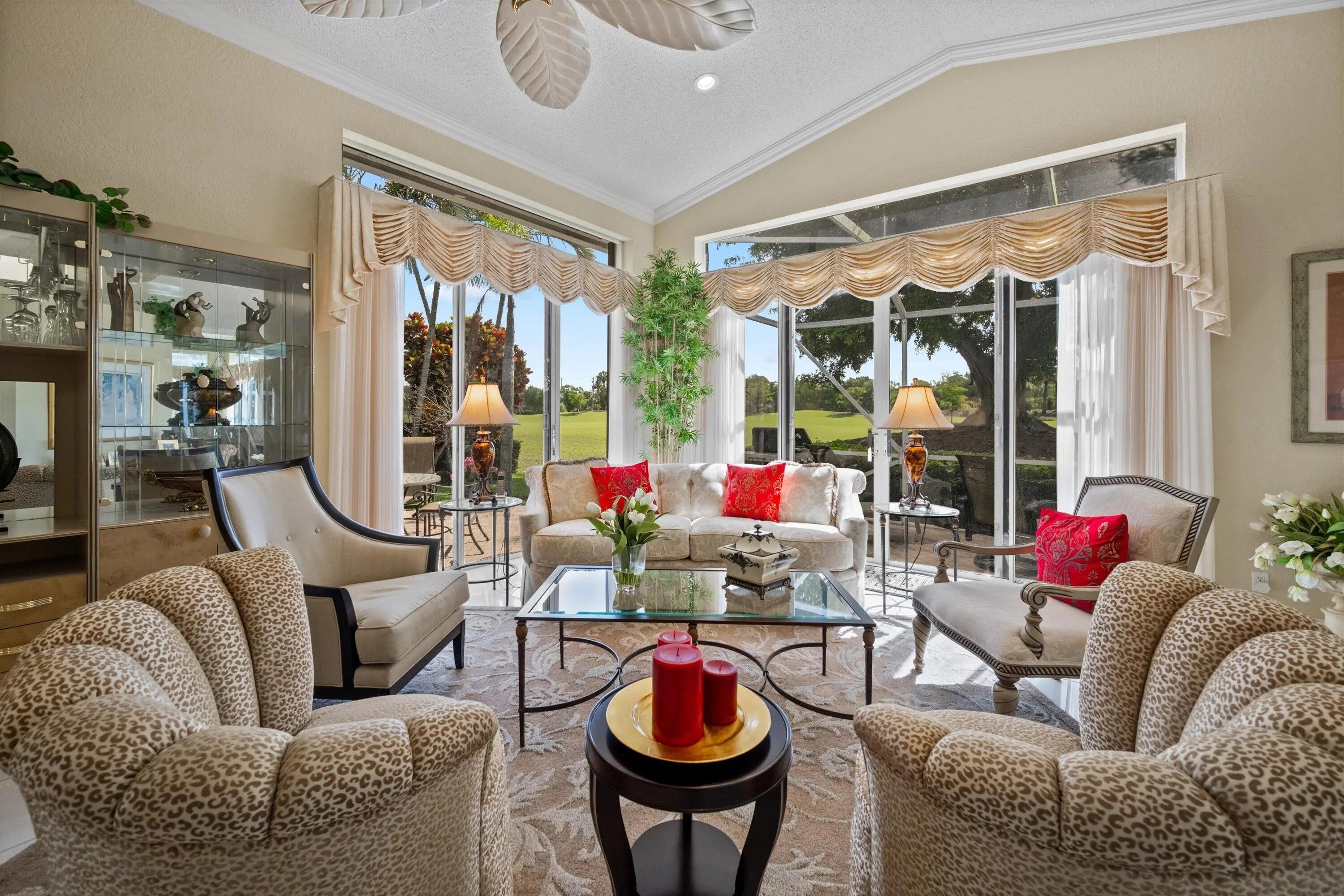 Beautiful golf course views in a sought-after country club community. This 2-bedroom 2-bath residence with a versatile den are offers a spacious and open floor plan, perfect for comfortable living and entertaining. The large screened-in patio showcases stunning golf views, with additional side patio space for even more outdoor enjoyment. sliding glass doors provide seamless indoor-outdoor living. The kitchen is large and nicely done with plenty of cabinet space .The primary suite features two walk-in closets and a nice sized bathroom. Ideally located within walking distance to the clubhouse, this home combines convenience, scenery, and a relaxed lifestyle. Wycliffe Golf & Country Club offers a vibrant private club lifestyle with access to two newly renovated championship golf courses, eight pickleball courts, 15 Har-Tru tennis courts, a state-of-the-art fitness center, and a full-service spa. Members enjoy multiple dining venues, year-round events, an Olympic-size swimming pool, personal training, and wellness classes, including yoga and water aerobics. With mandatory membership, residents also enjoy premium services like Comcast internet, cable with HBO and Showtime, and ADT security monitoring. Located near Wellington's equestrian centers and just minutes from Boca Raton, Palm Beach, and area airports Wycliffe is South Florida living at its finest.