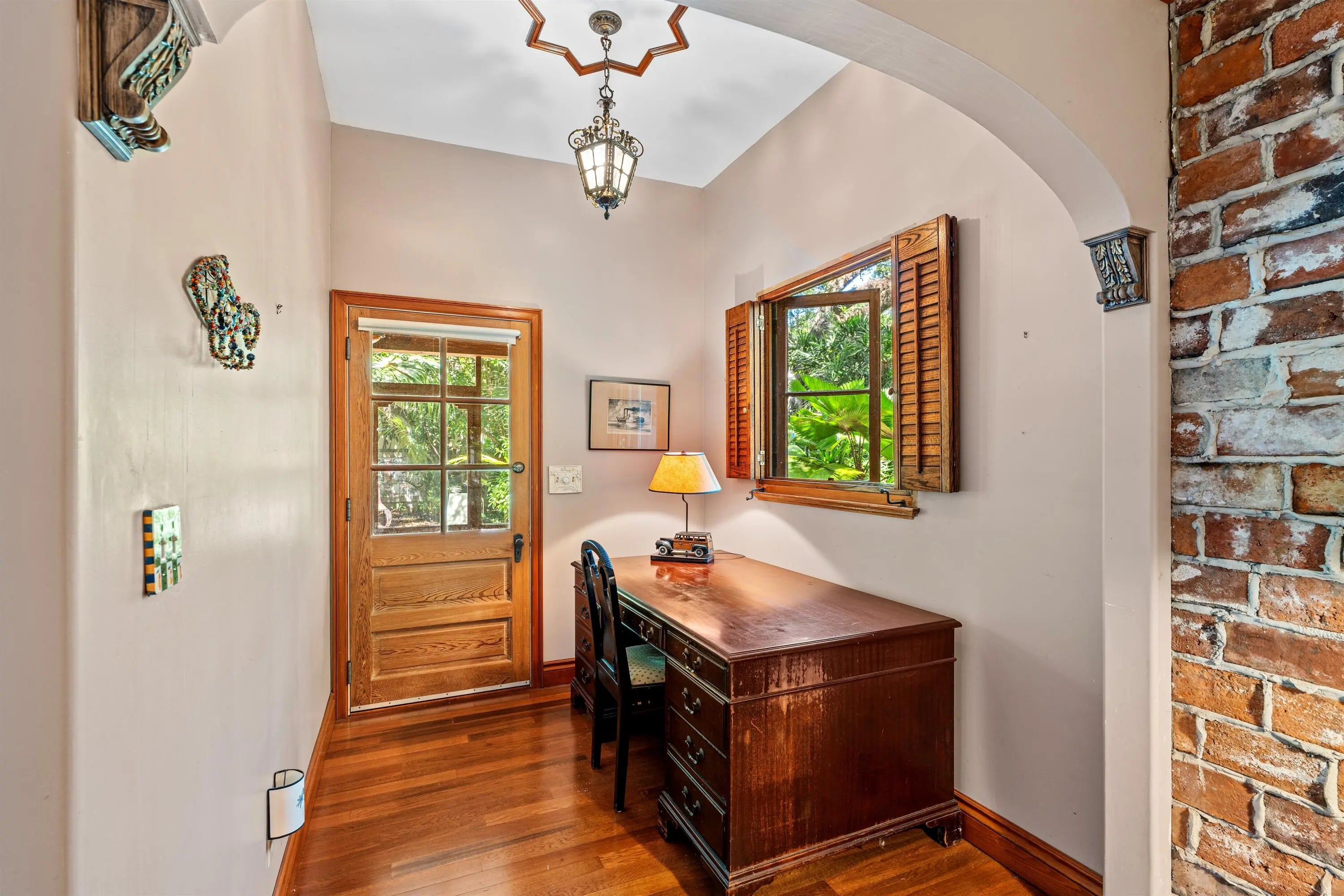 Discover your very own enchanted residence and guest cottage hideaway, secluded in Boca Raton's legendary Old Floresta neighborhood, where history whispers through the banyan trees and every path feels like a secret garden exploration. One of only 29 Addison Mizner-designed Old Floresta homes, circa 1926, the current owners have stewarded this heritage residence and quaint guest cottage since 1975, respecting and preserving the original architectural components that include Dade County pine floors and pecky cypress ceilings, columns and casement windows. The original wood-burning fireplace highlights the residence's living room, and even the original 1926 bathroom fixtures have been preserved. Period-sensitive details also include wide curved entryways, French doors, plantation shutters and handsome built-in cabinetry. Mexican Saltillo tile floors with accent insets adorn the patio and porch, which is complemented by decorative copper gutters. While preserving and maintaining the vintage charm, the two-bedroom, two-bath residence, spanning 2,078± square feet, stands today curated, updated, improved and expanded for modern living. The extensively remodeled kitchen is finished with custom hardwood cabinets, granite countertops, high-end appliances that include an LP/gas range, and a walk-in pantry extension. The primary suite, an aesthetically pleasing well-conceived addition, is complete with a spa-like bathroom with double sinks and a spacious walk-in shower with a built-in bench. The suite also comprises a walk-in cedar closet, an office/alcove and French doors that open to the pecky-cypress screened porch, an ideal retreat to observe the natural setting. Whether greeting the morning or unwinding at day's end, the changing light highlights the multitude of textures and diverse vegetation. Just adjacent, the open deck is enhanced by an orchid garden and features a 'ships ladder' that gives easy access to the flat roof. A detached structure nestled toward the back of the property comprises a two-car garage with space for a third car, a shop/studio area, while the picturesque one-bedroom, one-bath guest cottage, which is imbued with timeless, storybook charm. Other amenities include storm shutters and a laundry room with a washer/dryer and utility sink. The first time on the market in 51 years, this historic oasis is now available for purchase. DISCLAIMER: Information published or otherwise provided by the listing company and its representatives including but not limited to prices, measurements, square footages, lot sizes, calculations, statistics, and videos are deemed reliable but are not guaranteed and are subject to errors, omissions or changes without notice. All such information should be independently verified by any prospective purchaser or seller. Parties should perform their own due diligence to verify such information prior to a sale or listing. Listing company expressly disclaims any warranty or representation regarding such information. Prices published are either list price, sold price, and/or last asking price. The listing company participates in the Multiple Listing Service and IDX. The properties published as listed and sold are not necessarily exclusive to listing company and may be listed or have sold with other members of the Multiple Listing Service. Transactions where listing company represented both buyers and sellers are calculated as two sales. "No payments made until title passes" Some affiliations may not be applicable to certain geographic areas. If your property is currently listed with another broker, please disregard any solicitation for services. Information published or otherwise provided by seller, listing company or its representatives is deemed reliable but are not guaranteed and subject to errors, omissions, or changes without notice. Copyright 2026 by the listing company. All Rights Reserved.