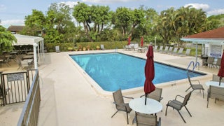 Welcome to beautifully maintained top floor Unit 607 in the enclave of Poinciana. This unit offers natural light, privacy, and an expansive birds-eye view of the 18th fairway and pond with fountain aerator. With an eastern view, you can enjoy the morning sun on your screened in patio that adds to your living area. The master bedroom offers two closets and ensuite bath. Enjoy the tranquil resort style pool complete with wi-fi service and clubhouse just down the short path with restaurant, entertainment, additional pool, golf, tennis, and pickleball. All of this and the convenience of minutes to shopping, turnpike, PBI, golf and local beaches. Condo fee includes hotwire TV, wi-fi, water, sewer, and pest control. New HW heater. Outstanding value in Palm Beach County!