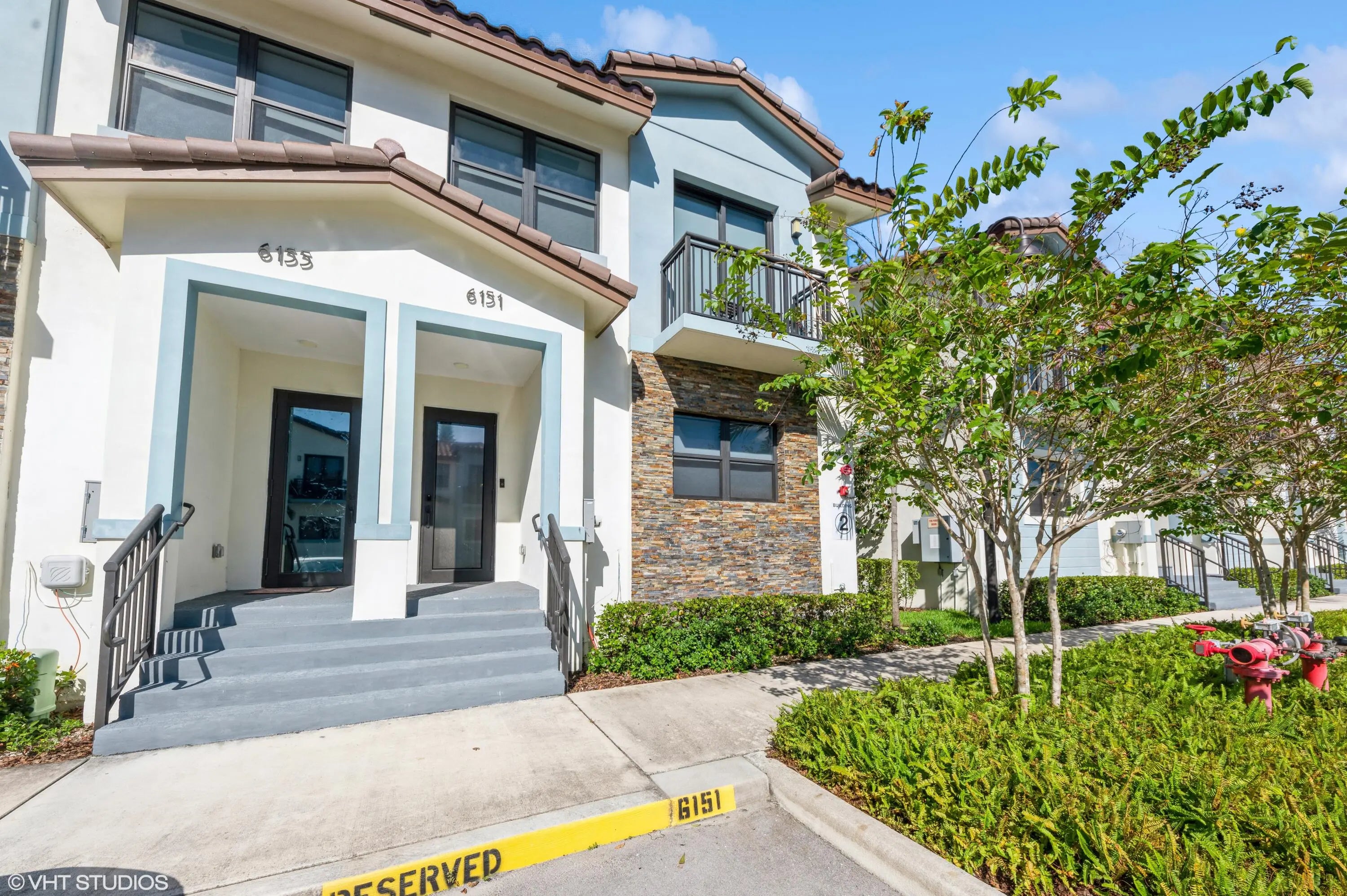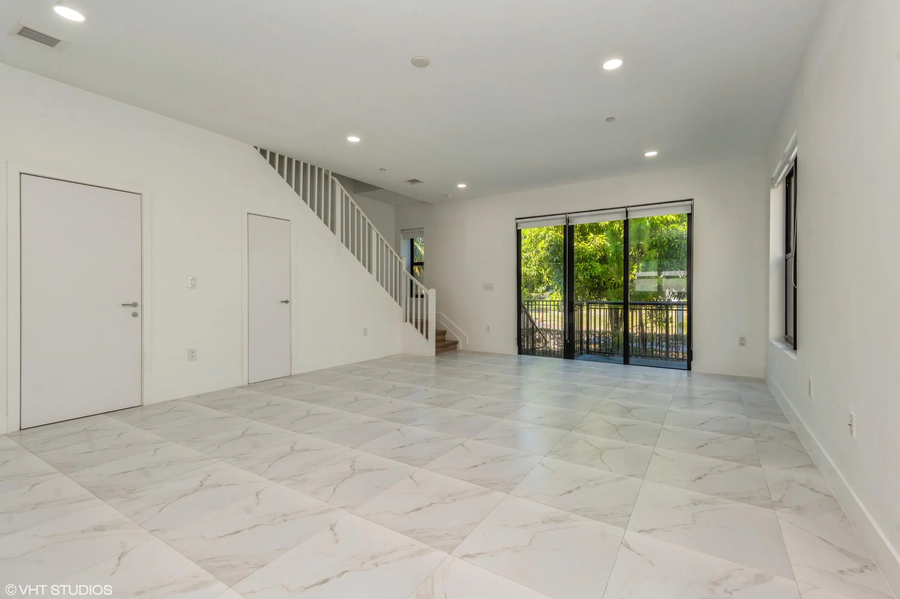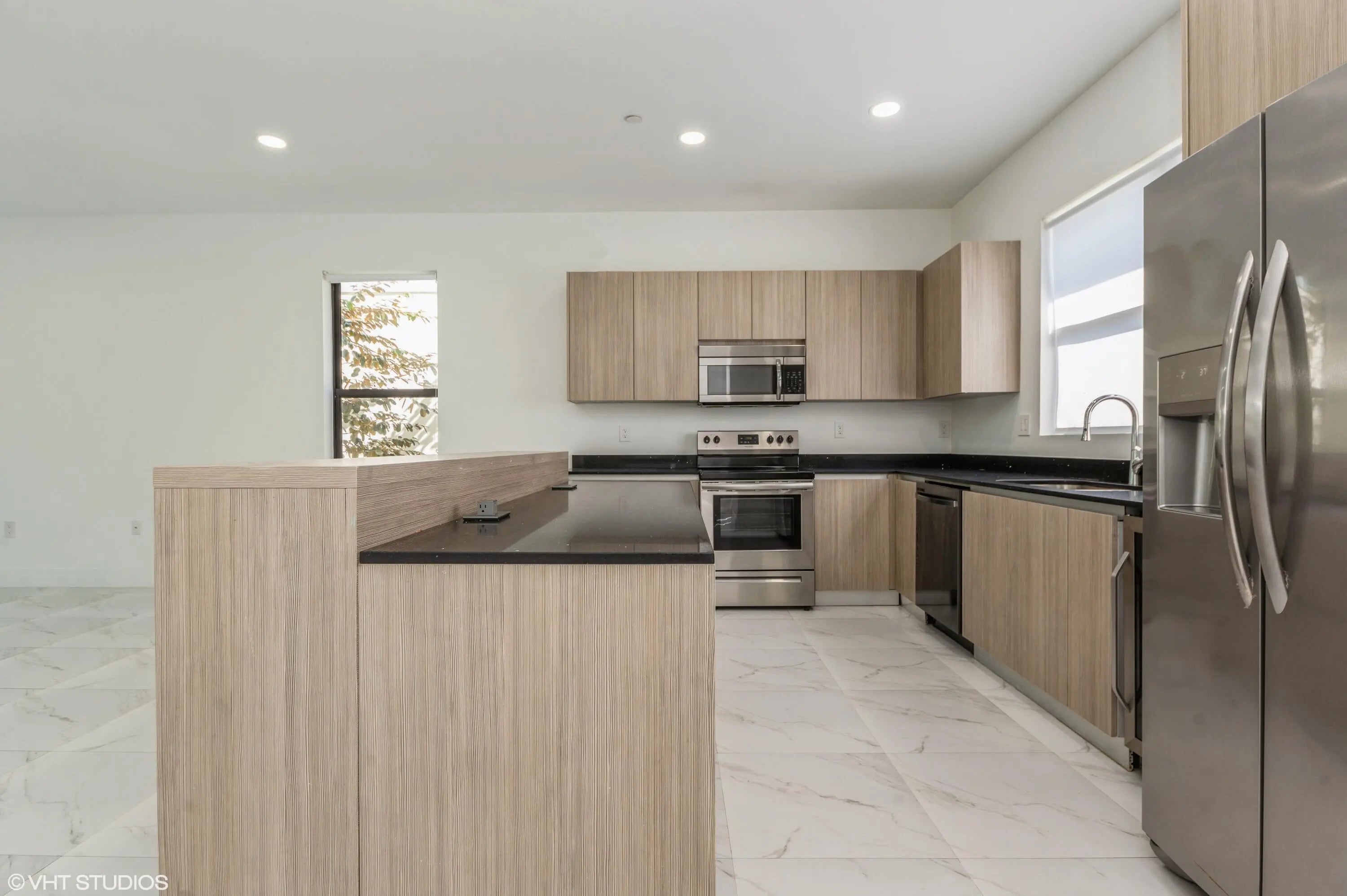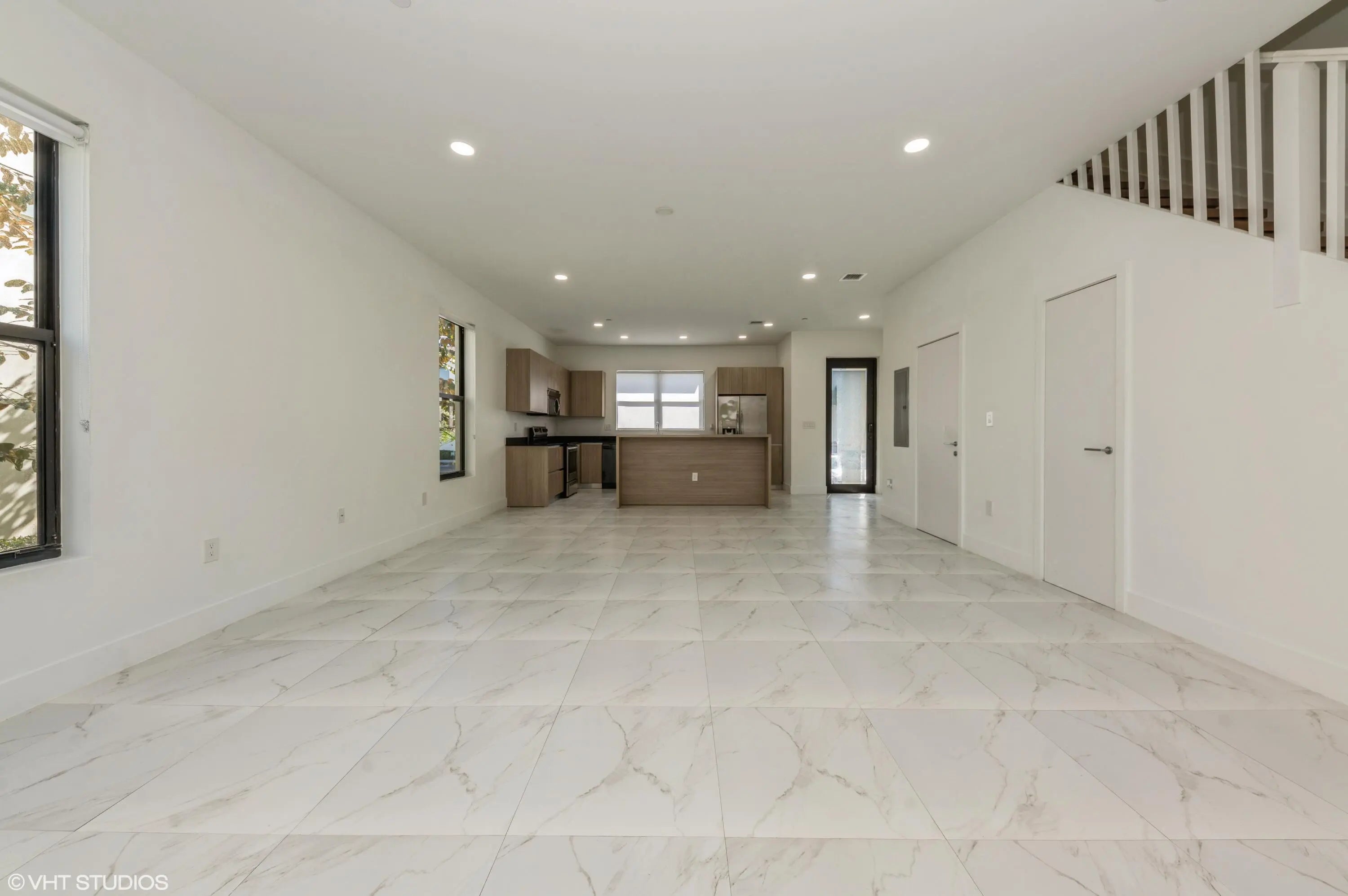 Elegantly designed modern townhome featuring 3 bedrooms and 2.5 bathrooms. Boasting impressive 10ft ceilings adorned with sleek LED flush lights. Chic finishes, including waterfall chrome faucets, tile flooring on the 1st level, & sophisticated wood laminate on the 2nd floor. The kitchen showcases stainless steel appliances, a convenient wine cooler, & quartz countertops. Enjoy the contemporary touch of laminated doors with magnetic closers, coupled with the security of impact doors and windows throughout.