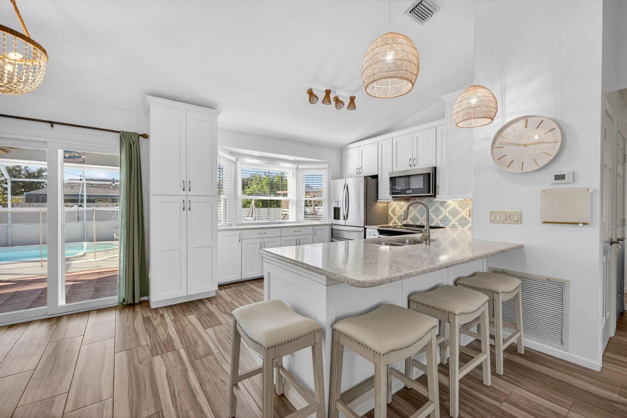 Welcome to paradise in this beautiful 3 bed 2 bath 2 car garage pool home loaded with upgrades. Luxurious finishings with vaulted ceilings and tile flooring. A swoon worthy kitchen with quartz countertops, newer appliances and soft close cabinetries. Big primary bedroom with a pool view, screened poolside lanai. A fully fenced large backyard ensures privacy and great for pets. Have peace of mind in a fortified home with hurricane impact windows. This home is available as an unfurnished rental or it can purchased. Located in a prime location only 3 miles to downtown, 4 miles to the beach and only 1 mile to botanical gardens. Minutes to fine dining, retail & boutique shopping. The Indian River Mall is nearby or venture to the Vero Beach Outlets, easy access to I95 and regional airport.