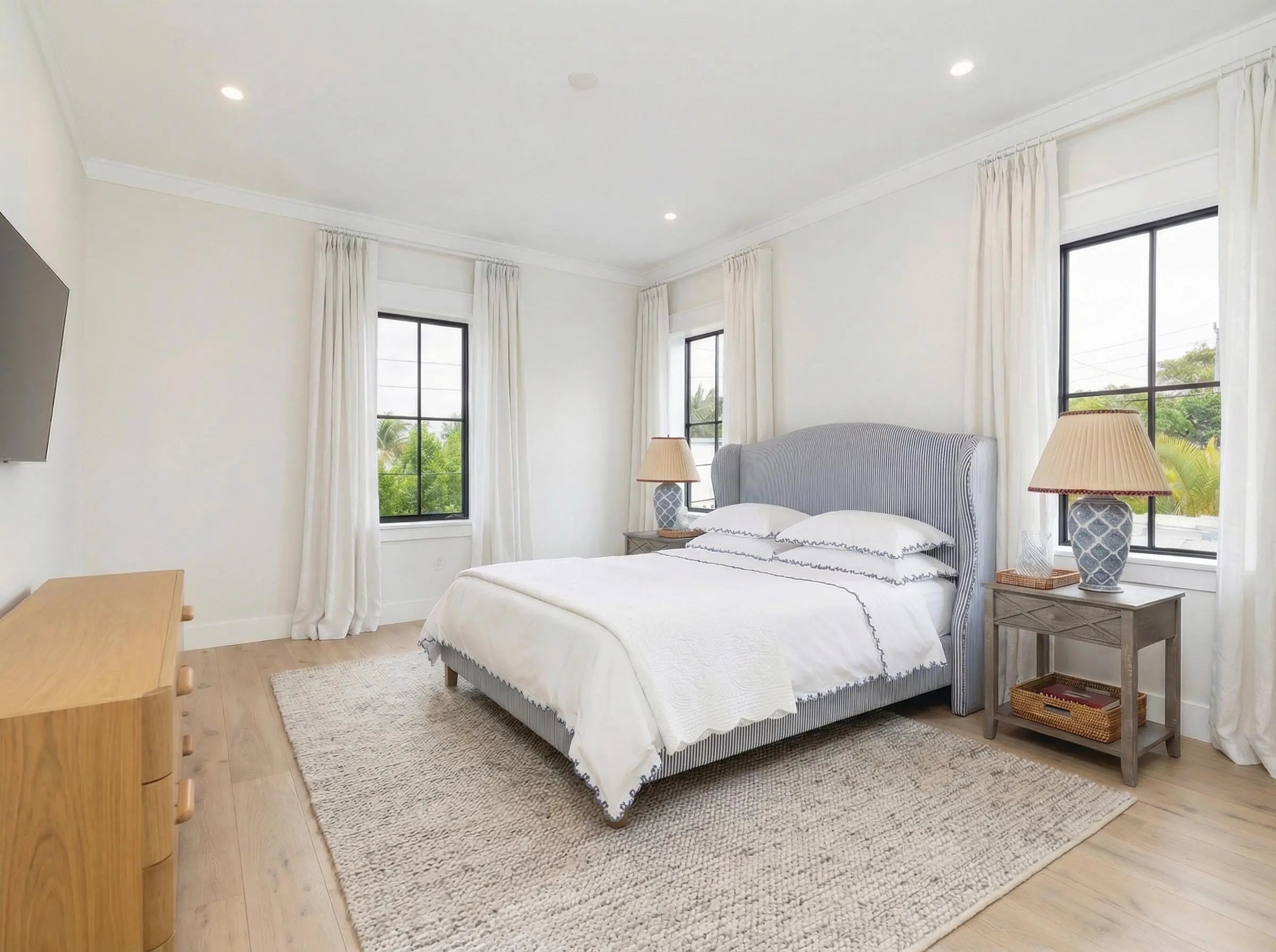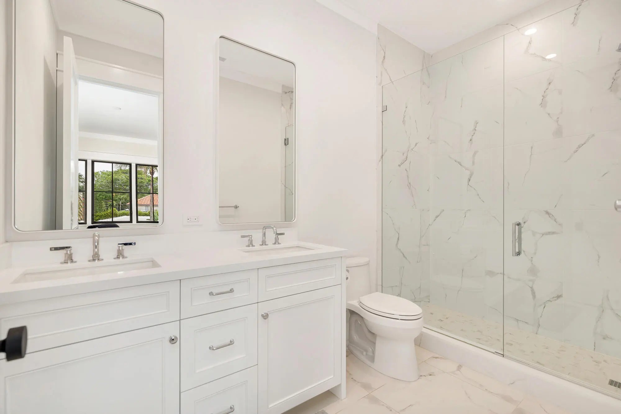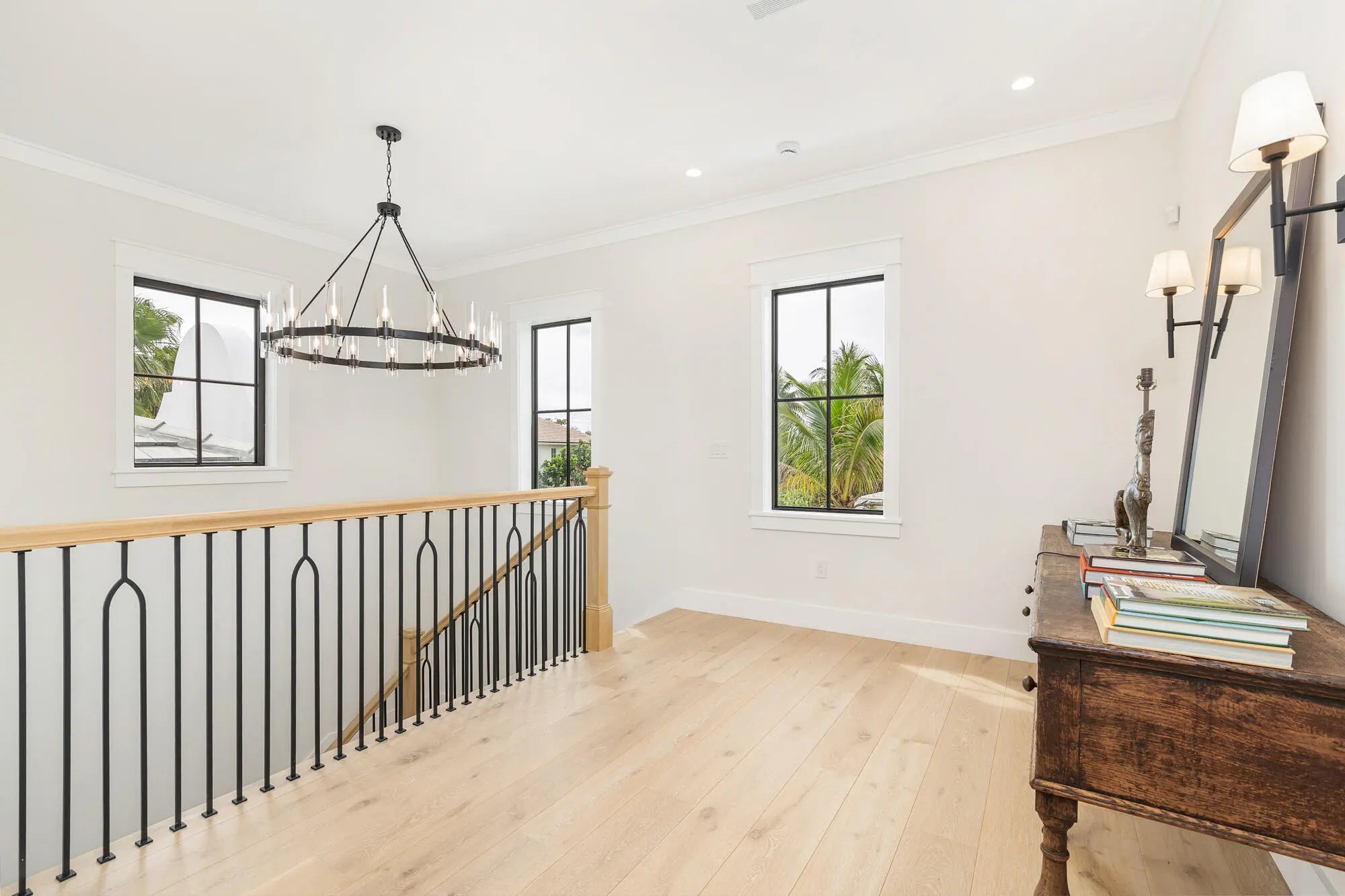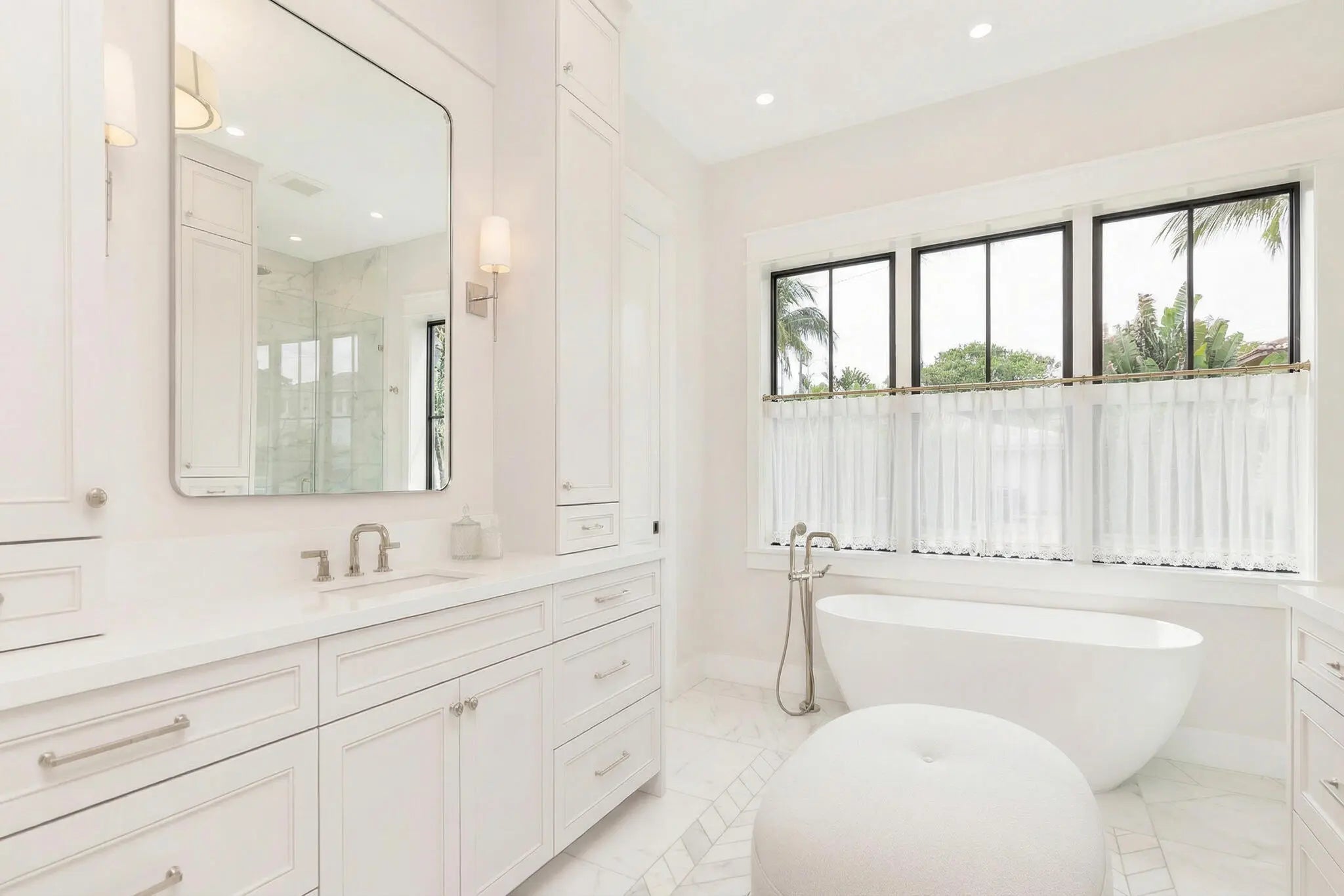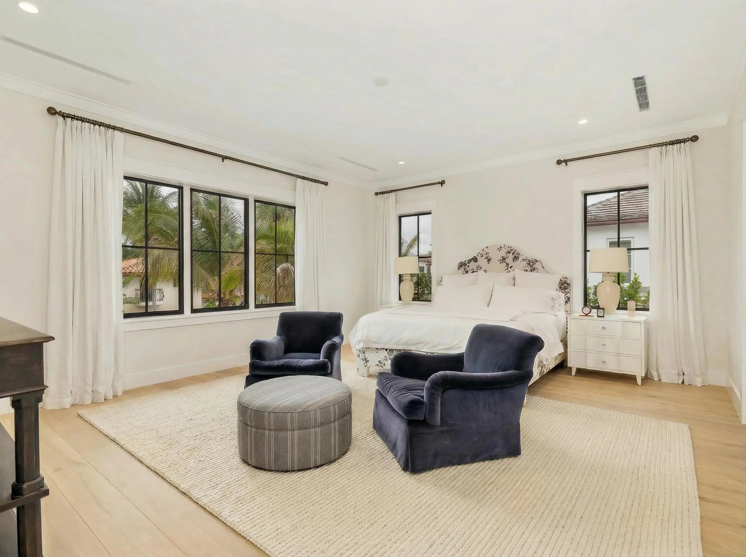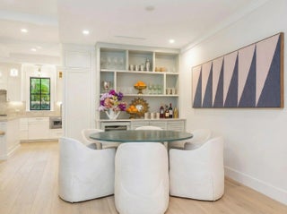 A stunning Dutch West Indies-inspired residence, thoughtfully designed and built to exceptional structural standards, showcasing exquisite custom details throughout. Created with both elegance and entertaining in mind, the open-concept floor plan features soaring ceilings, expansive living spaces, wide-plank oak flooring, and a gracious sense of scale. Ideally located just one block from the Intracoastal Waterway, this 4,443-square-foot home offers a luxurious first-floor primary suite complete with a marble-clad bath and two fully customized, boutique-style closets. Upstairs, three generously proportioned guest suites each with en-suite baths, are complemented by a versatile office or family room. The chef's kitchen is beautifully appointed with a Thermador six-burner gas range and premium appliances, Taj Mahal quartzite countertops, custom cabinetry, and a wine refrigerator—perfect for both everyday living and entertaining. Additional highlights include a two-car garage with ceiling height suitable for a lift, a resort-style pool with fountains and gas heater, full-house generator, hurricane-impact windows and doors, integrated Sonos sound system, and prewiring for cable and security. Every closet has been thoughtfully custom designed and installed. Perfectly situated near pristine beaches, acclaimed restaurants, Worth Avenue, scenic bike trails, and world-class golf courses, this exceptional home offers the best of luxury coastal living.