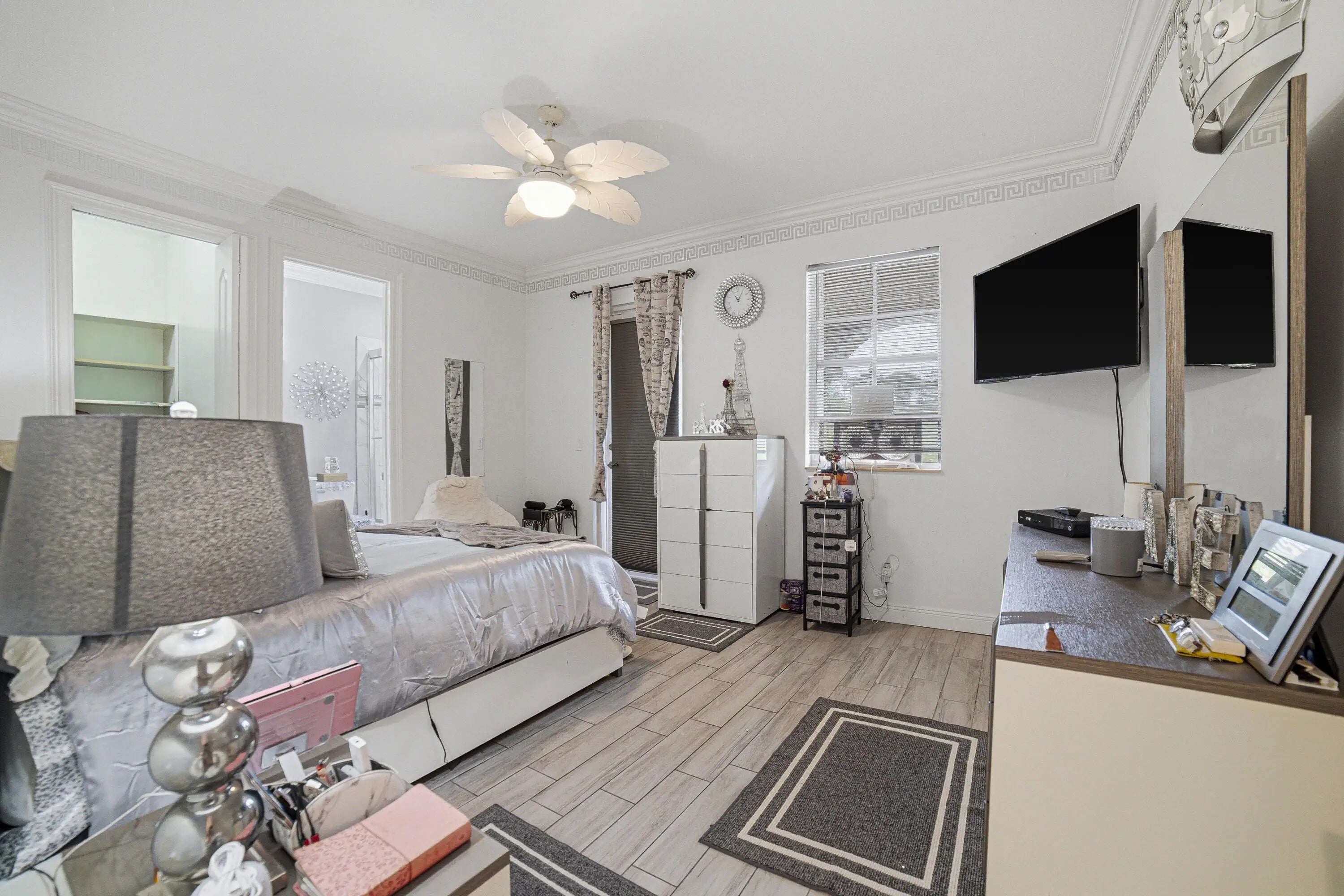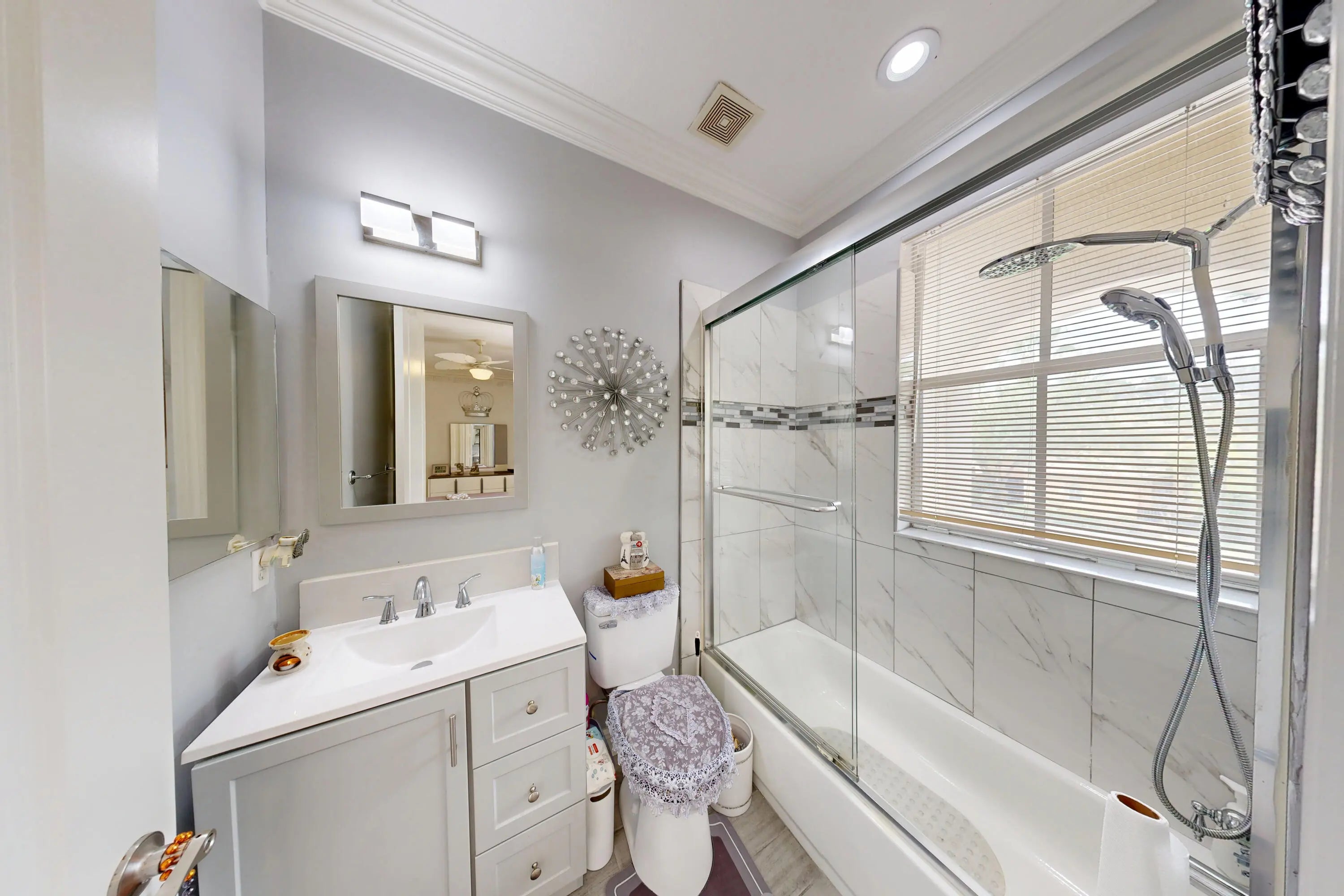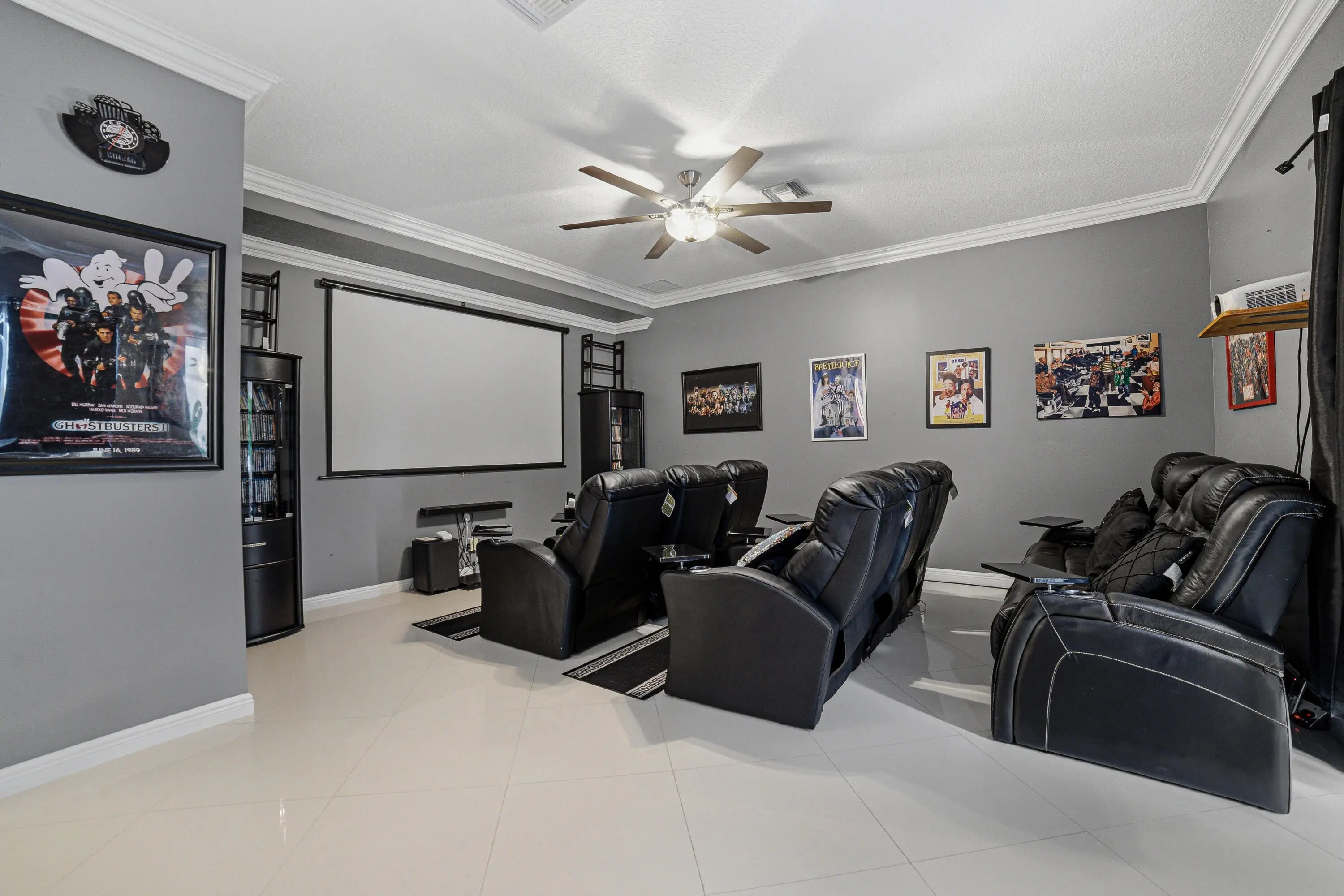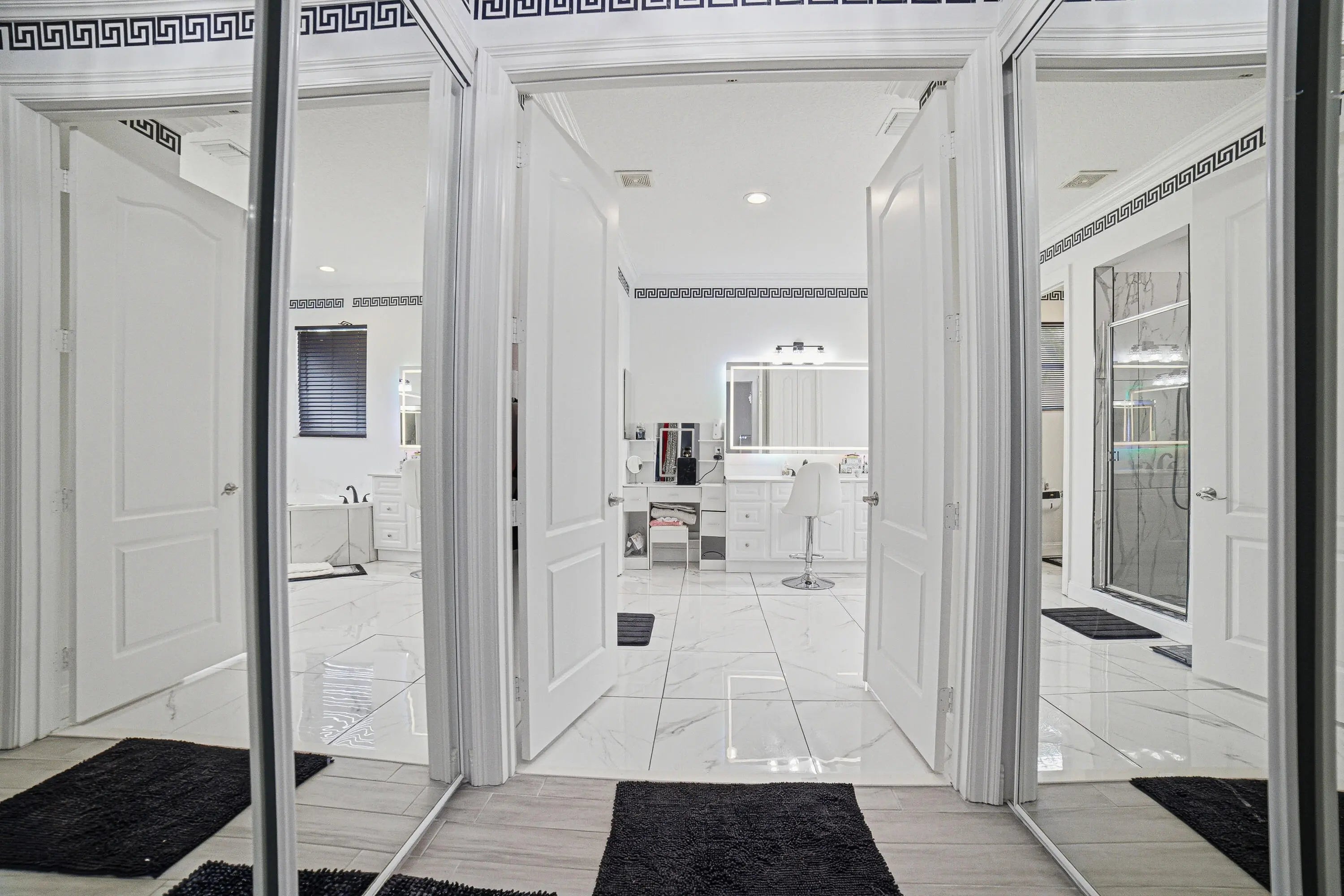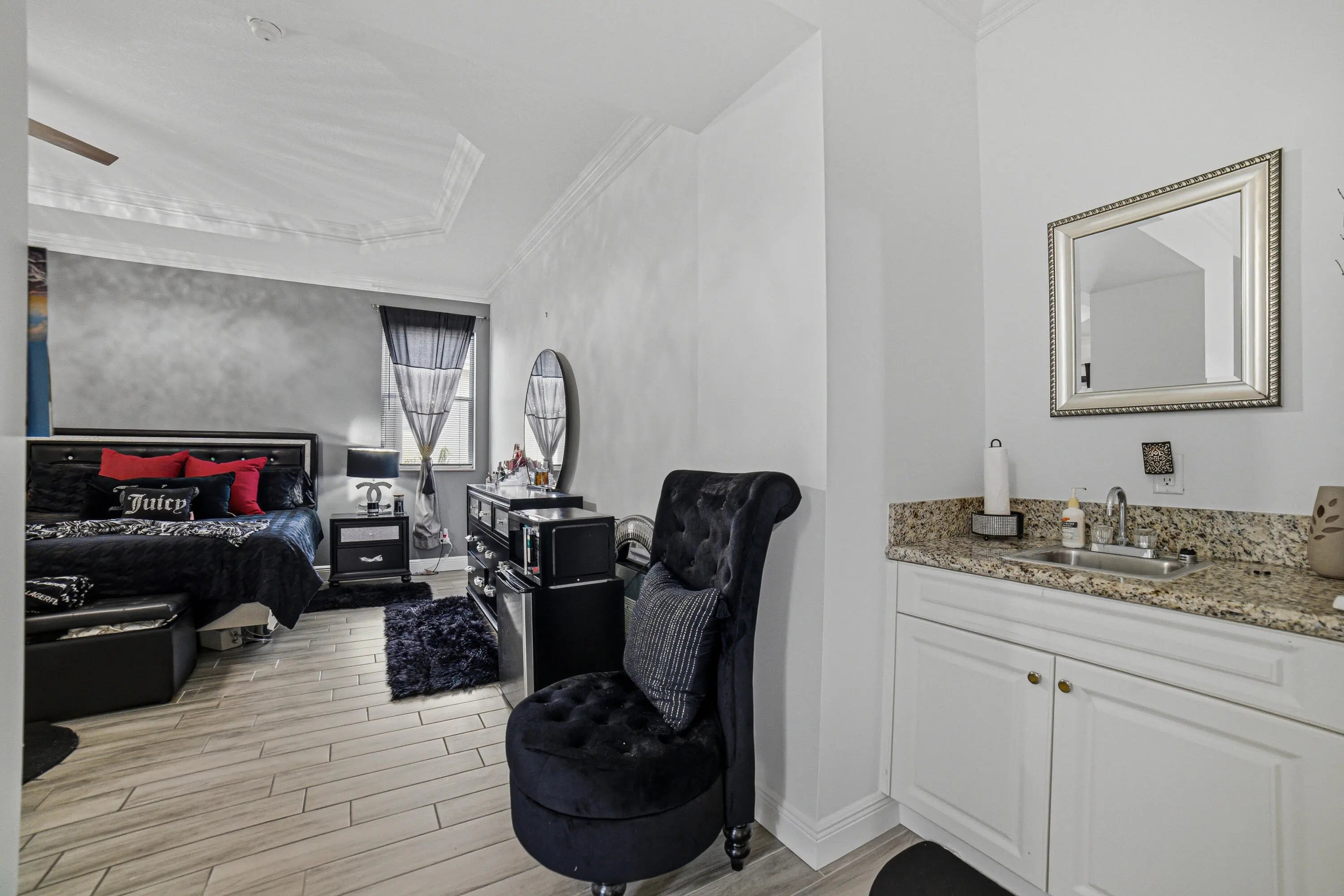 Welcome to Worthington Estates, an exclusive gated enclave of just 81 residences, ideally situated off West Okeechobee Boulevard in the heart of West Palm Beach. This private and picturesque community offers a rare blend of tranquility and convenience. This exceptional estate boasts approximately 4,500 square feet under air and makes a striking first impression with a grand, designer-inspired entry featuring a sweeping custom staircase and dazzling crystal chandeliers. Thoughtfully designed for both refined entertaining and comfortable everyday living, this five-bedroom, four-and-a-half-bath residence offers an expansive and versatile layout. The main level showcases a luxurious primary suite, along with an additional oversized bedroom perfect for a home office, guest suite, or playroom. Formal living and dining spaces are complemented by soaring ceilings, while the open-concept kitchen seamlessly flows into the family room, creating an ideal gathering space. A substantial bonus room—perfect as a private media lounge or game room—features its own half bath. Elegant crown molding throughout enhances the home's sophisticated aesthetic. Upstairs, a bright and spacious loft provides additional living space, accompanied by new plank-style tile flooring throughout. The second level offers a well-appointed primary suite at the front of the home with a private balcony, two centrally located guest bedrooms, and an extraordinary owner's retreat at the rear. This expansive suite features a separate sitting area or office, dual walk-in closets, a spa-caliber marble bathroom, and a private balcony overlooking the serene backyard. Outdoors, discover your own resort-style retreat. A sparkling in-ground pool, expansive covered patio, and lush tropical landscaping create an idyllic setting for both relaxation and upscale entertaining year-round. A rare offering within a boutique community, this residence embodies the essence of luxury South Florida living. Private showings available by appointment.