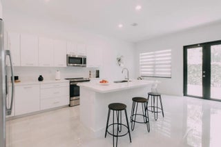 Modern single-story home with 2,274 sq ft of air-conditioned living space (2,812 total) and open layout filled with natural light. Designer kitchen with Calacatta quartz countertops, stainless steel appliances, and large island. Porcelain tile throughout. Full impact windows and doors plus whole-house surge protector. Primary suite with custom closets and private ensuite bedroom with separate exterior access—ideal for guests or multi-generational living. Located in gated community with pool and clubhouse.
