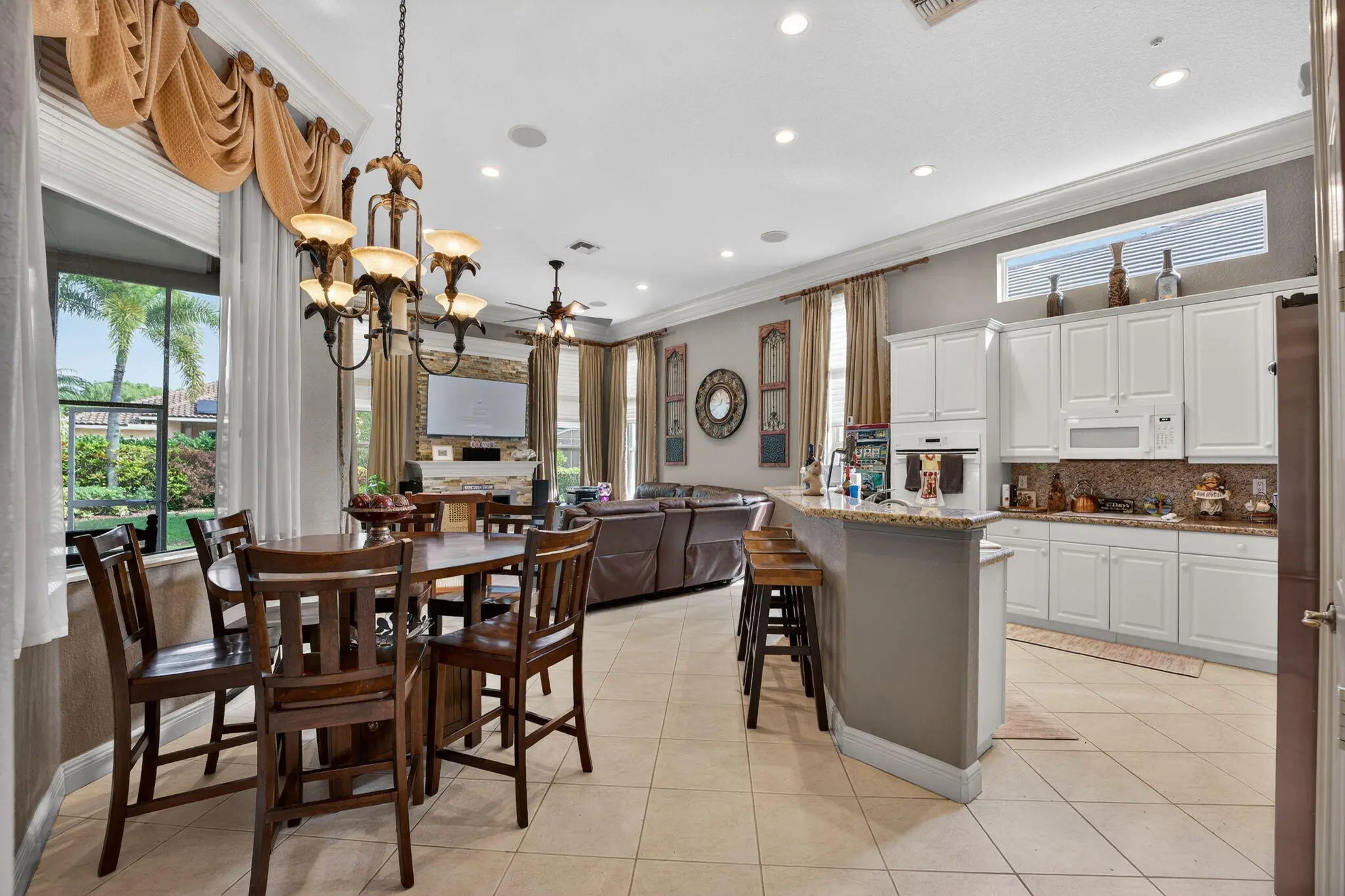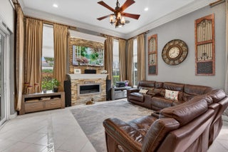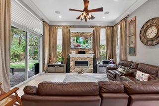 What a great 4 bed 3 bath triple split floor plan home. This prized home offers all tiles floors in the living area & wood like floors in the bedrooms. Upgrades blinds & curtains throughout. Each bedroom has a huge closet & the primary bedroom has 2 walk in closets & a nook for a desk. Primary bath has 2 separate sinks, w/ a large shower & large soaking tub. Formal Dining Room, Living Room, Family Room w/ fireplace. The kitchen has a nook off of it to fit a table for a family to have meals at or use the countertop in the kitchen & make it easy for yourself. Textured walls & ceiling. Crown molding in all living area. Hurricane impact windows & doors. Huge screened in patio that is great for entertaining & another patio off of this that hosts your very own 5-person hot tub. Large back yard.