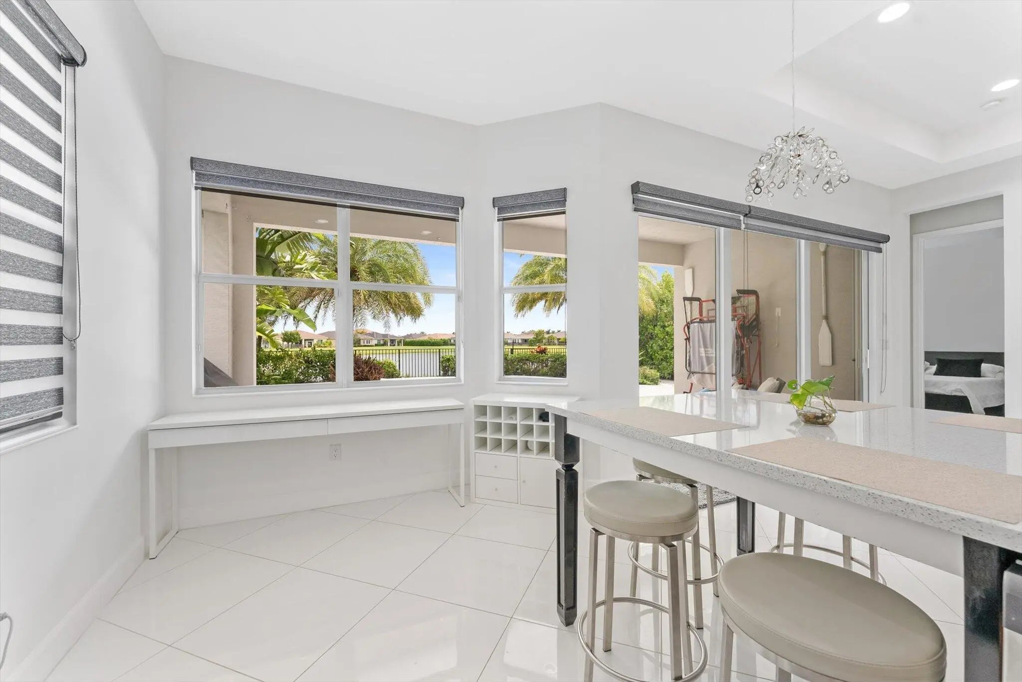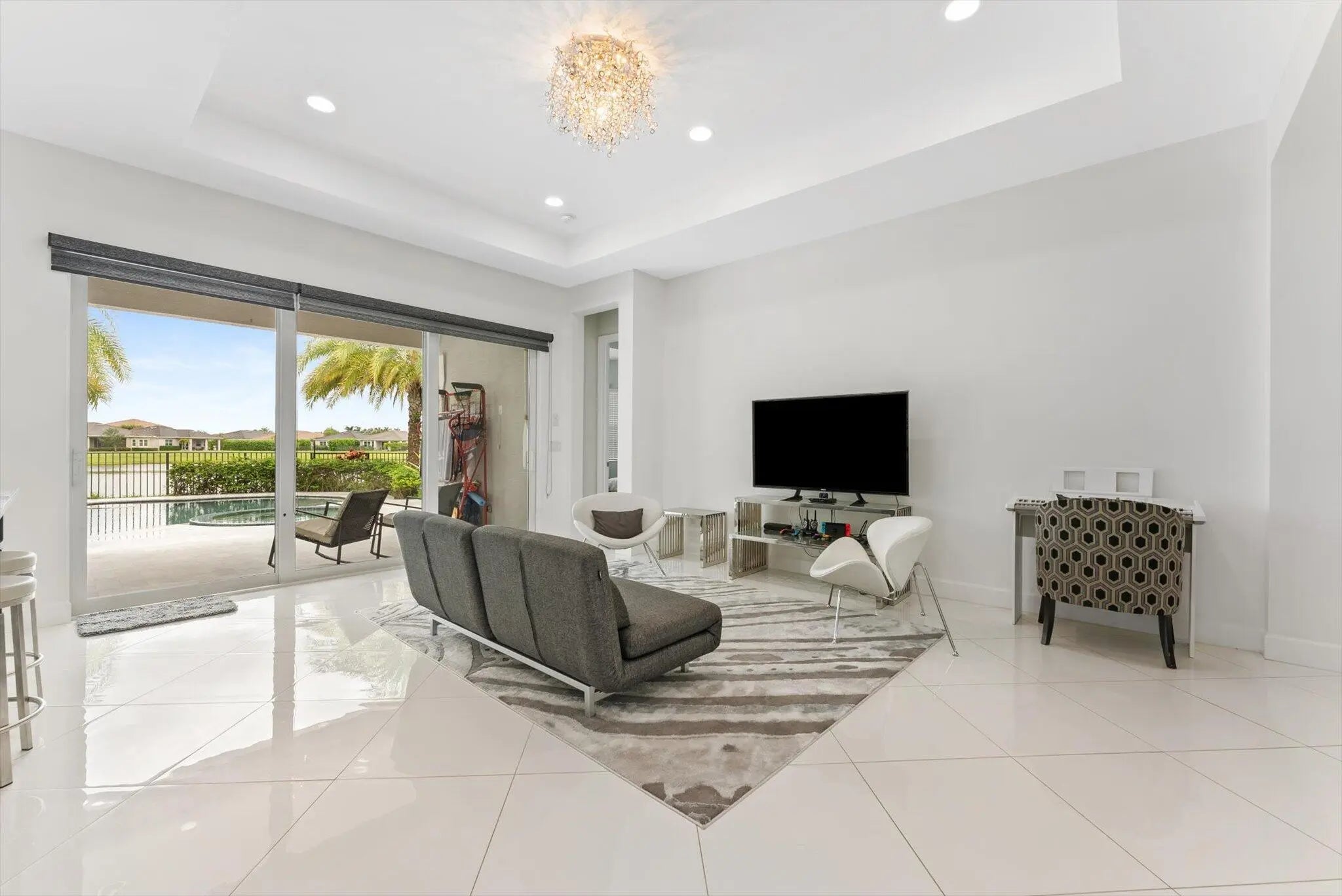 Welcome to this beautiful lakefront home facing the water in the desirable Hammocks at Westlake. Built in 2018, it offers a newer roof and impact windows and doors, which means lower insurance costs. Inside features tile flooring throughout with no carpet and many upgrades and added options. The highlight is the custom-designed heated saltwater pool and jacuzzi, creating a perfect space for relaxing, entertaining, and family living. Enjoy peaceful lake views with Clusia hedges for added privacy. The backyard is ideal for kids and gatherings. Located near Westlake Adventure Park with a lagoon pool, slides, and splash pad. Low HOA approx $150/month. Move-in ready and meticulously maintained, offering comfort, style, and convenience in a prime location.