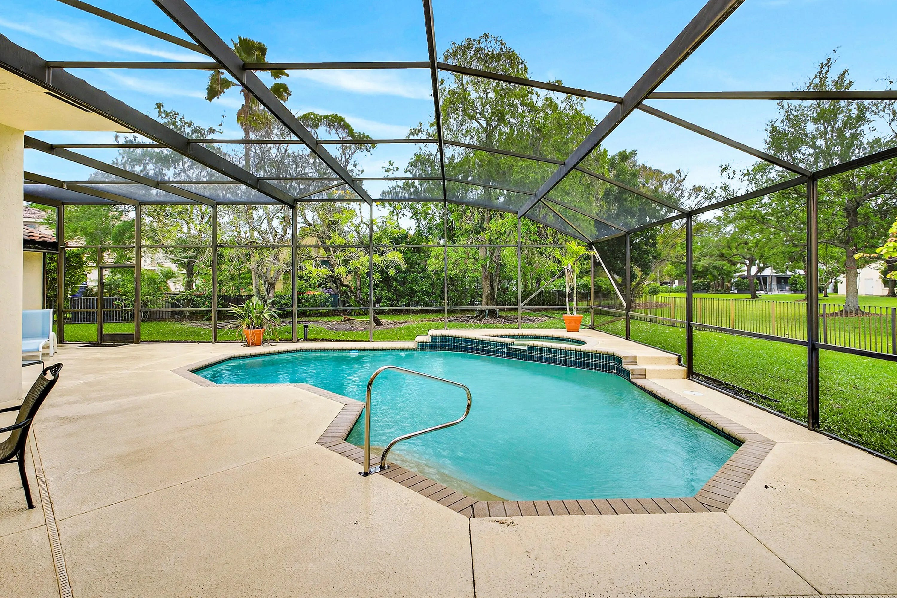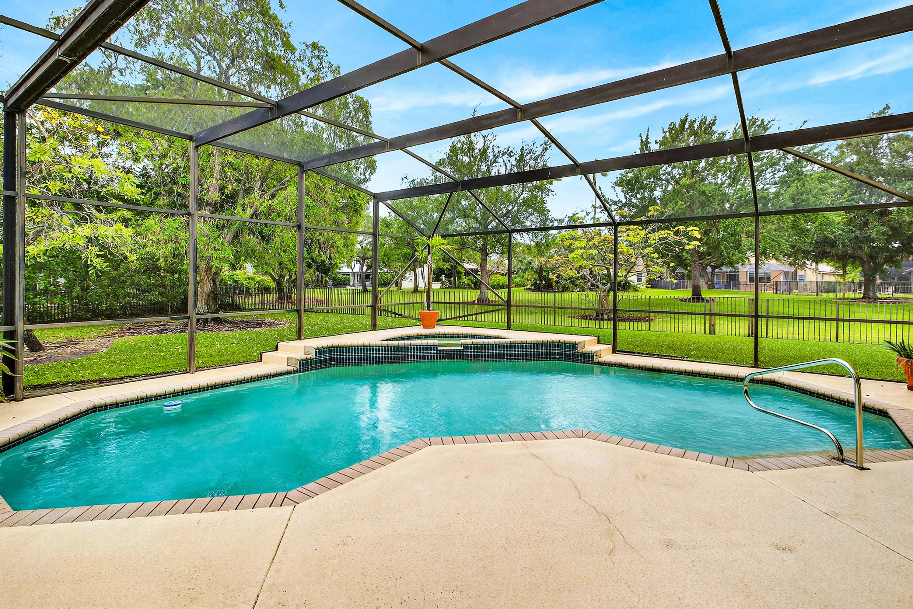 Fenced, In Ground, Pool/Spa Combo, Screen Enclosure, Private