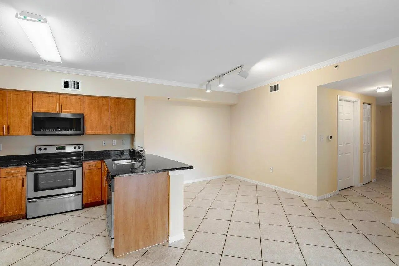 Fantastic and exclusive condominium and community in West Palm Beach. Substantially updated 3 bedroom and 2 full bathroom. Gated community with clubhouse, pool, and tennis courts, and further amenities. Open kitchen, granite counter tops, and all stainless steel appliances ces. Breakfast / Dining, and living areas. Garden view balcony with extra storage room. Ceramic floors in kitchen and bathrooms. Light beige wood pattern vinyl floors in bedrooms. Contemporary ceiling fans all over. Washer and dryer in unit in separate laundry room. SS fridge with top freezer and ice maker. All impact (sliding) door and windows. One carport and one parking space, both assigned. Furthermore ample guest parking. The pictures speak for themselves. Close to shopping/entertainment areas.