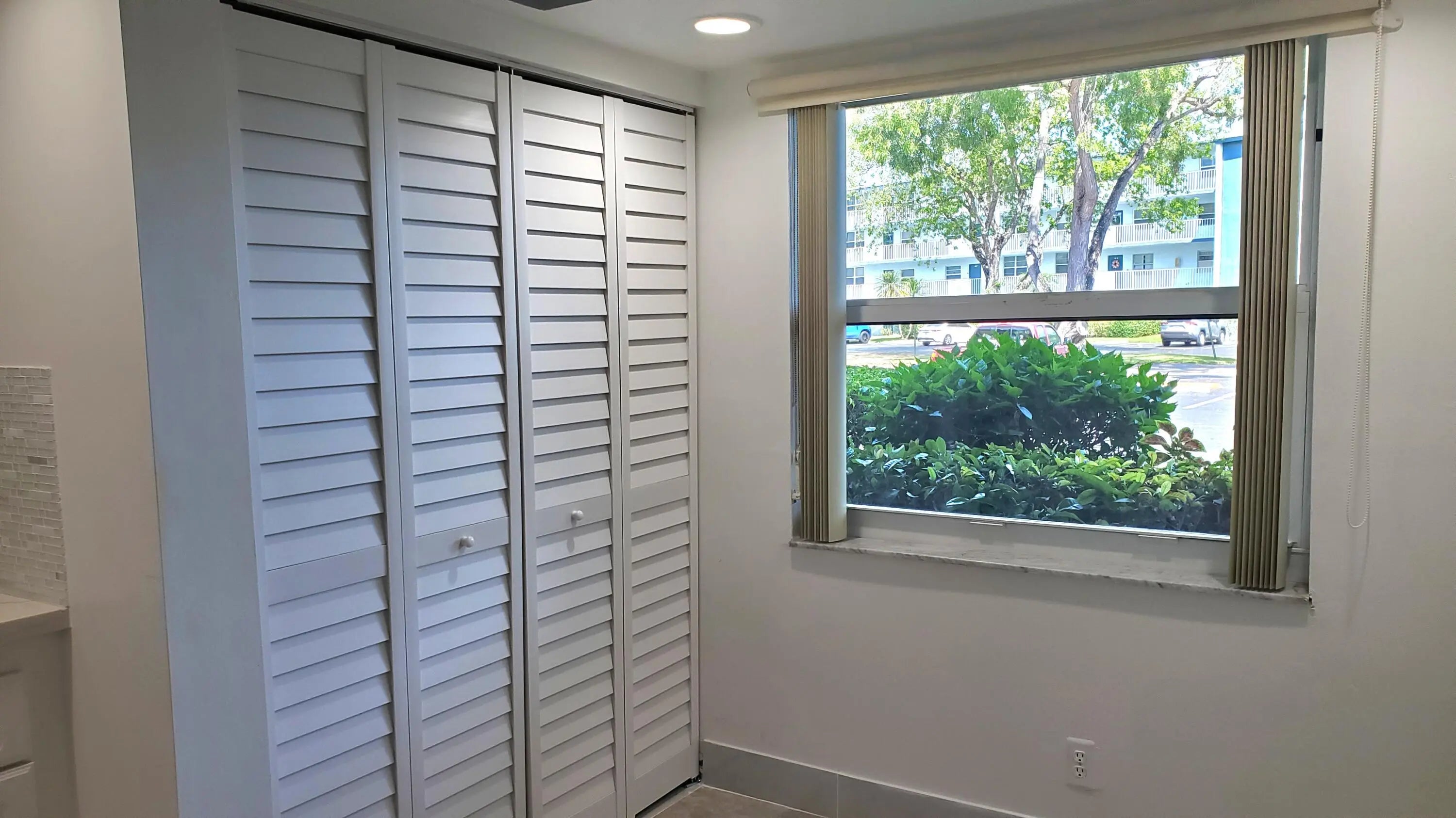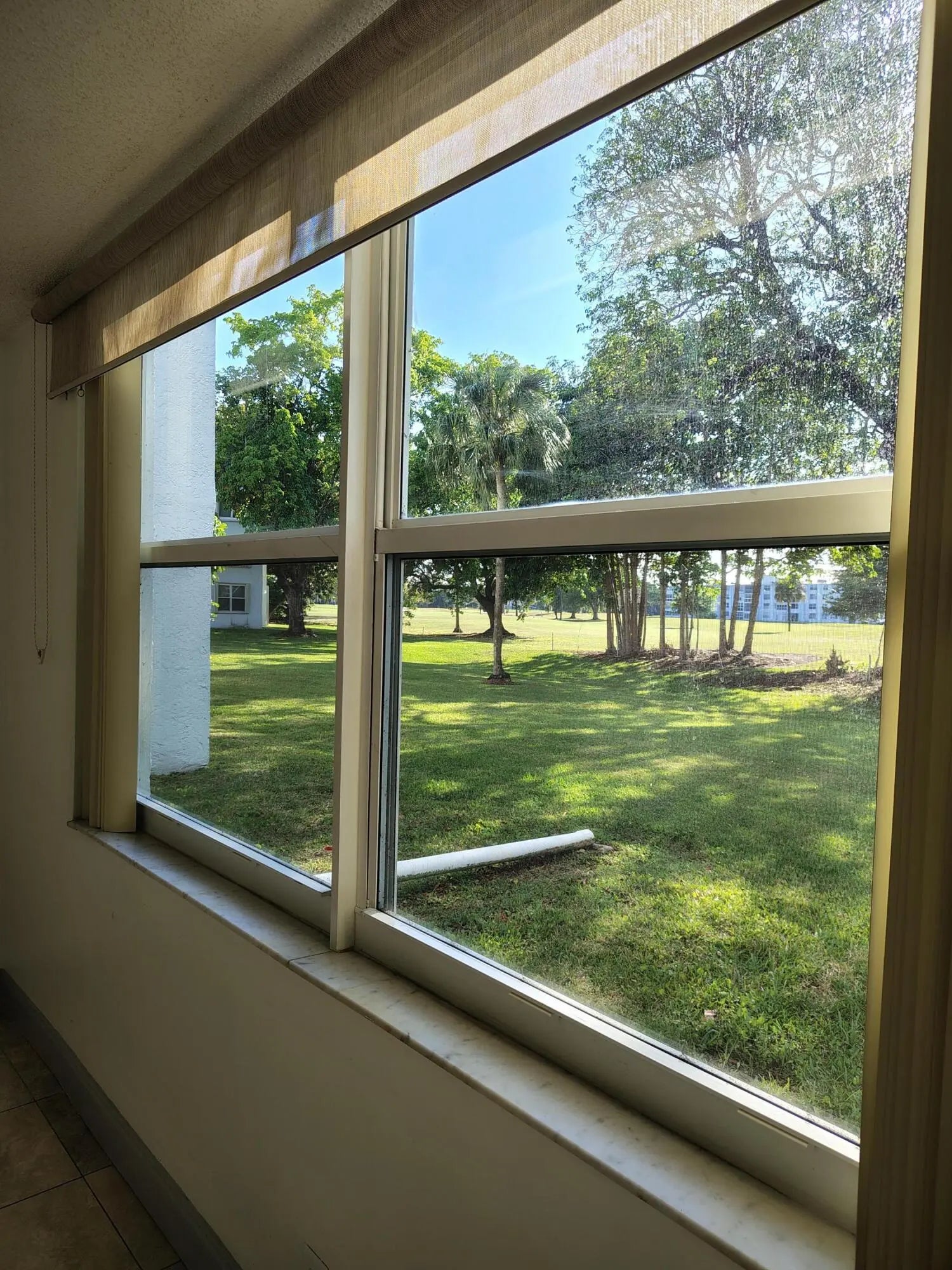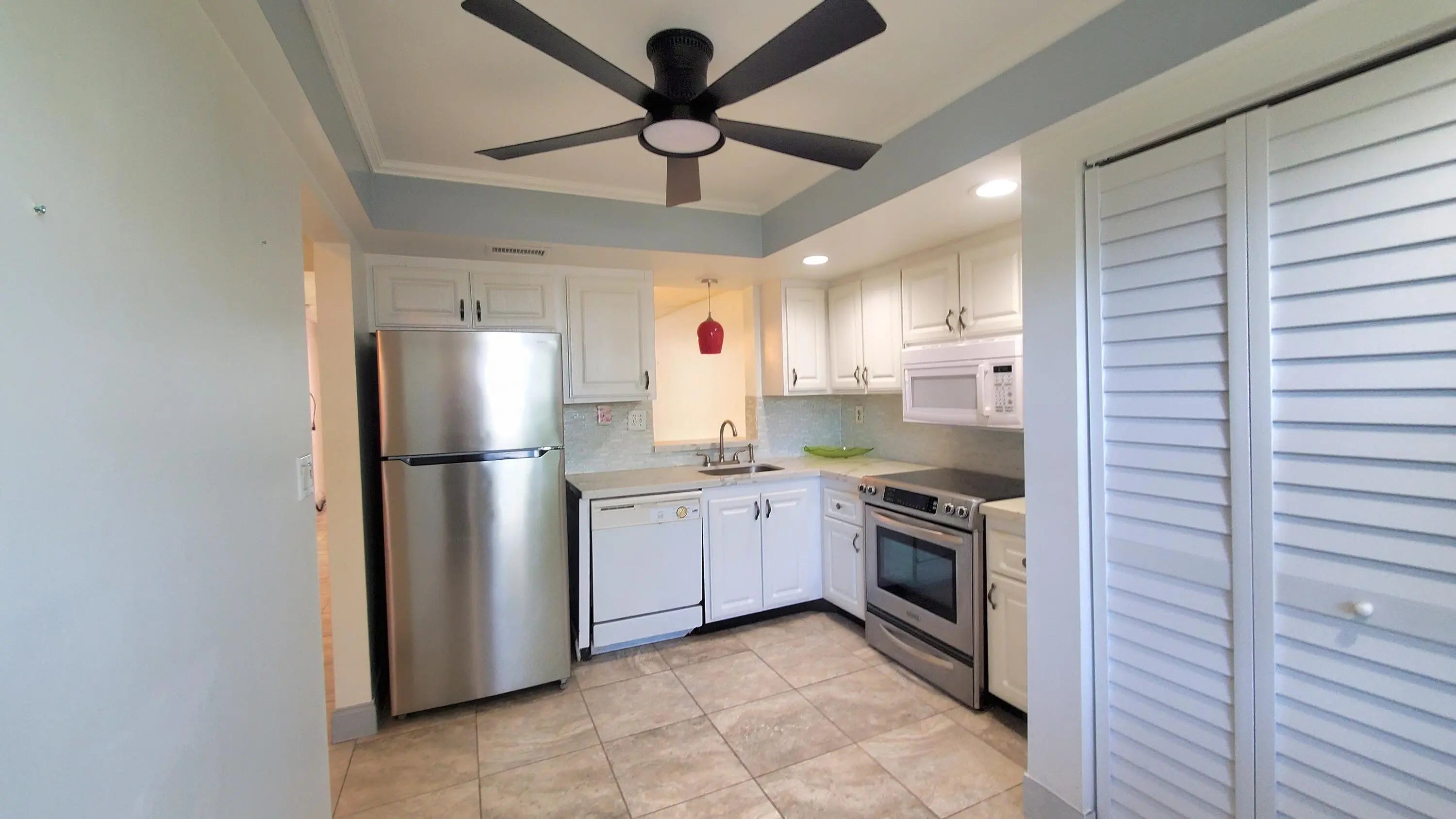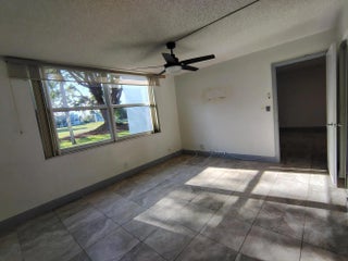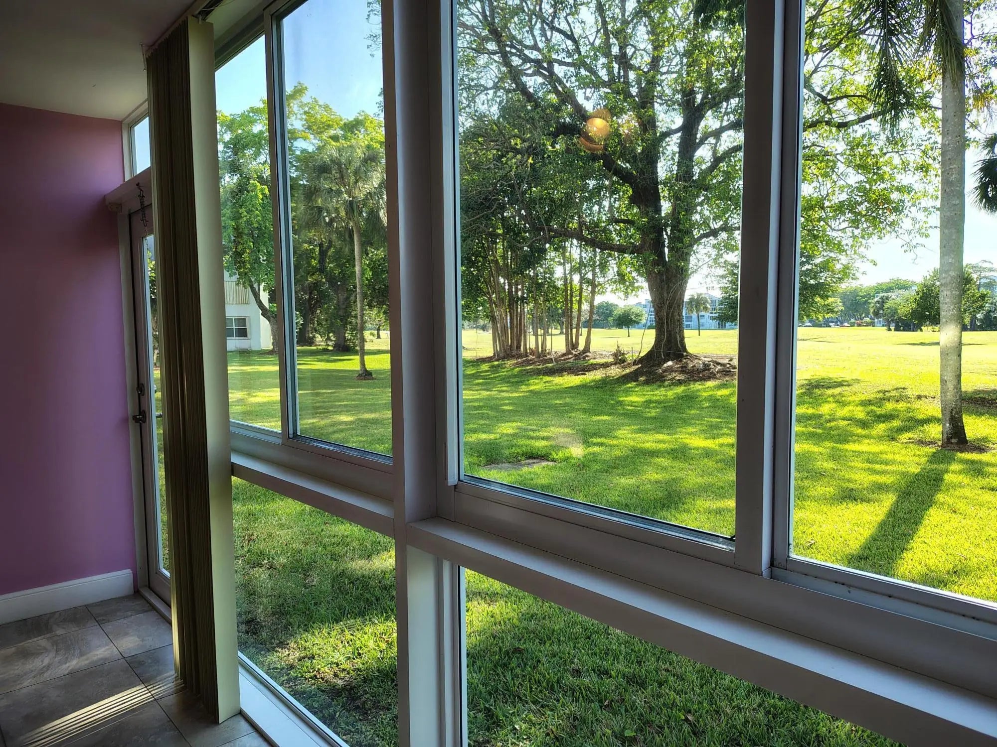 Welcome to this beautifully maintained 1-bedroom, 2 full-bath home in the highly desirable Palm Springs 55+ community. Located on the 1st floor, this unit offers stunning golf course views right from your back windows. Enjoy panoramic scenery from your sunroom/den, featuring floor-to-ceiling windows that bring in plenty of natural light. The tile flooring throughout offers a consistent look, & multiple closets provide generous storage space. Additional features include impact windows for added safety & peace of mind, along with the convenience of your own in-unit W&D. Your assigned parking space is located directly in front of the unit, & mailbox is just steps away. The low monthly HOA fee covers water, cable, trash, pest control, lawn & exterior insurance. This unit surely will not last!!