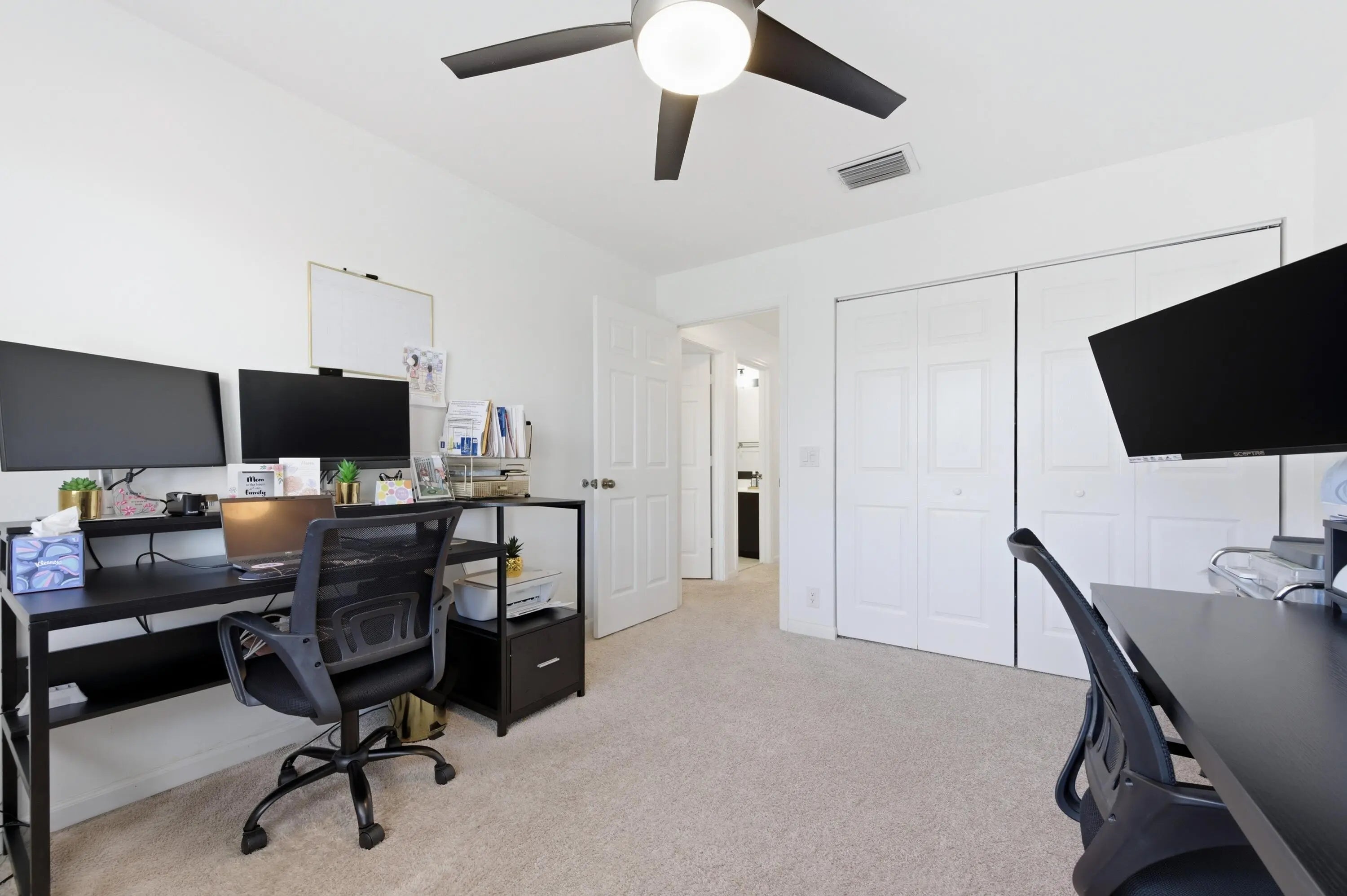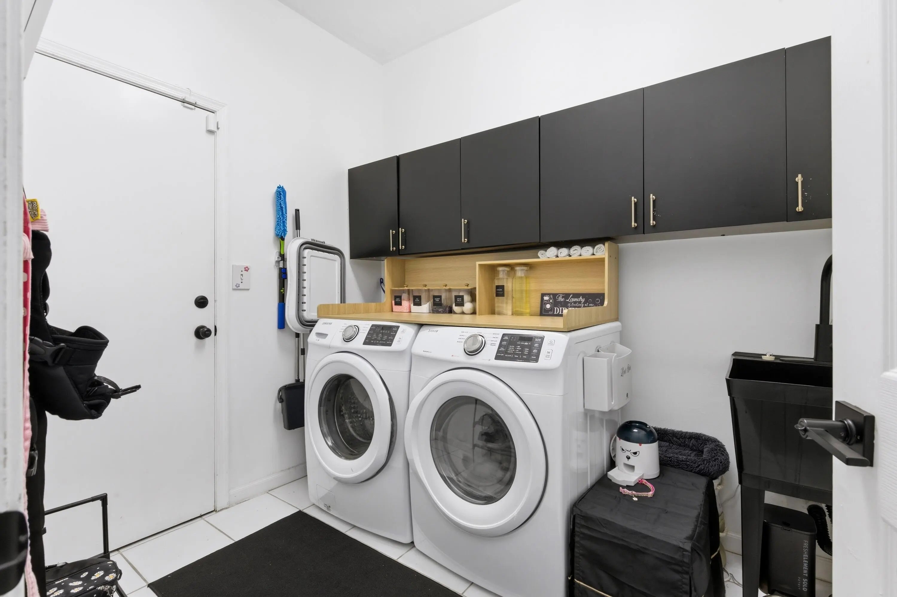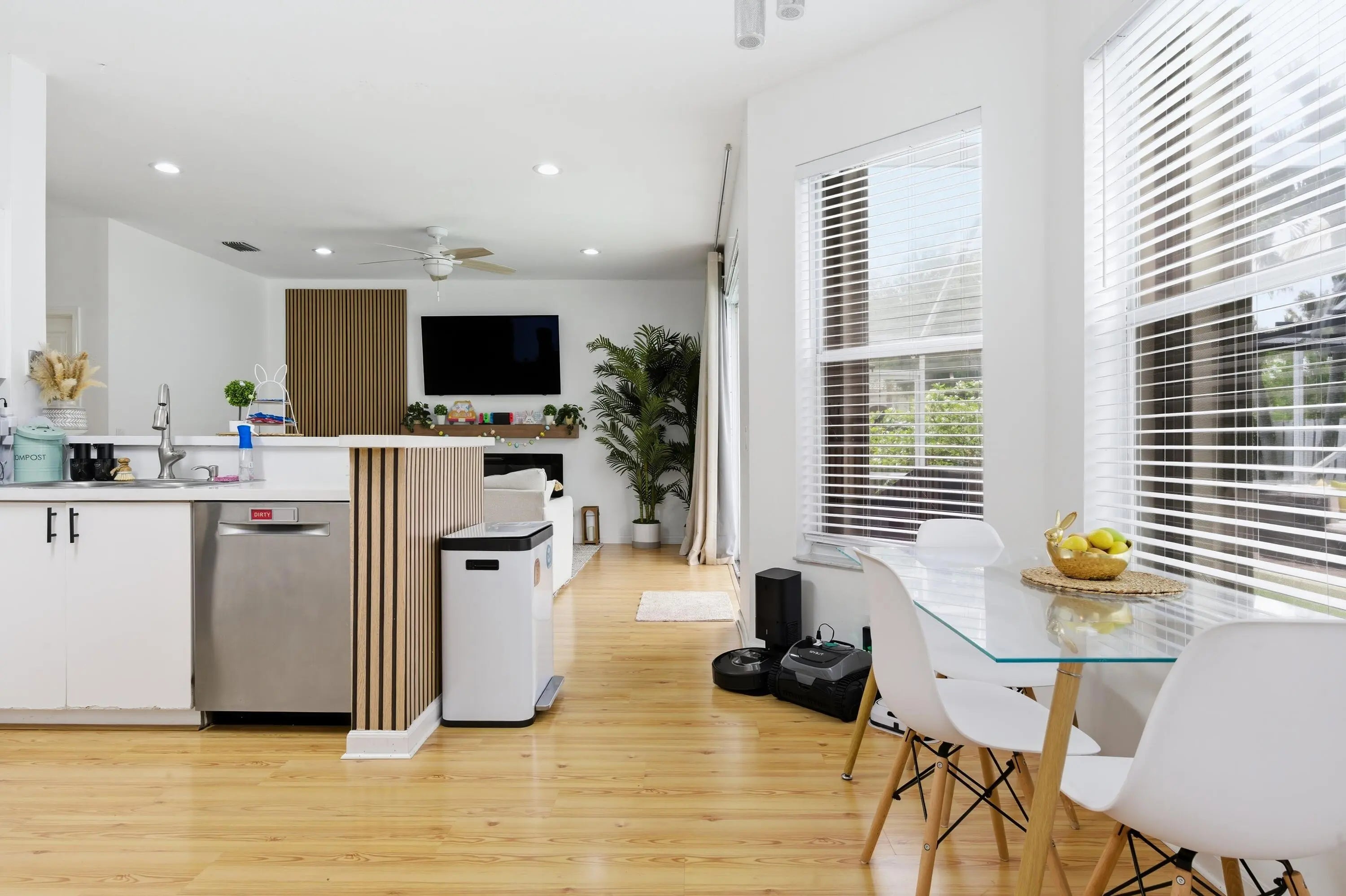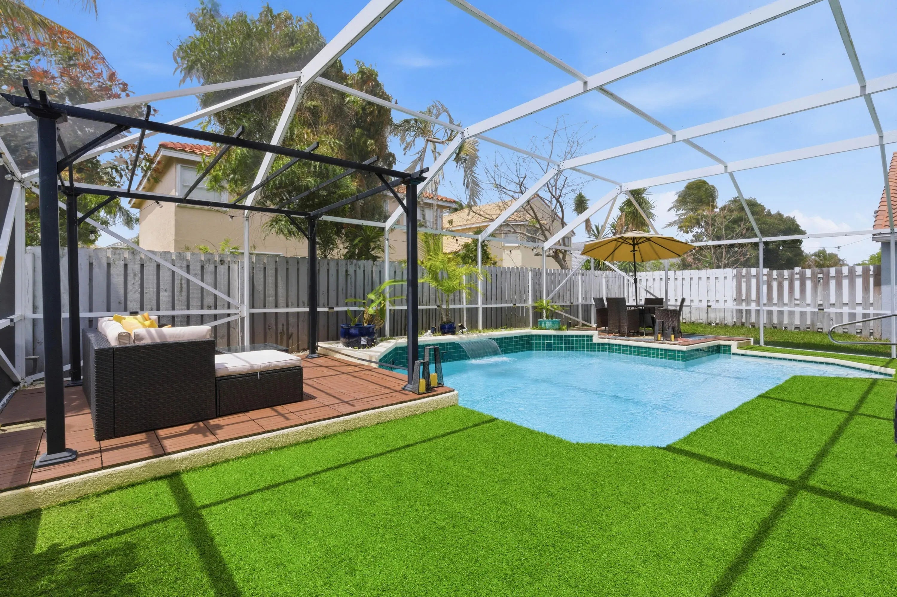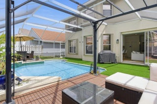 Welcome to this beautifully maintained rental in the highly sought-after Lake Charleston community! This home truly shows like a model and offers a perfect blend of style, comfort, and modern convenience. Step inside to find laminate wood flooring throughout the downstairs living areas and plush carpeting upstairs, complemented by chic wood panel accent walls that add warmth and character. The home is filled with natural light thanks to an abundance of windows, enhanced by tinted glass for added comfort and efficiency. The spacious layout features multiple closets and ample storage throughout, including a large walk-in closet and a generously sized laundry room with a brand new washer and dryer. The kitchen includes a pantry for additional storage, while the living areas are complete with modern lighting, recessed lighting, and ceiling fans for a bright and inviting atmosphere. A stylish half bathroom downstairs features elegant black and gold accents. Enjoy indoor-outdoor living with an extra wide sliding glass door leading to a fully screened patio and private backyard finished with low-maintenance faux grass, no lawn mowing required except in the front yard! The home also includes accordion hurricane shutters for peace of mind. This property is equipped with smart home features including a smart door lock, Ring doorbell camera, front garage camera, remote garage access, Sensi-controlled AC system, and ADT security system with app control for added convenience and security. Located in the desirable Lake Charleston community, residents enjoy access to resort-style amenities including a community pool, tennis courts, basketball courts, playgrounds, scenic walking paths, and beautifully maintained lakes throughout the neighborhood. Conveniently located near top-rated schools, shopping, dining, and major highways, this home offers both comfort and accessibility. Spacious, stylish, and move-in ready, this is Florida living at its finest!