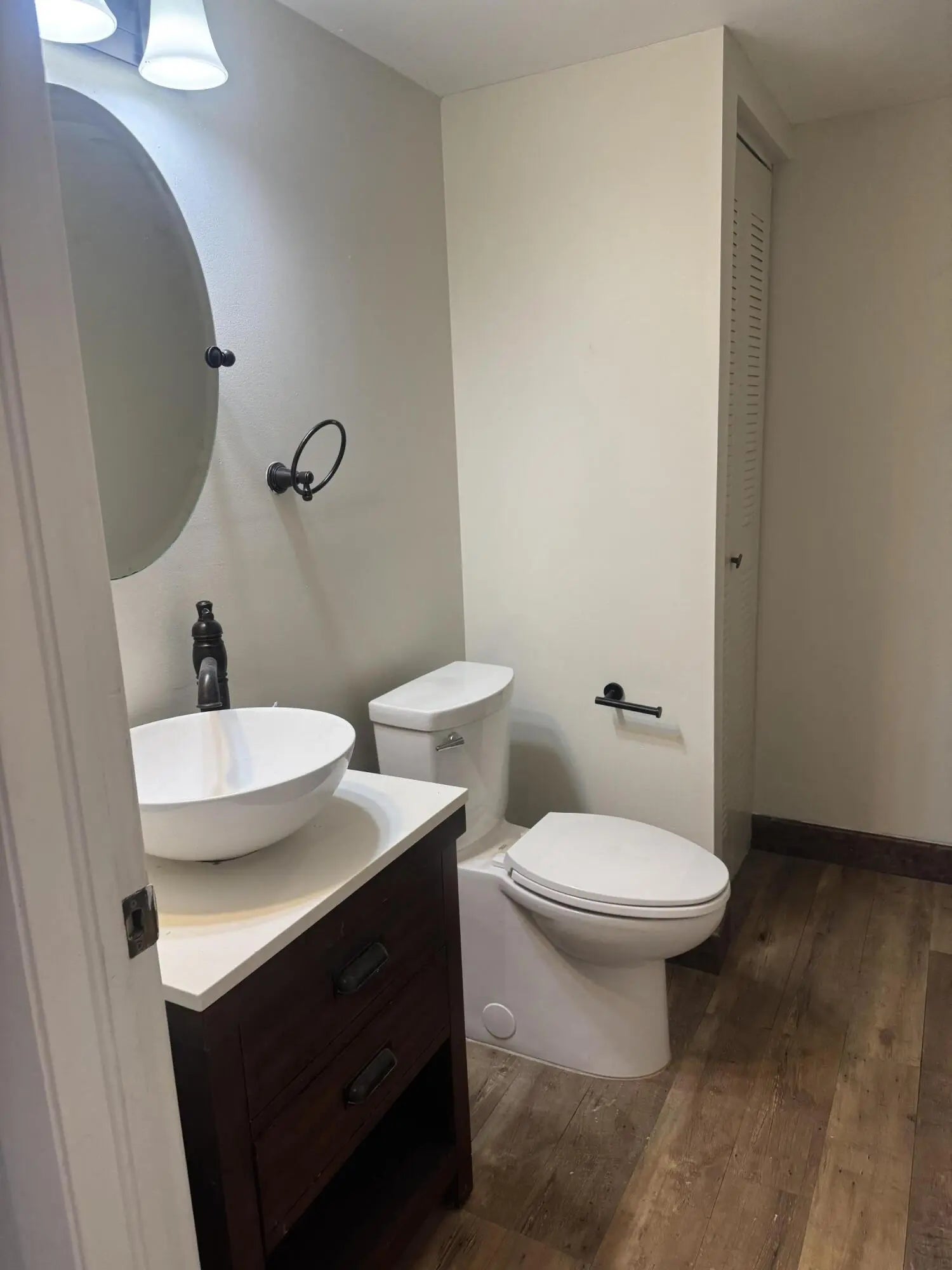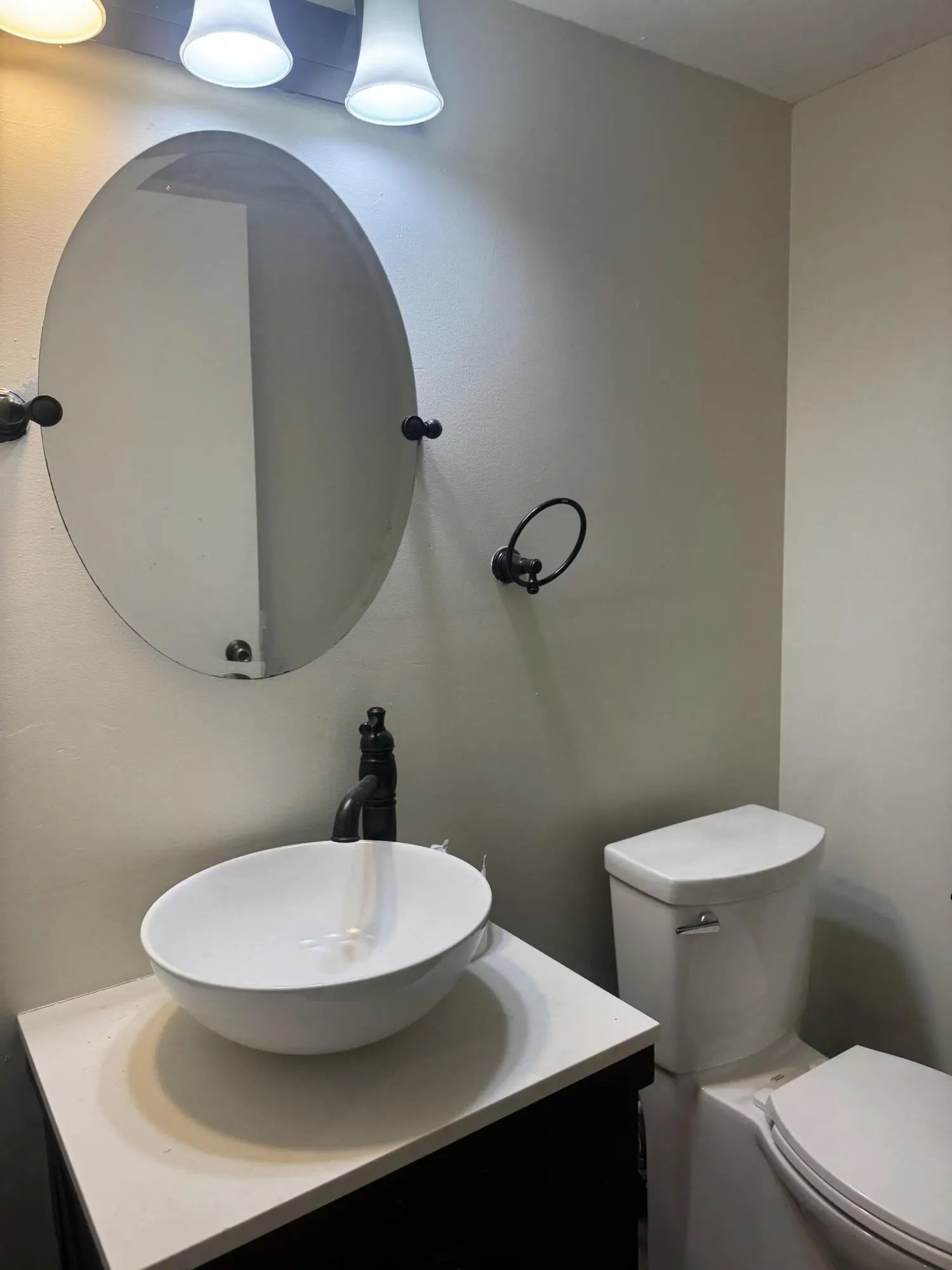 FRESHLY PAINTED MOVE IN READY UPDATED 2 ENSUITE PRIMARY BEDROOMS WITH OFFICE/DEN /GUEST ROOM OFF KITCHEN NO WINDOWS OR CLOSET BUT SPACIOUS 1/2 BATH CONVENIENTLY DOWNSTAIRS LARGE GREAT ROOM WITH LARGE TV OUTDOOR FENCED AREA