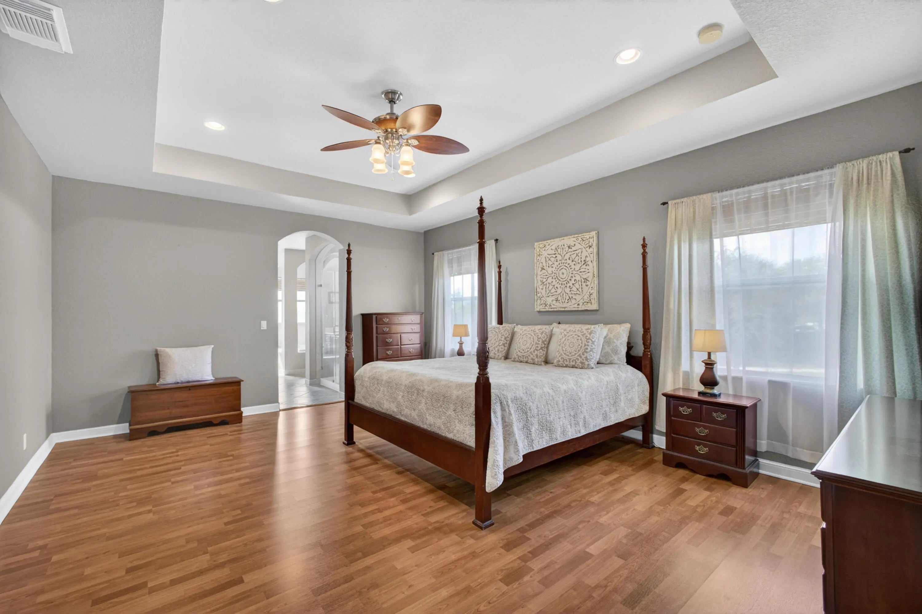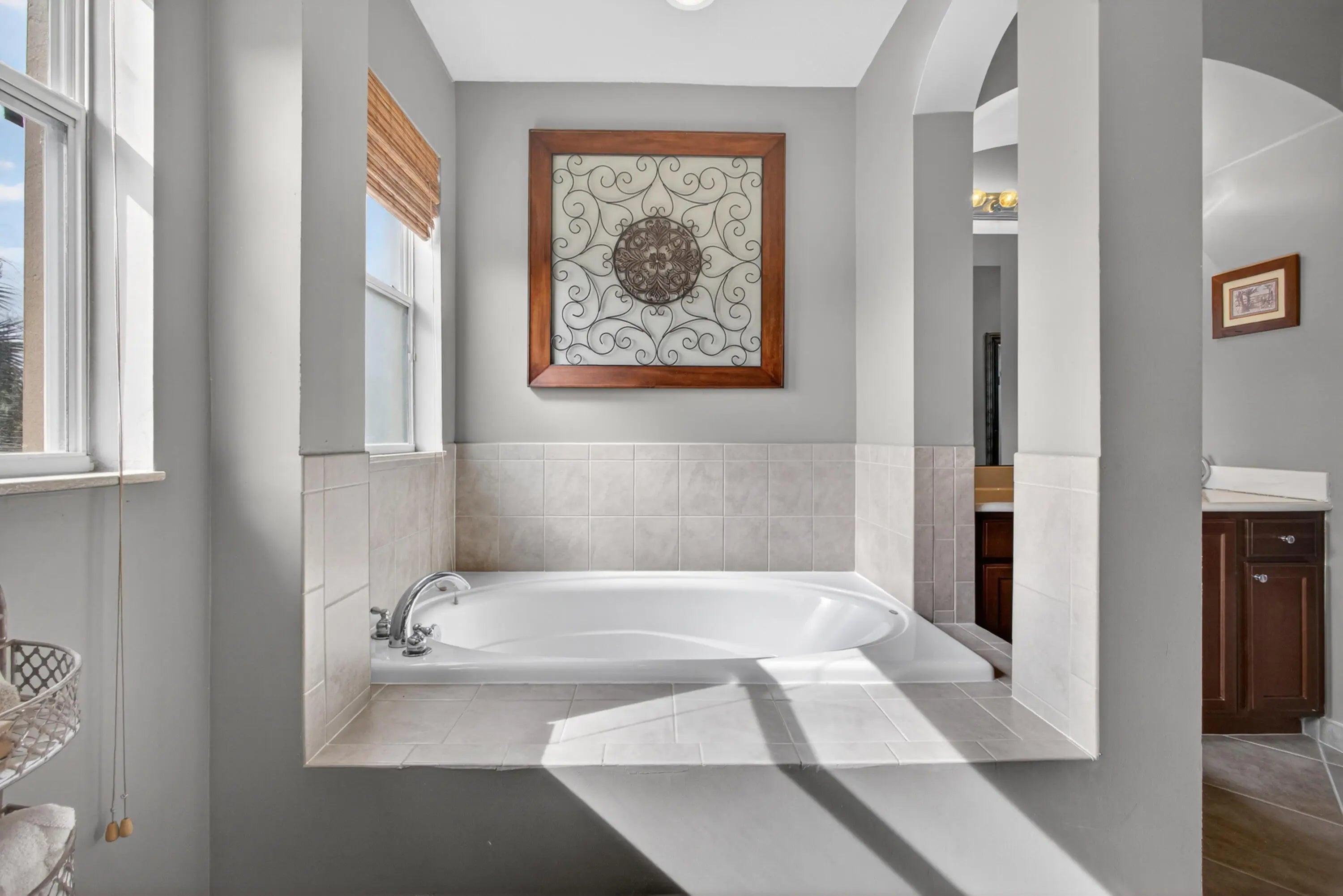 Cathedral Ceiling(s), Entrance Foyer, High Ceilings, Kitchen Island, Pantry, Walk-In Closet(s), Bedroom Layout - Split, Roman Tub