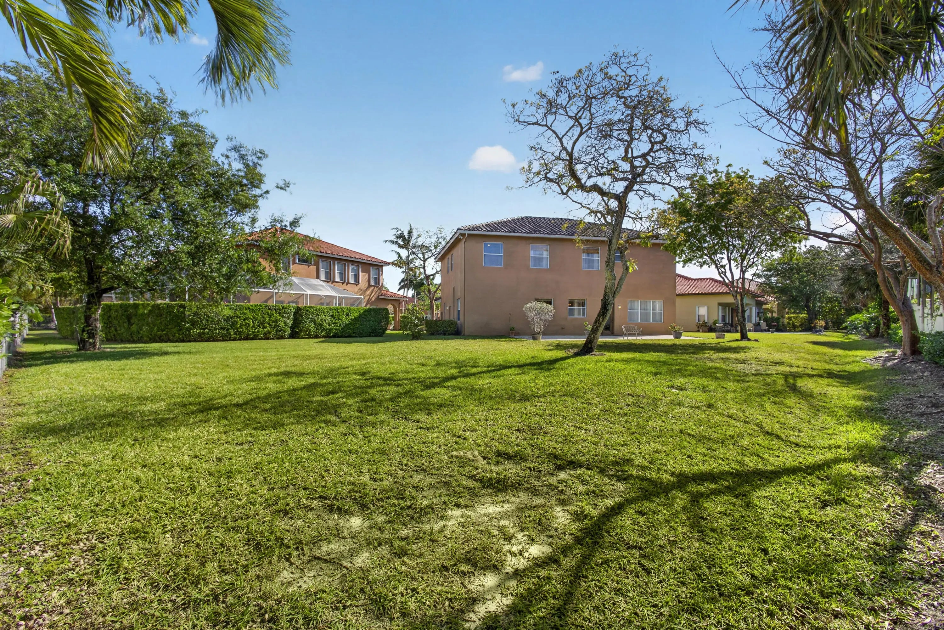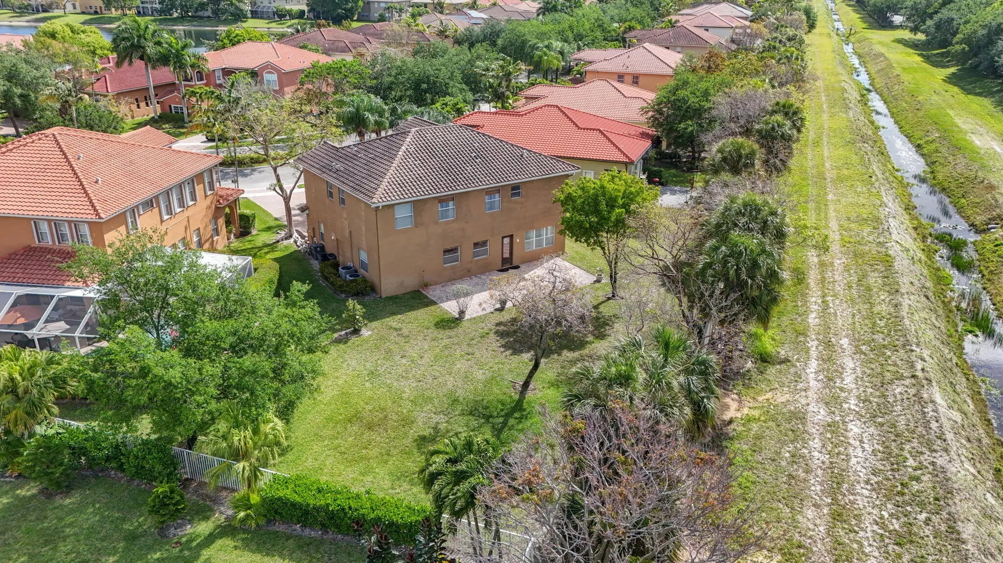 Discover this exceptional 5BR + loft + flex rm/4BA/3CG estate home in the prestigious gated Terracina community in Palm Beach County. Situated on a rare oversized .28 acre cul-de-sac lot, this 3,393 sq ft two-story residence is tucked away at the back end of the community, in the Estate section, offering ultimate privacy with no backyard neighbors and a HUGE yard w/ room to add a custom pool & expand your outdoor living space. Built in 2006 & beautifully maintained by the original owners, this move-in ready home features soaring cathedral ceilings, tile & laminate flooring, formal living, family & dining rooms, and an open-concept kitchen w/ SS appliances & 42" cabinetry. Ideal for multi-generational living, the flexible layout offers an excellent potential for in-law or nanny quarters on the first floor. Recent improvements include newly refurbished in 2025 HVAC (both fan motors replaced) & WH replaced 2022. This home has a tandem 3 car garage. Enjoy resort-style amenities which include: 24-hour security, 2 gated entries 24-hour roving security, on-site property management, fitness center, resort-style pool, tennis, basketball courts & 2 playgrounds. Your HOA fees include front and backyard mowing in addition to the community amenities. Terracina is in a prime & central location, in proximity to a wide range of restaurants, shopping, PBI Airport, FL's Turnpike, our beautiful beaches, CityPlace, and Wellington.