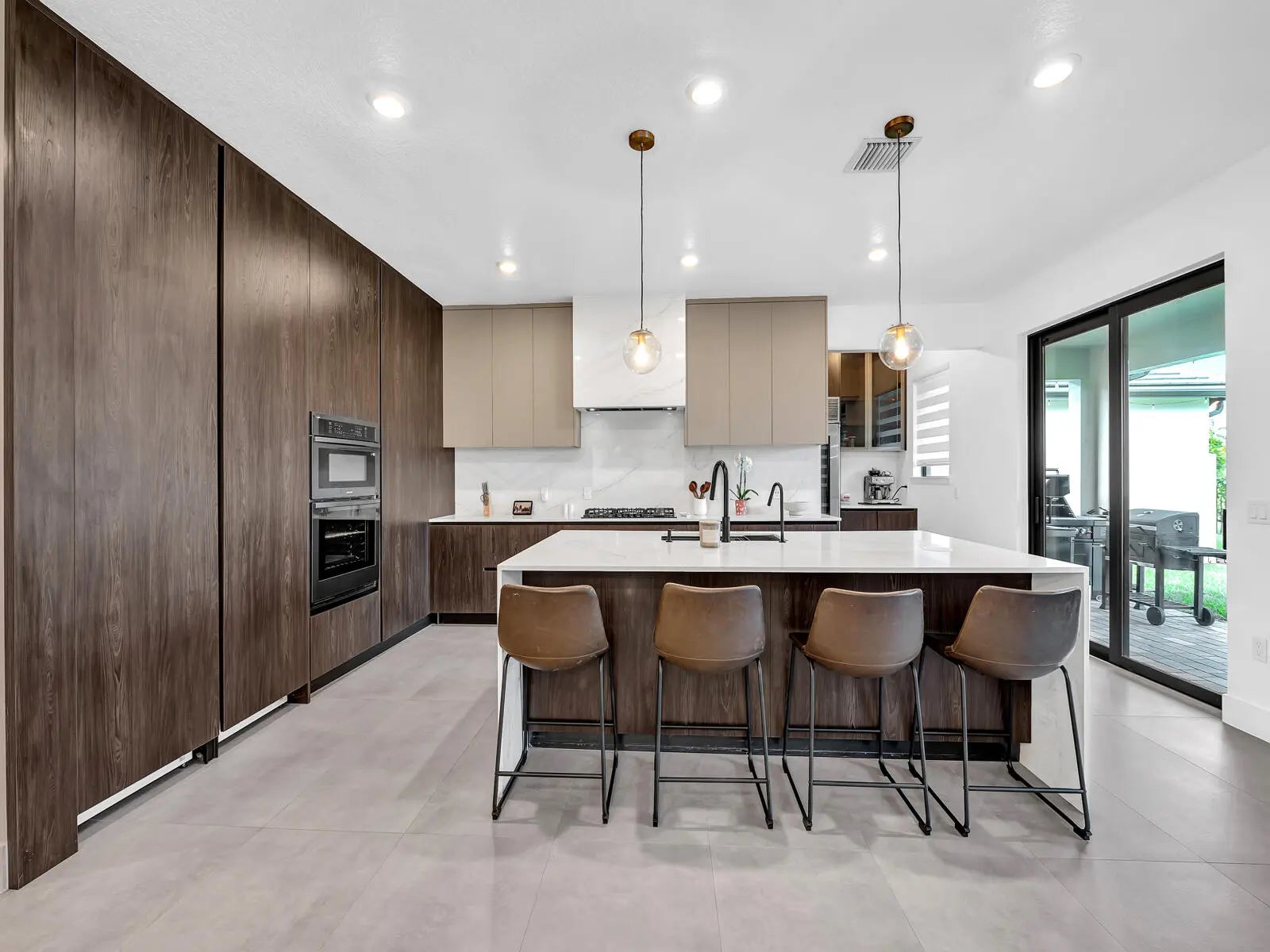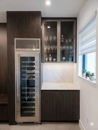 Fully customized home upgraded beyond builder grade featuring a designer kitchen with Gaggenau appliances, full tile flooring throughout, custom bathrooms, glass staircase, office built-ins, and outdoor kitchen. Includes whole-house water filtration and pool-ready gas and electrical connections. Option 2 - More Luxury / Sales-Driven Luxury-upgraded home with a custom chef's kitchen featuring Gaggenau appliances, full tile flooring (no carpet), designer lighting, spa-style bathrooms, glass staircase, custom office, wine bar with Marvel fridge, and a complete outdoor kitchen. Pool-ready with gas and electrical pre-installed. Option 3 - Short & Straight to the Point Fully upgraded home with custom kitchen (Gaggenau appliances), full tile floors, custom Welcome to this beautifully customized home featuring luxury finishes throughout, offering a truly elevated and move-in-ready living experience. Kitchen - Fully Custom Renovation Complete custom kitchen redesign with high-end finishes Expanded kitchen layout with double cabinetry (24" depth) on both sides, maximizing storage and functionality Integrated panel-ready 24" refrigerator and 24" freezer by Gaggenau, Added double oven system (not included in original build) Upgraded to gas cooktop with custom-designed hood enclosure Island enhanced with custom light fixtures Premium cabinetry and optimized layout for modern living Bar, Coffee Station & Mudroom Custom-built bar / coffee station area Integrated 24" Marvel wine fridge Adjacent mudroom-style built-in storage for added organization Bathrooms (All Upgraded) Fully renovated custom bathrooms throughout High-end custom stone finishes Upgraded toilets and fixtures for enhanced comfort and quality Office & Interior Custom Features Dedicated custom office space Built-in cabinetry with open shelving design Custom feature wall with decorative panel detailing Additional custom cabinetry with stone surfaces on the second floor Staircase Upgrade Fully rebuilt custom staircase Modern glass railing system on both sides Outdoor Living & Entertaining Fully equipped outdoor kitchen, including: Built-in grill Pizza oven Outdoor refrigerator Pre-installed gas and electrical hookups for future pool installation Includes breaker and gas connection Additional Highlights Extensive upgrades completed with attention to detail and craftsmanship Designed to deliver a modern luxury lifestyle with enhanced functionality Significant improvements made beyond original builder specifications Positioning Line (For Listing Description) "Fully customized home featuring luxury finishes throughout, including full tile flooring, premium appliances, and designer upgrades—offering a move-in ready, elevated living experience. All bathrooms have been fully renovated with high-end stone finishes and upgraded fixtures, while the modern glass-railing staircase adds a striking architectural touch. Step outside to a fully equipped outdoor kitchen with grill, pizza oven, and refrigerator—perfect for entertaining. The home is also prepped for a future pool with gas and electrical connections already in place. Every detail has been thoughtfully curated to deliver a modern luxury lifestyle beyond original builder specifications. East-facing orientation provides soft morning light and comfortable, shaded afternoons in the outdoor living areas—creating the perfect setting for everyday living and entertaining.