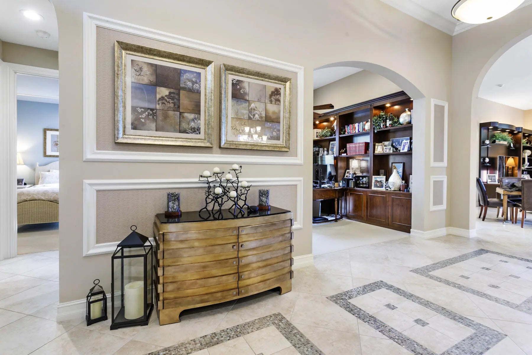 Bring your golf clubs, tennis and pickleball racquets! PREMIER golf membership and golf cart included in this VERY private location turnkey home w/every imaginable upgrade! Primary suite offers 2 walkin custom closets, king size bed. 95 inch flat screen TV. Luxurious marble bath w/separate shower w/seamless glass doors and dual sinks. Impact sliders open to your lushly landscaped heated salt water beach entry pool. Enjoy the large covered patio with phantom screens and motorized awnings. Preserve/lake views provide zen serenity for your seasonal getaway! Open chefs kitchen w/breakfast bar and casual dining table. Exquisite formal dining room for added elegance. Office/Den. Two additional bedrooms each with marble bath. (One w/queen bed, Other twin beds.)4 months minimum Housekeeper included once a week during rental. Tenant pays electric, water, gas and transfer fee for premier golf membership.