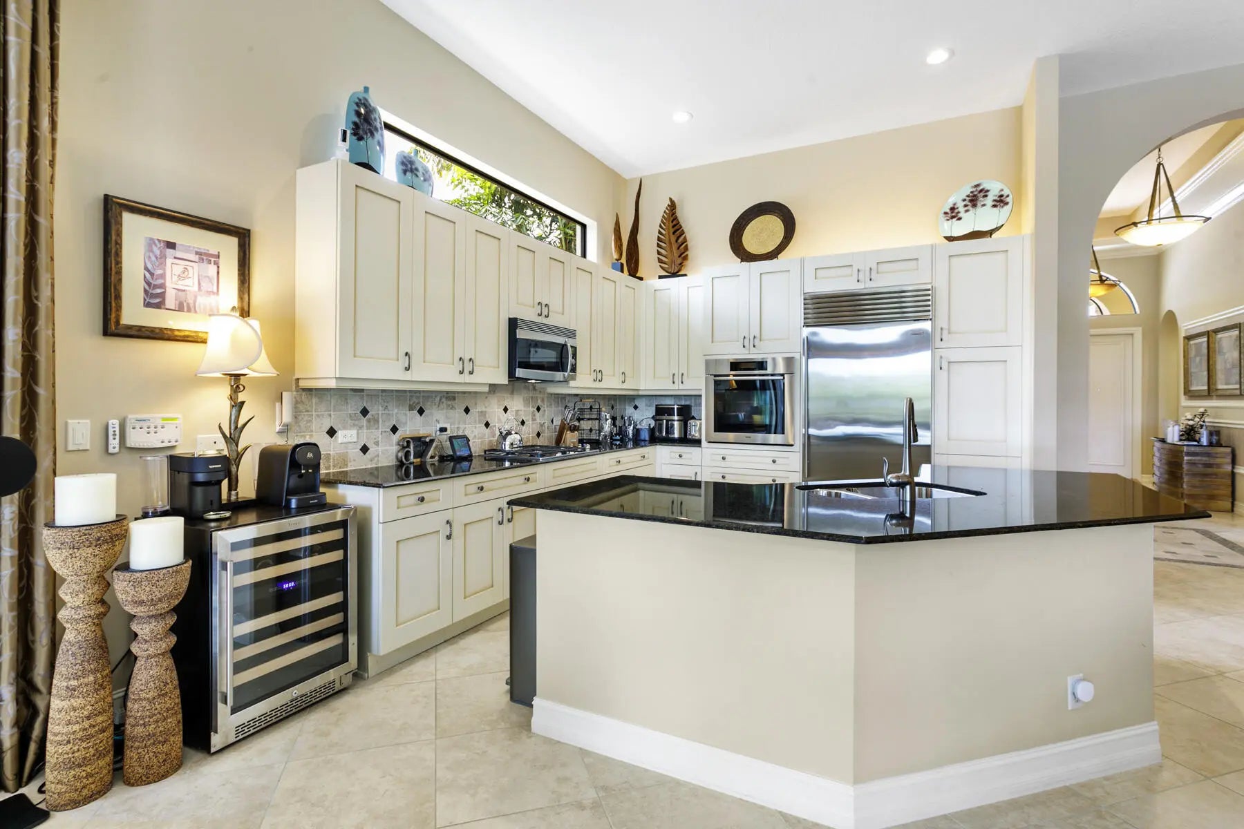 Cathedral Ceiling(s), High Ceilings, Kitchen Island, Vaulted Ceiling(s), Walk-In Closet(s), Bedroom Layout - Split, Closet Cabinetry, Roman Tub