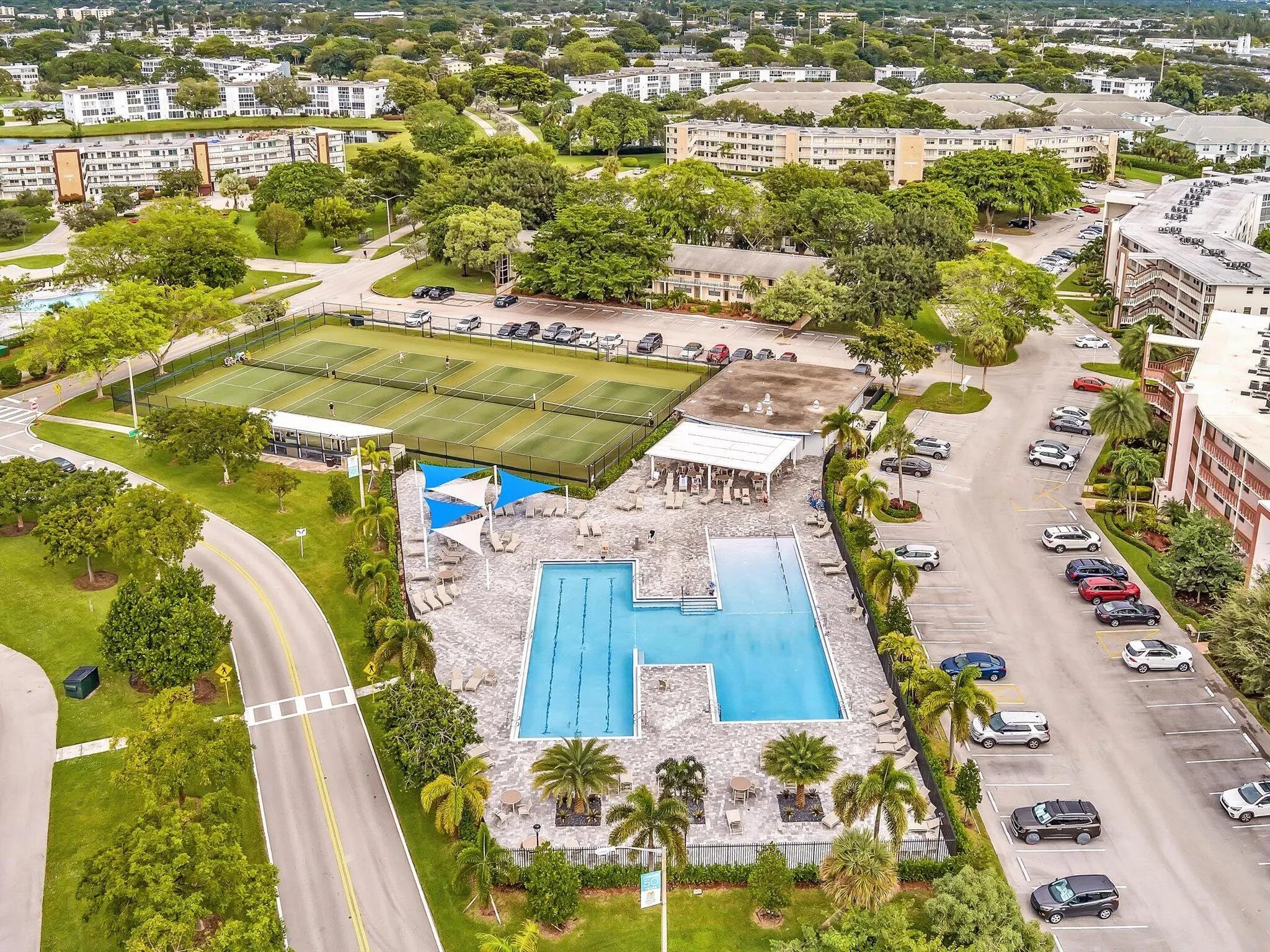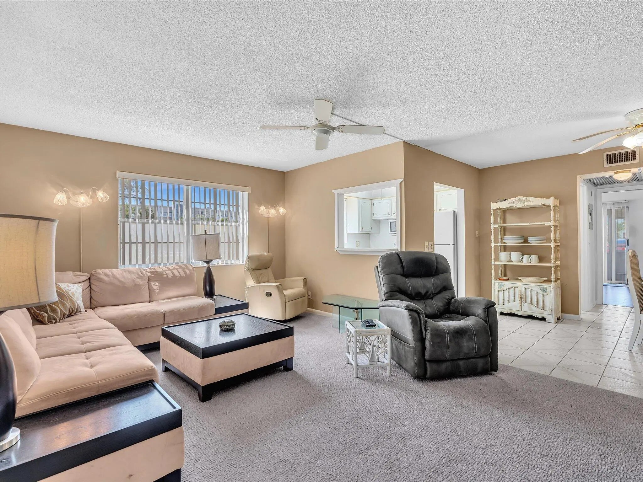 CENTURY VILLAGE, a vibrant 55+gated community offering resort-style living at a low cost. This is a well-maintained corner unit filled with natural light due to its desirable end-unit location. This spacious layout features an open living and dining area, a generously sized bedroom with ample closet space, and an additional 1/2 bath for guests. Walk out your front door and enjoy peaceful garden views. The unit has a functional kitchen layout, neutral finishes, and is ready for your personal touch, immediate enjoyment, or a great investment. Century village is known for its exceptional amenities, including clubhouse, pools, tennis and pickleball, theater, courtesy transportation, and a full calendar of social events. Seasonal or annual, make this your home! AC-2025, Oven-2025, Electric-2022 SHOWINGTIME, call the listing agent. 732-664-3706. Lockbox