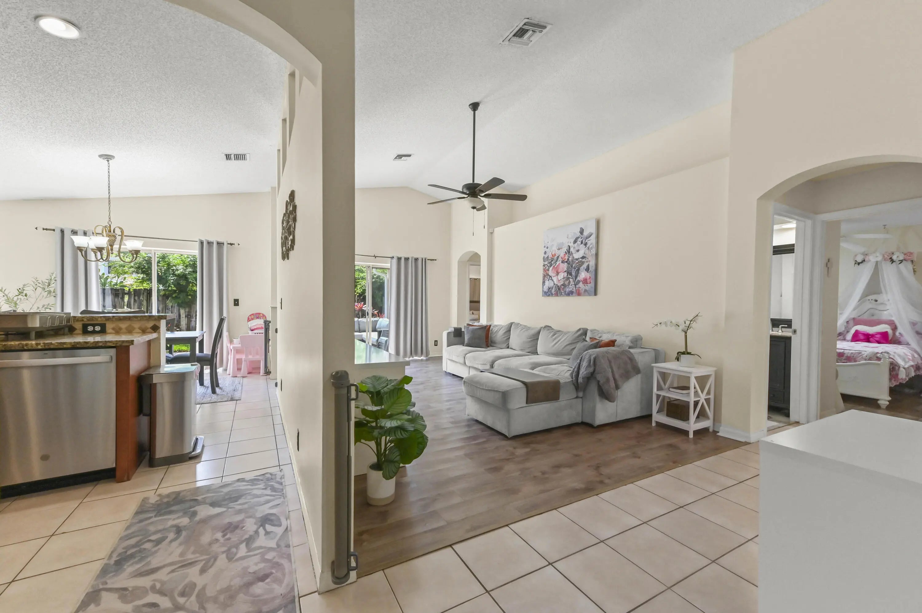 Welcome to Spinnaker Bay at Lake Charleston! This charming home features 3 bedrooms, 2 bathrooms, 1,578 sq ft of living space, and a 2-car attached garage and 2025 ROOF and 2023 AC. The roof was installed with a solar powered vent releasing hot air from the attic to keep electricity down in the summer! Step inside to a welcoming foyer that leads into a spacious living area seamlessly connected to the dining and kitchen space. The kitchen offers ample cabinetry for storage, a countertop with bar seating, and stainless steel appliances, including upgrades from 2018 and 2019, such as the refrigerator, other appliances, updated baths, flooring in the main living areas, and refreshed baseboards. Enjoy peace of mind with major improvements in addition to the roof and AC; updated landscaping (2026), and exterior house and driveway paint completed in 2021. The home also includes a dedicated laundry area with a washer and dryer for added convenience. Step outside to a fenced backyard with an open patio, perfect for relaxing or hosting gatherings. Located in a desirable community, this home offers comfort, functionality, and valuable updates throughout. Low HOA includes cable & internet. Resort-style amenities: pool, toddler pool, playgrounds, pickleball, tennis, basketball & volleyball courts. Walk to Lake Charleston Park and A-rated Manatee Elementary.