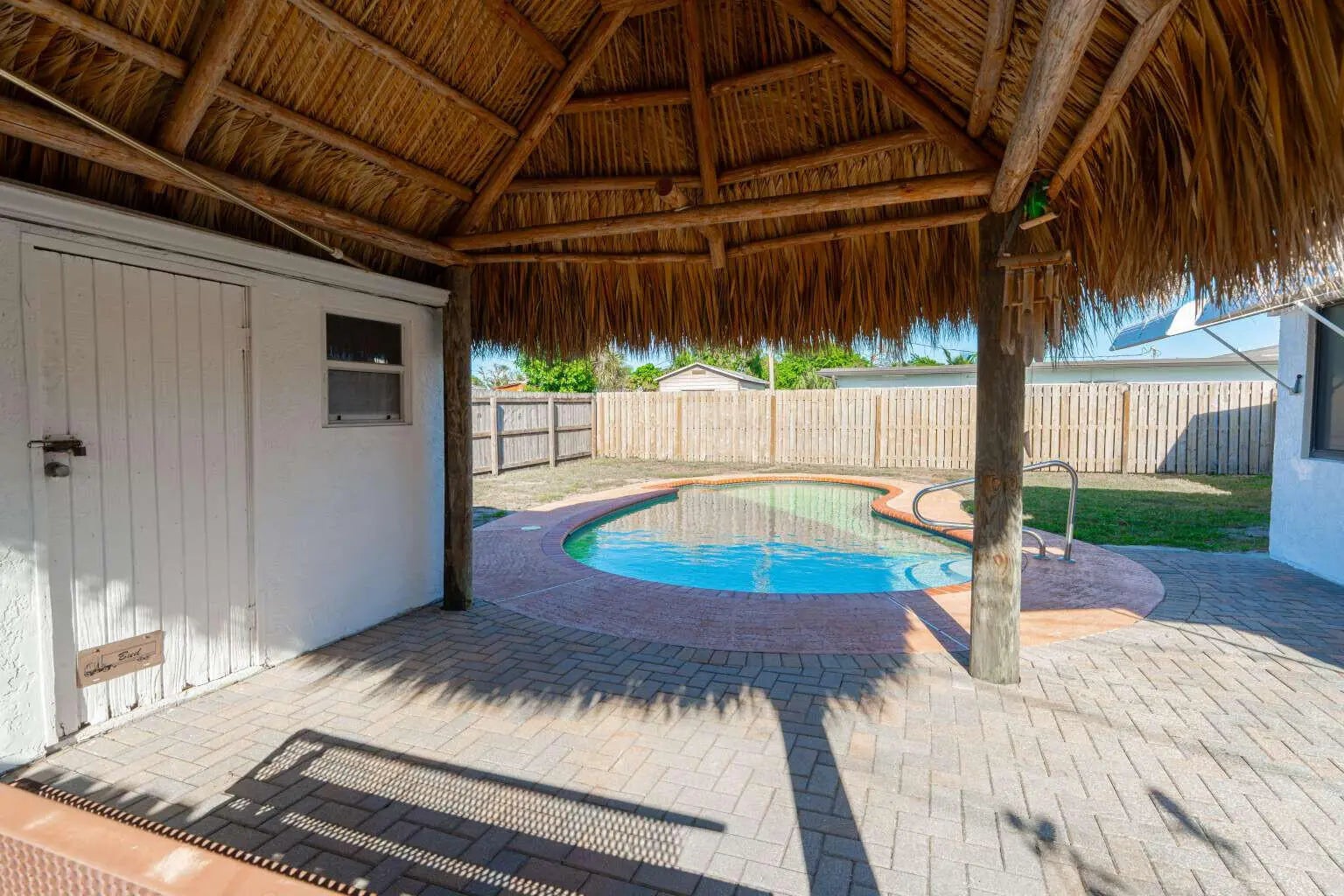 This well-maintained 3-bedroom, 2-bathroom home offers 1,121 sq ft of updated living space in the heart of Lake Worth Beach. No HOA. The major systems have all been replaced in 2026, including a brand new roof, A/C unit, and saltwater pool pump, providing buyers with long-term confidence and true move-in ready condition. Inside, new wood-look tile flooring runs through the main living areas and kitchen, complemented by fresh interior paint throughout and a kitchen skylight that floods the space with natural light. All windows and doors are equipped with storm protection. The backyard is set up for Florida living with a saltwater pool, tiki hut, and a large permanent storage structure. A spacious driveway accommodates 4 or more vehicles in addition to a covered carport. Conveniently located minutes from Lake Worth Beach, downtown dining, and local shopping.