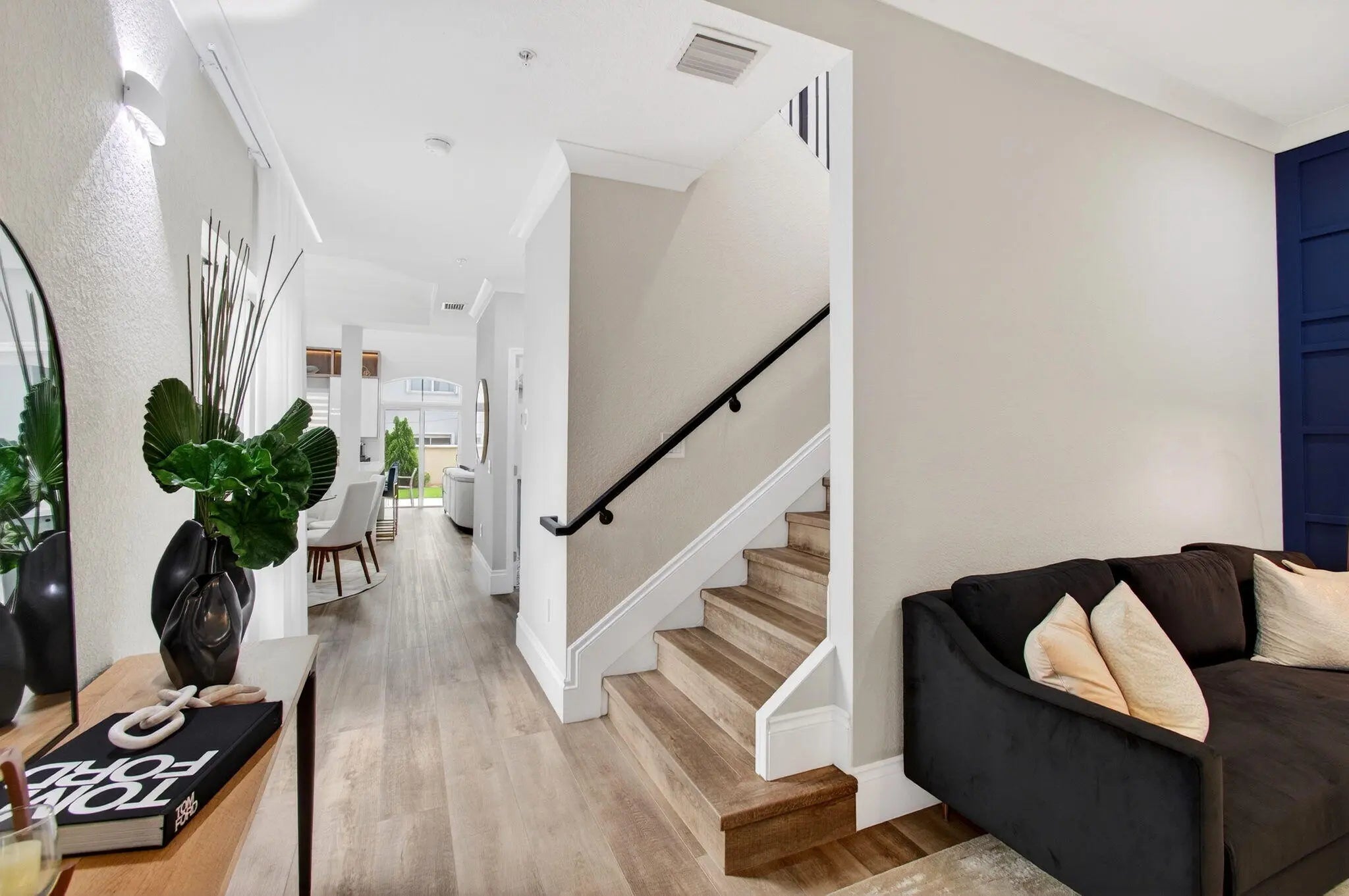 Don't miss this exceptional three-story townhome, masterfully remodeled with luxurious finishes and offered fully furnished for a truly turnkey experience. Just two blocks from award-winning Deerfield Beach, this residence embodies the ultimate coastal lifestyle — enjoy effortless day-to-night strolls along the shoreline, with vibrant dining, boutique shopping, and entertainment just moments away. Impeccably maintained, this home reflects true pride of ownership at every turn. Inside, you'll find impact glass throughout, stunning wood-look tile flooring, and designer lighting that creates a sophisticated, cohesive aesthetic. The thoughtfully curated kitchen opens seamlessly to the main living area, perfect for both refined entertaining and relaxed everyday living. The second level features two spacious ensuite bedrooms, while the entire third floor is dedicated to a private primary retreat — complete with a loft-style sitting area and an expansive balcony offering wide-open, tranquil views. Ample, well-designed storage enhances both form and function. Additional features include a cabana bath, a lushly landscaped private backyard oasis, an elevator shaft for future installation, and a spacious two-car garage. A rare opportunity to own a meticulously designed coastal residence where luxury, comfort, and location converge.