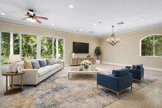 Your next home is a Magnificent Estate nestled in the prestigious gated community of Pine Tree Golf Club. This 5-bedroom, 4.1-bath Mediterranean masterpiece sits on almost 1/2 acre and is lushly landscaped to perfection! Enter to soaring ceilings, expansive floor-to-ceiling glass, and refined craftsmanship throughout. Quality construction and decor featuring Elegant stone and marble finishes, solid wood doors, and dramatic architectural details. Multiple living and entertaining spaces flow seamlessly to the outdoors, where covered patios and a resort-style pool setting invite true indoor-outdoor living. The thoughtfully designed layout includes a grand great room with vaulted ceilings & walls of glass, a regal formal living room, formal dining room, family room, and den. The kitchen is well-appointed with custom solid wood cabinetry, distinctive stone surfaces, artistic backsplash detailing, dual sinks, and stainless steel appliances, including a gas cooktop ideal for both daily living and entertaining. A built-in bar adds to the home's effortless hosting appeal. Upstairs, the primary bedroom suite has sweeping views and a spa inspired bath with Steam Shower and frameless glass enclosure. Recent updates include a 2025 roof, multi-zone air-conditioning systems, full LED lighting throughout, exterior paint and lighting, updated plumbing fixtures and disposals. The outdoor amenities have also been improved with a newer pool heat pump, pool filter housing, and automatic pool fill system. Additional features: Impact Windows and Doors, Whole House Generator, Security system, Irrigation system, fenced yard, and an attached 3-car garage. Very close to the Famous "Atlantic Ave" boasting world-class dining, shopping, and entertainment! This estate delivers privacy, quality, and understated luxury for the discerning buyer. Some photos virtually staged.