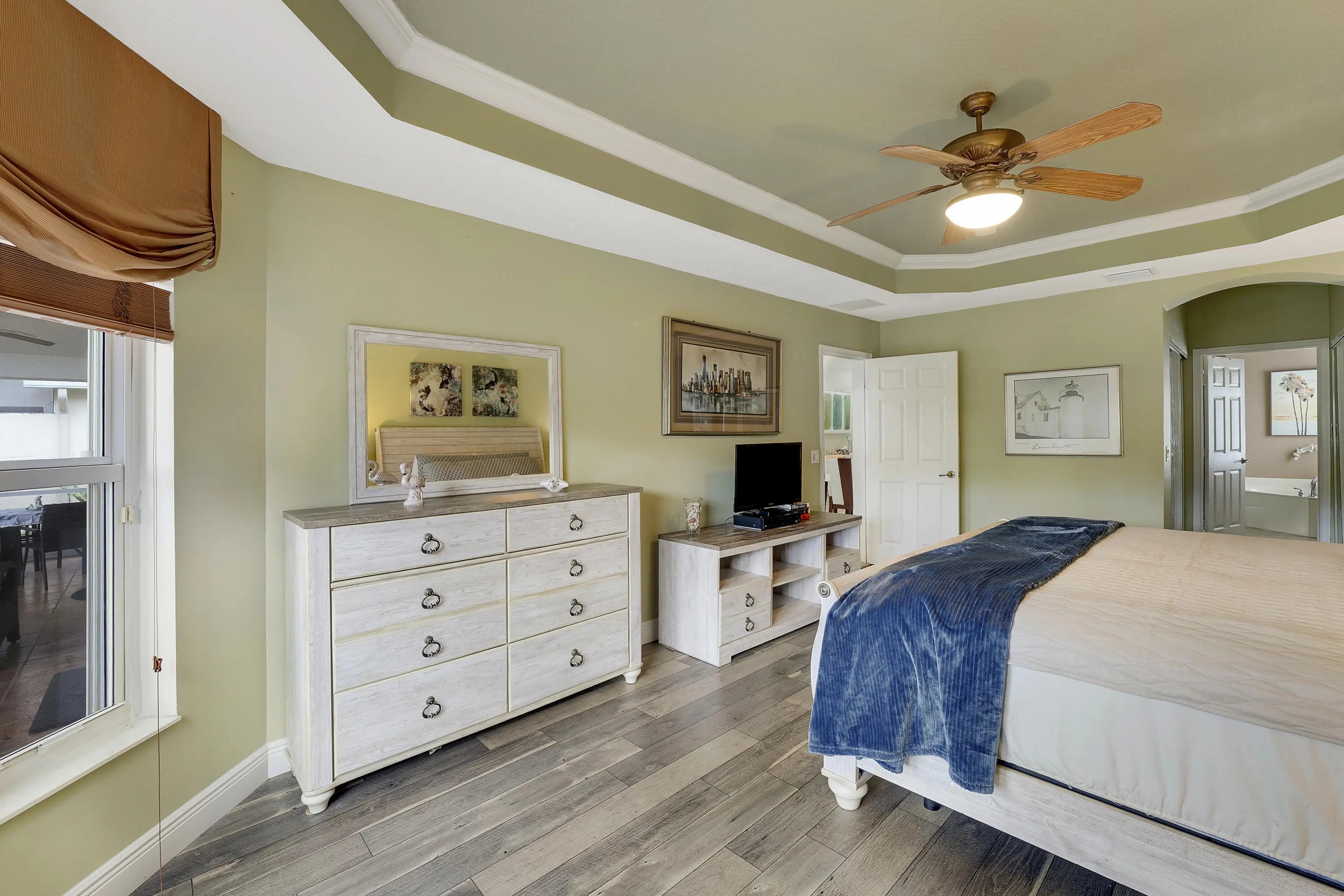 New Roof, Impact Windows! Nestled within the beautiful community of Bellaggio, this tranquil home offers a peaceful sanctuary surrounded by nature and quiet serenity. Thoughtfully maintained and updated, the property features a newer roof (approximately 1 year old), air conditioning system (2.5 years old), and hot water heater (about 1 year old), providing peace of mind for years to come. The home is equipped with impact windows and doors throughout (installed less than a year ago), with the exception of the front door. Inside, you'll find a well-appointed layout with tasteful upgrades. The guest bedroom features laminate flooring, while the guest bathroom has been updated with a newer vanity, added shower, and a newer, comfort height-toilet. A versatile office/den/guest bedroom includes wood-look vinyl flooring and custom built-ins that will remain with the home. The kitchen retains its original cabinetry, complemented by newer appliances (approximately 3 years old). The primary suite offers wood laminate flooring, and the en-suite bathroom includes a new comfort-height toilet. The spacious great room is enhanced by elegant textured wallpaper imported from Italy, adding a unique and refined touch. The extended Lanai gives you a beautiful view of the tranquil waterway. Additional features include a washer (approximately 4 years old). As you drive through the guarded gates you realize Bellaggio is an Active Community. From its well-manicured grounds and tropical plantings to its 10 Har-tru Tennis Courts, 5 lighted for night play, Bocce Ball, Indoor and Outdoor Pools, separate Fitness Center, Bistro Café, and Pickleball Courts. Both Pickleball and Tennis have Professionals on premises teaching Individuals and Groups. There is a Grand Ballroom featuring Top-notch Entertainment and Events with a full-time "Lifestyle" Director. There are also dozens of clubs, and Activities, Card Rooms and Billiard Room, Arts & Craft Center and much, much more... This home offers an exceptional opportunity to enjoy Bellaggio's lifestyle living at its finest!